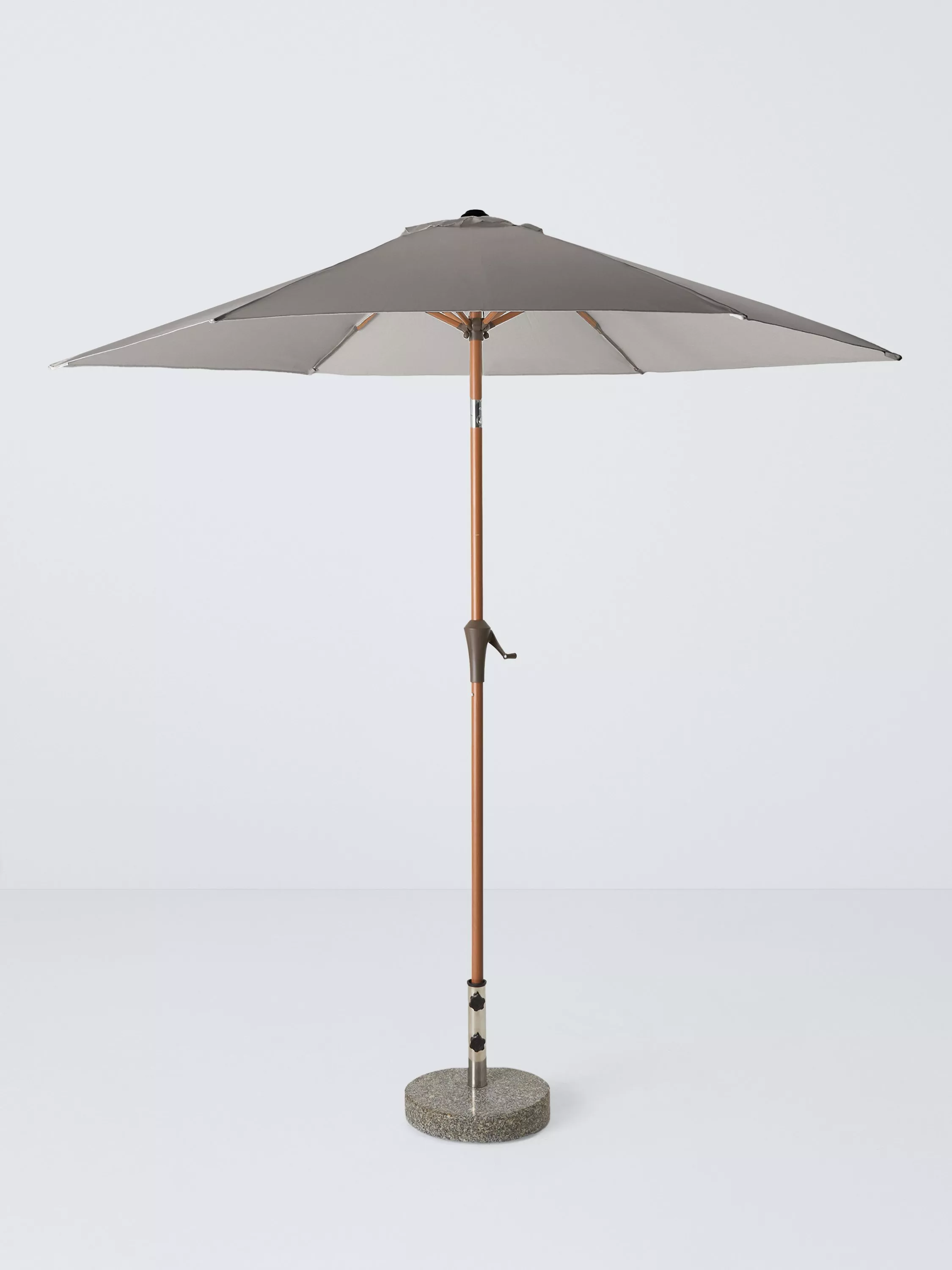 Operated by an easy wind-up mechanism, this garden parasol gives you protection from the sun. It's made with a shower-resistant canopy offering UV50+ sun protection. The lightweight, corrosion-resistant aluminium pole has a stylish wood-effect finish. Other sizes are available.