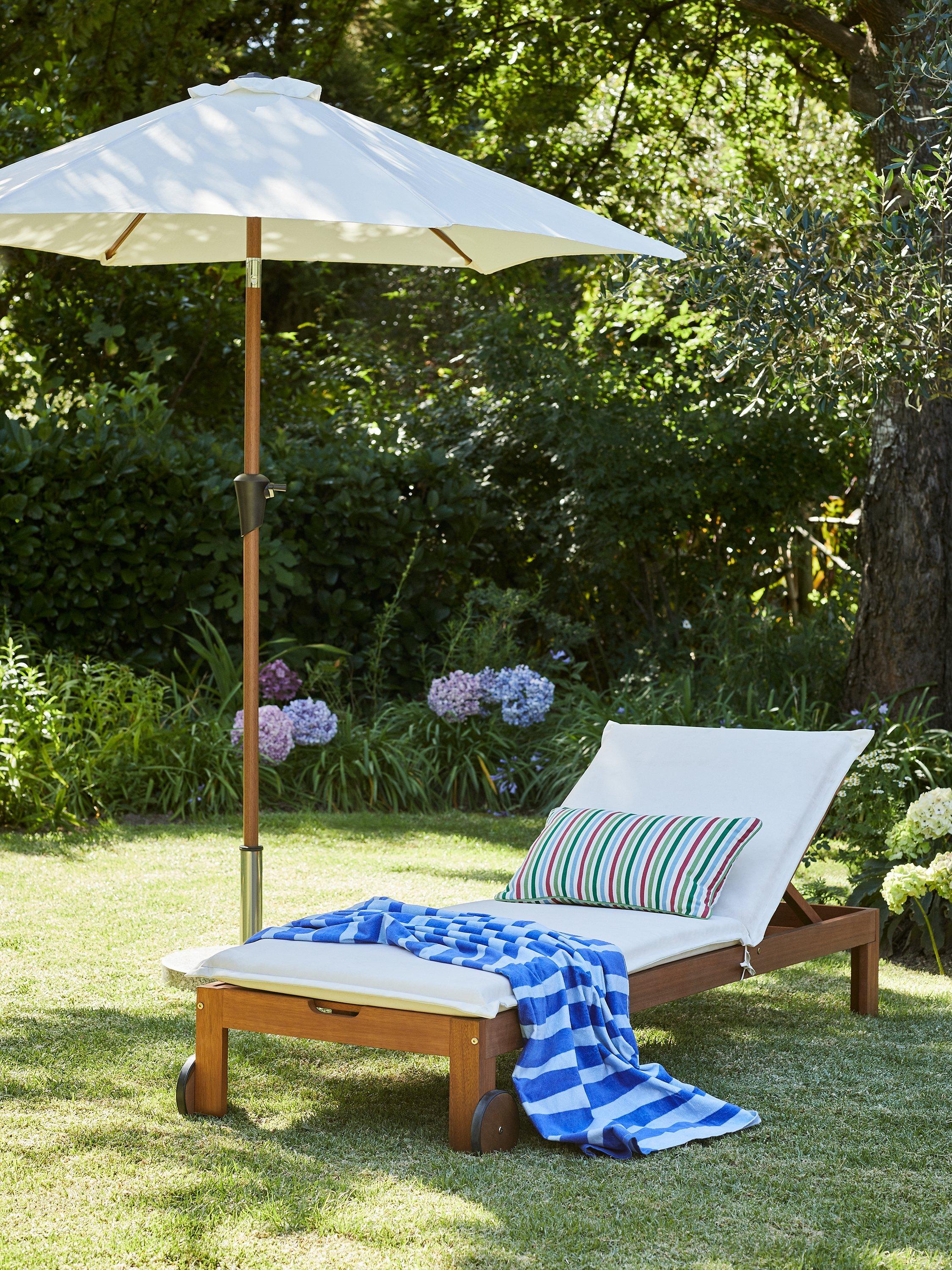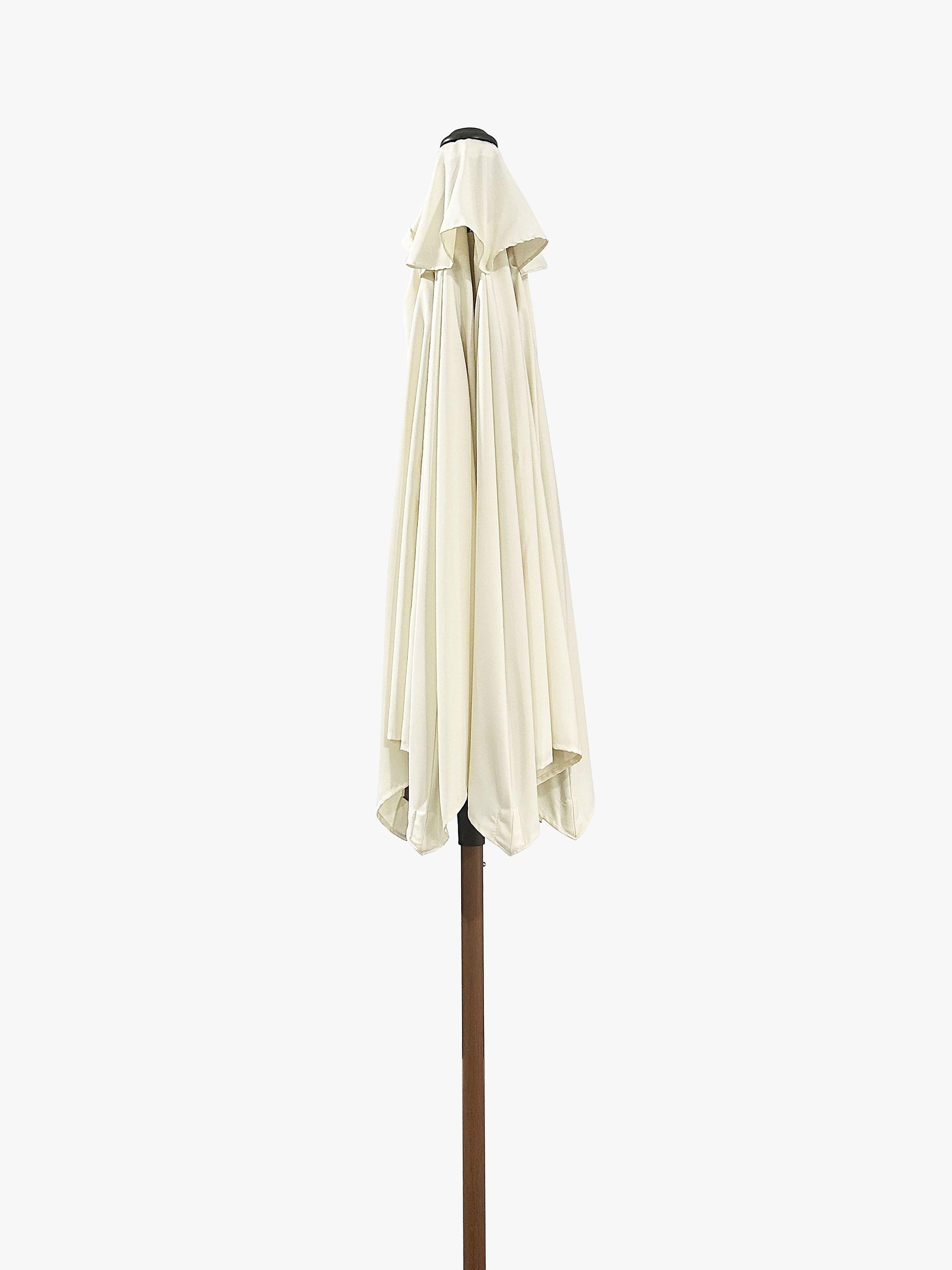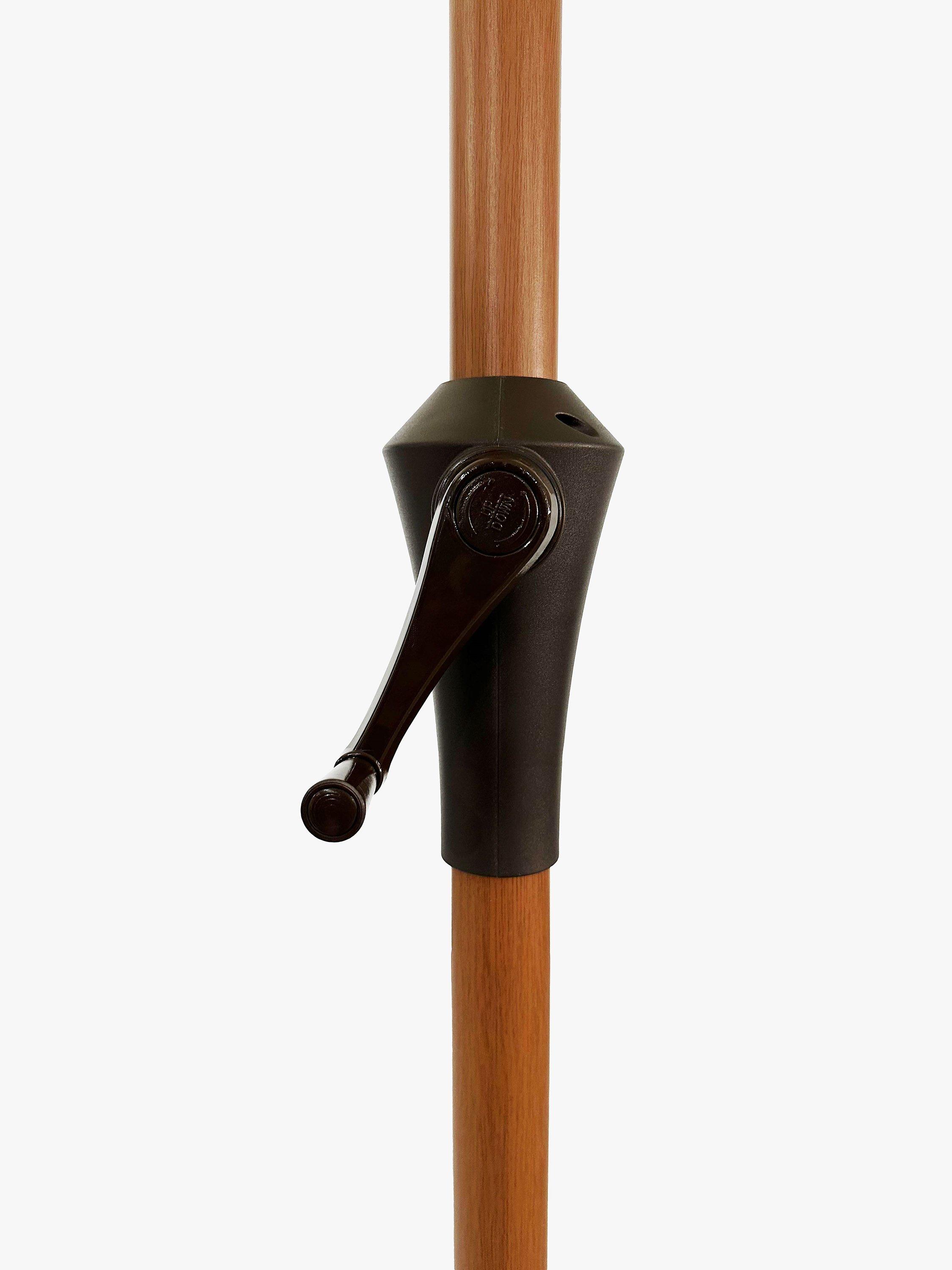 Operated by an easy wind-up mechanism, this garden parasol has tilt adjustment to give you targeted protection from the sun. It's made with a shower-resistant canopy offering UV50+ sun protection and a corrosion-resistant aluminium pole with a stylish wood-effect finish. Shock-resistant ribs complete this sturdy design.