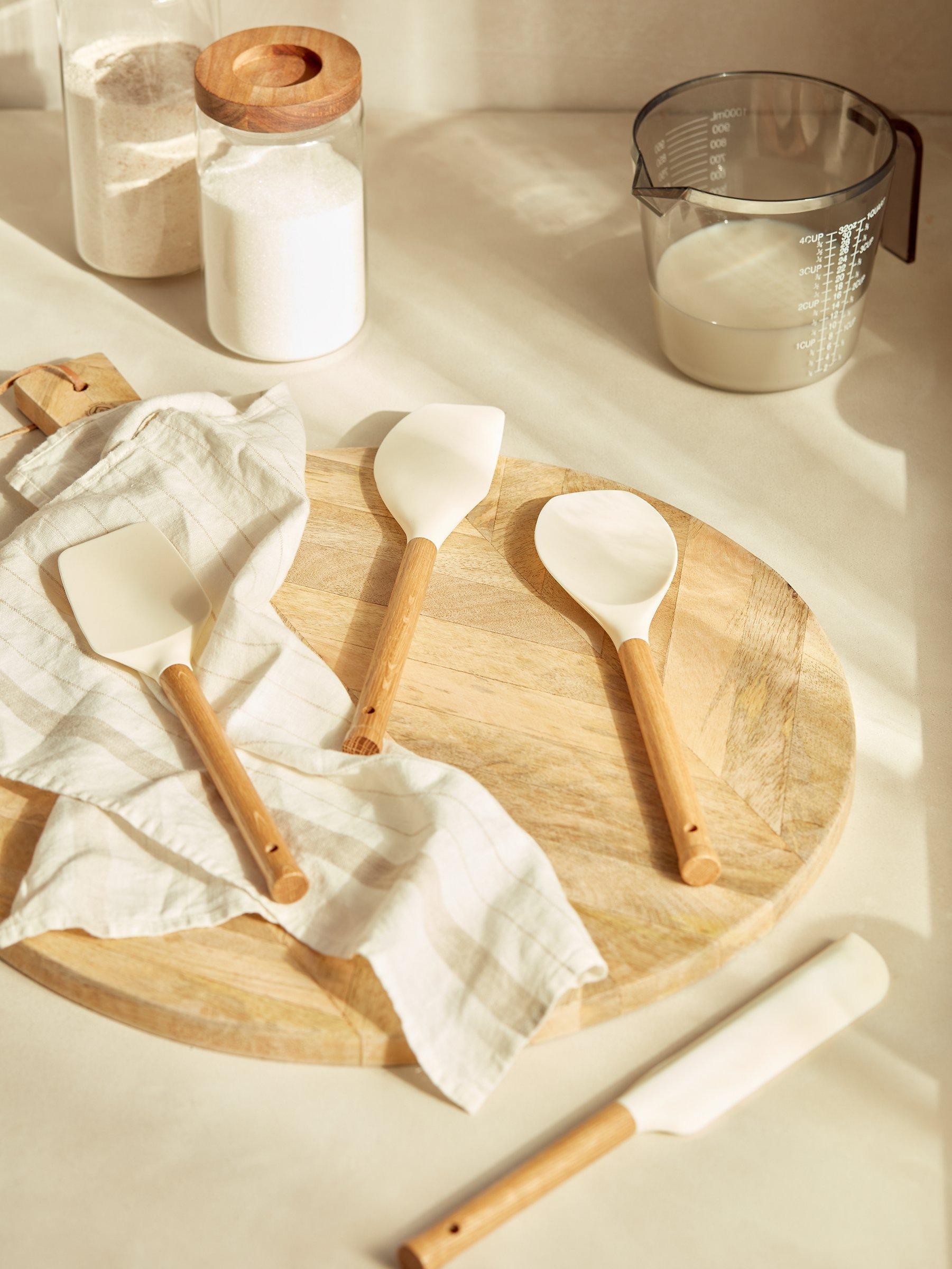 The best of both worlds with a traditional wooden handle and modern silicone head, this kitchen utensil is ideal for cooking and baking. The heat-resistant non-scratch silicone head can be used with any cookware, including non-stick surfaces. This scraper is great for getting every morsel out of your mixing bowl.