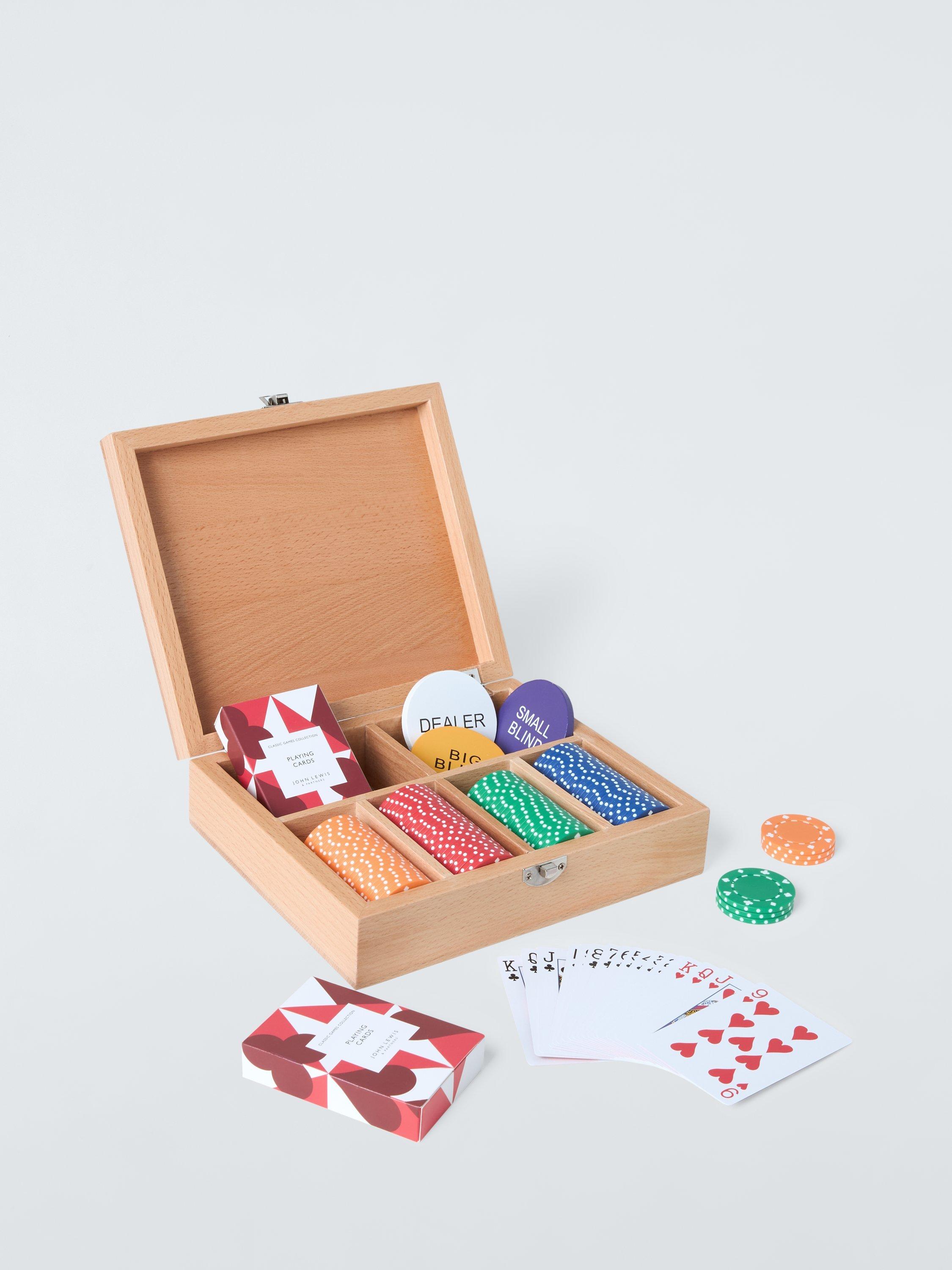 Everything you need for poker night, presented in a beech wood box.