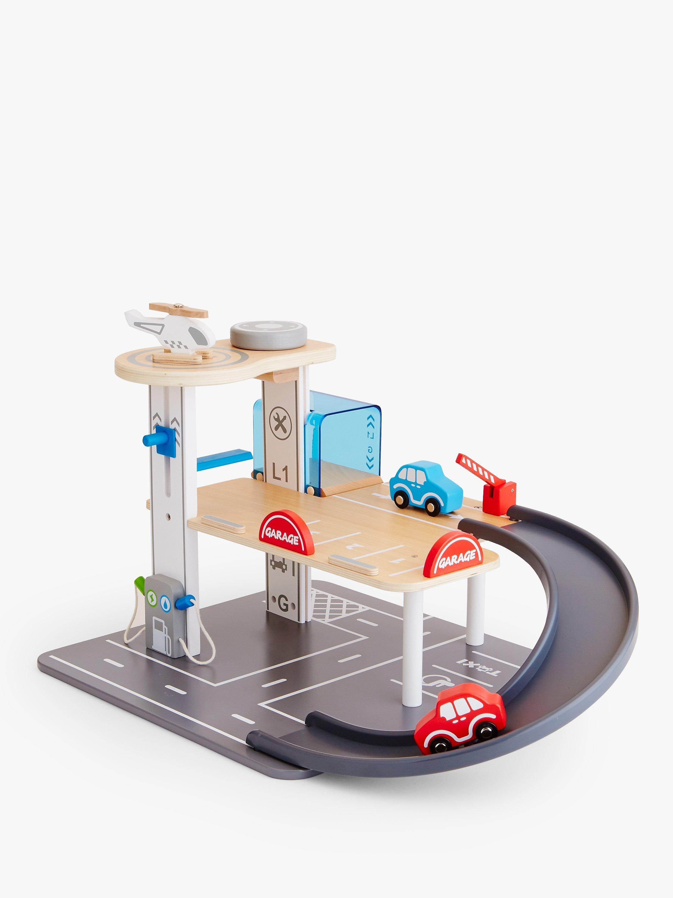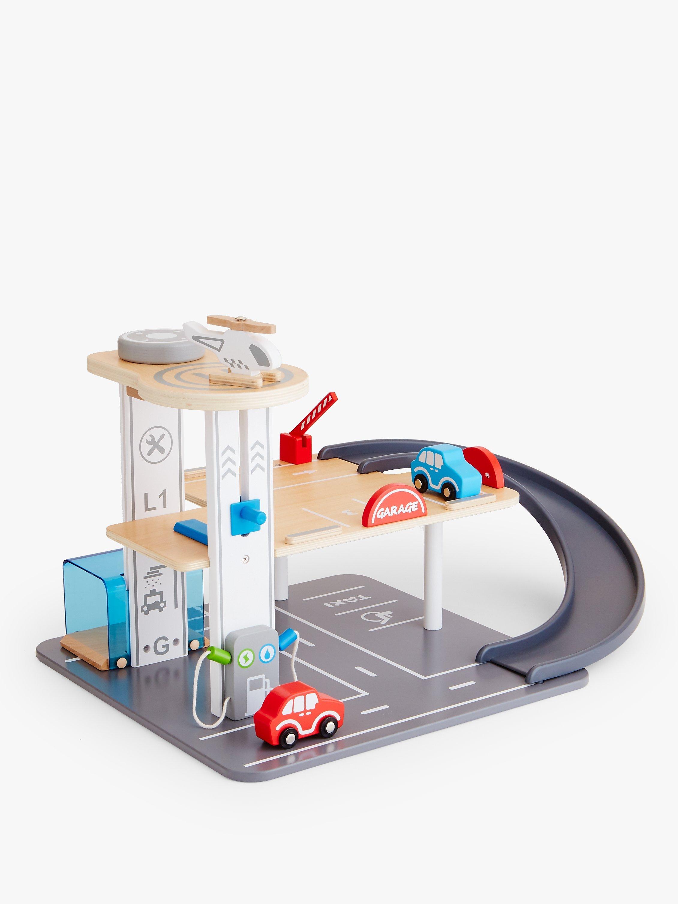Start off by filling up your car at the petrol pump, then choose whether you want to use the ramp and gate or pulley lift to go up. Park anywhere you like, before you continue speeding around this realistic set. It's covered in authentic-looking road markings and signs to strengthen the roleplay for your little one too.