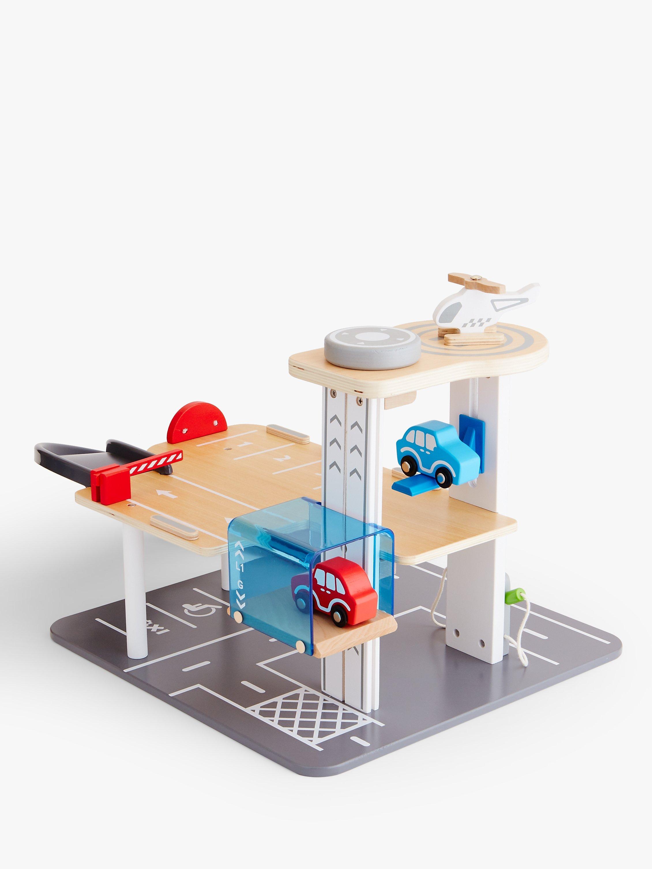 Vroom-vroom your toy cars around this 3 tiered garage like a real grown-up! This solid wood playset can give hour-after-hour of fun for your motor-mad child; they'll tyre of adventures here!