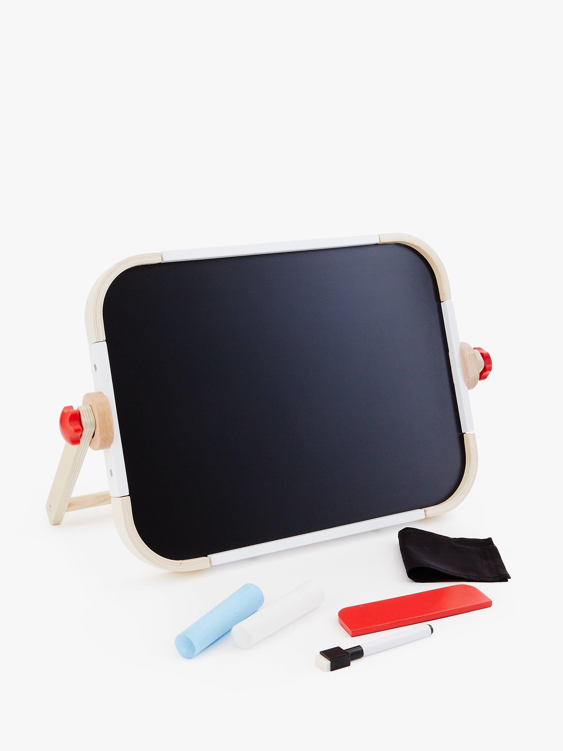 This wooden art board has a chalkboard on one side and a magnetic panel on the other so they can get as creative as they like! Includes 2 pieces of chunky chalk, a whiteboard pen, magnet and chalkboard eraser.