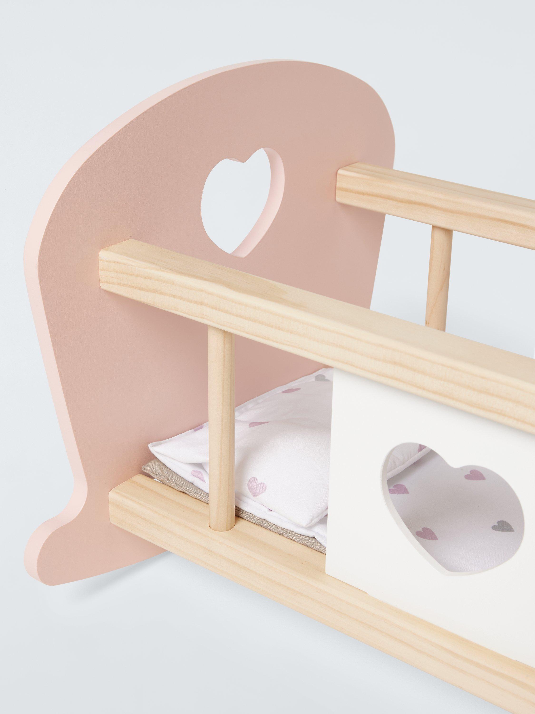 This beautiful wooden rocking cradle is suitable for dolls up to L46cm.
