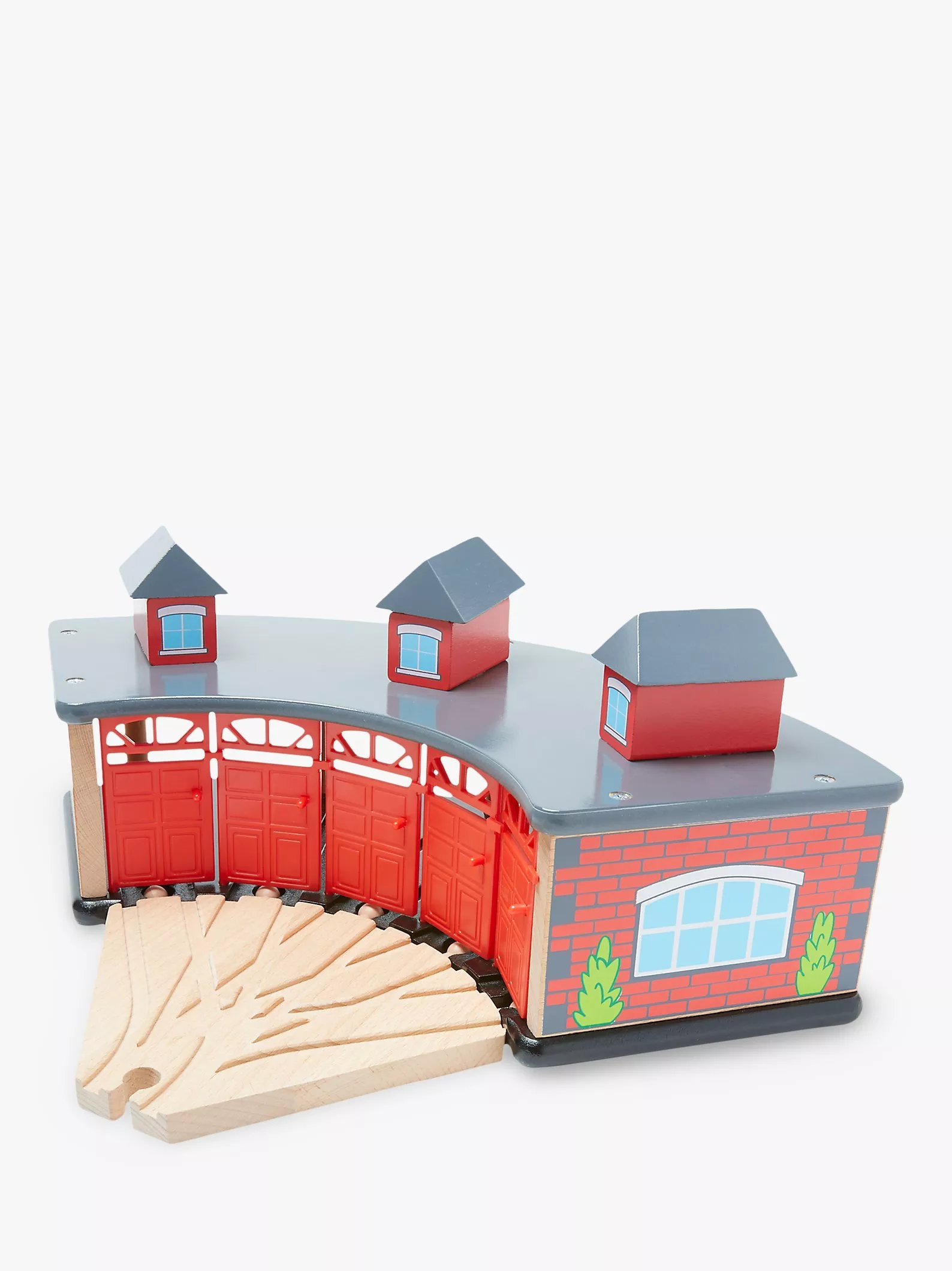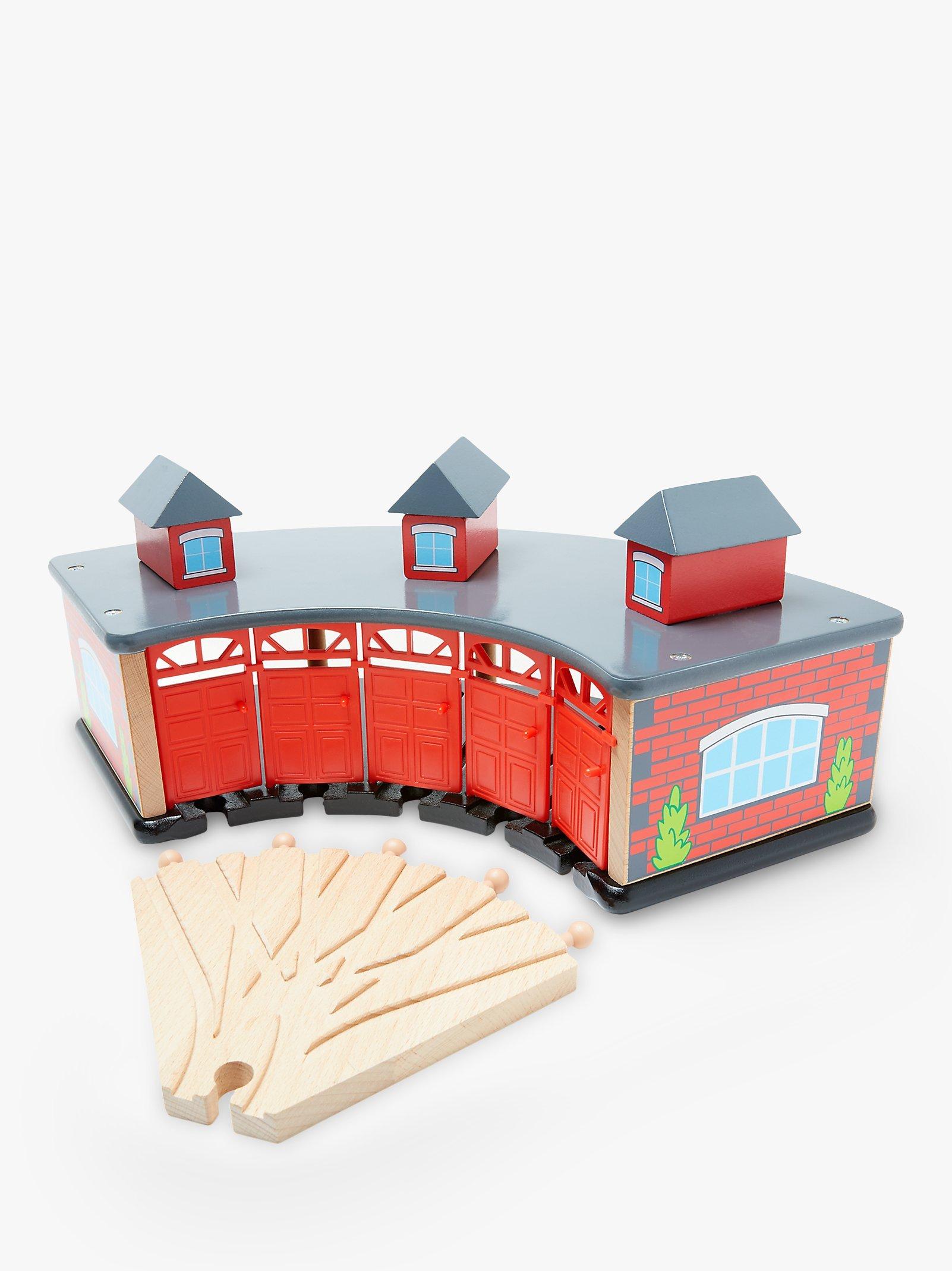 It’s the end of the line and time for bed! When playtime is over, this engine shed has enough room for five trains to set down for the night. Bright colours and a top-quality wooden design make this a charming and durable well-loved toy for your little conductor.