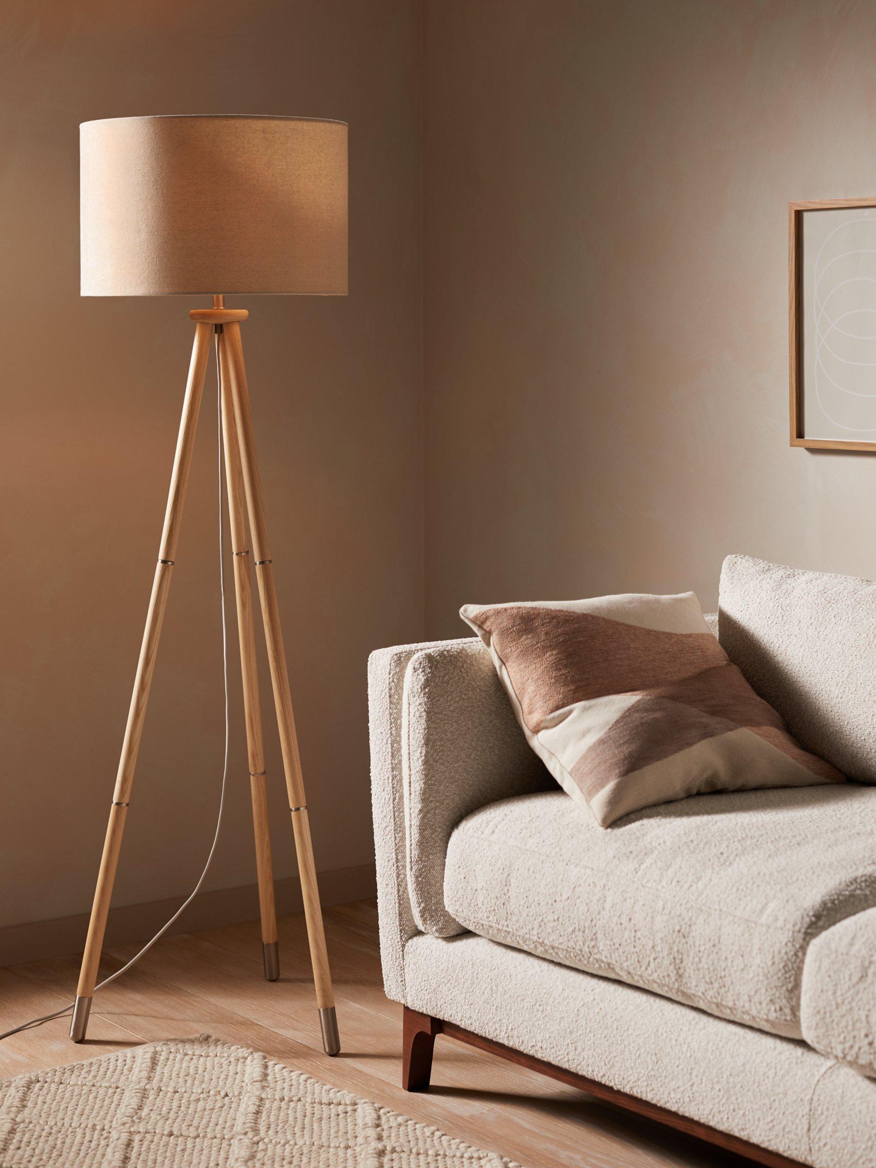 With its sleek, tripod base and linen-blend lampshade, this floor lamp is a versatile and timeless option for your home. It offers a warm glow of light and the frame is made from high-quality and responsibly sourced ash wood.