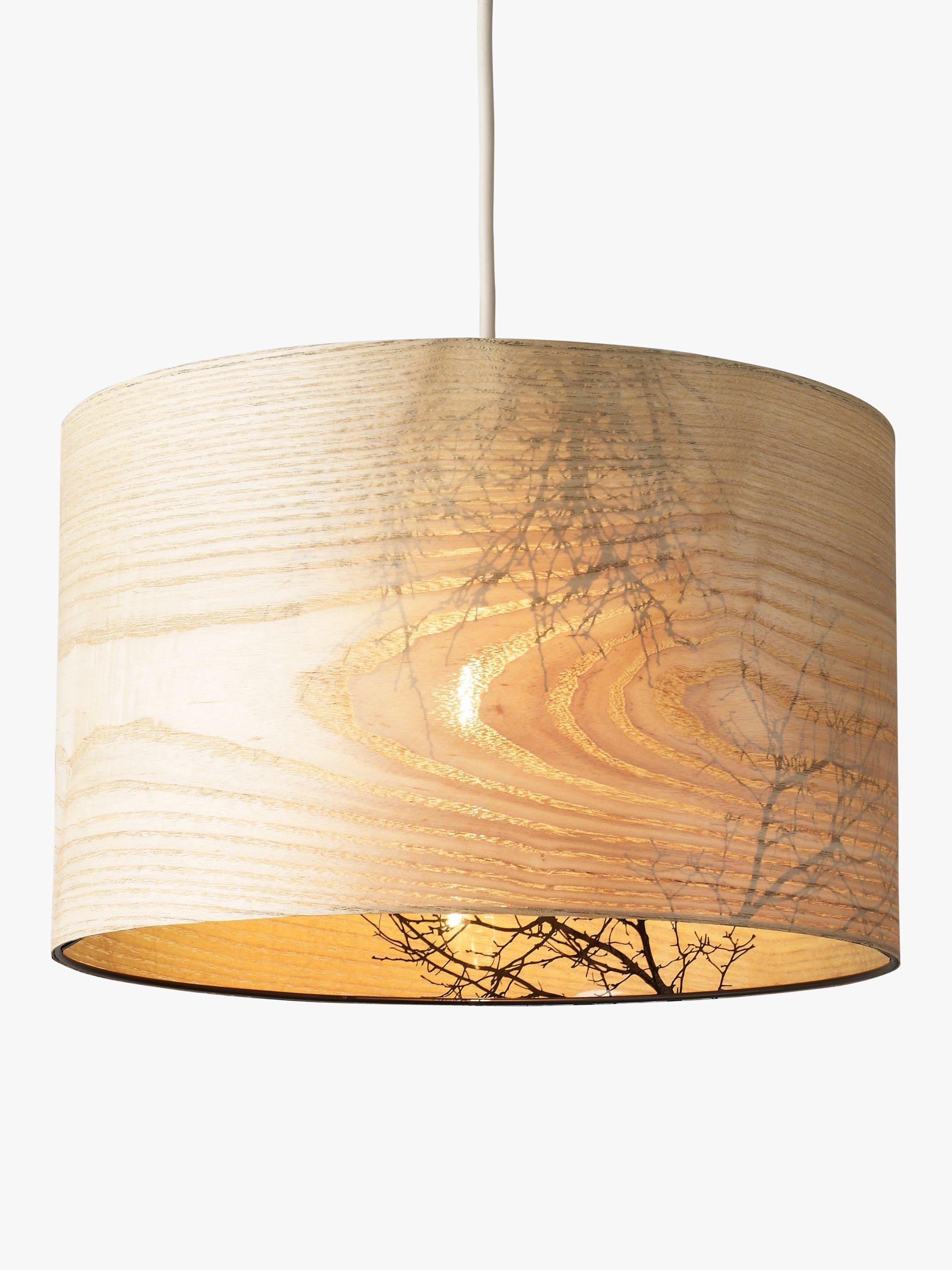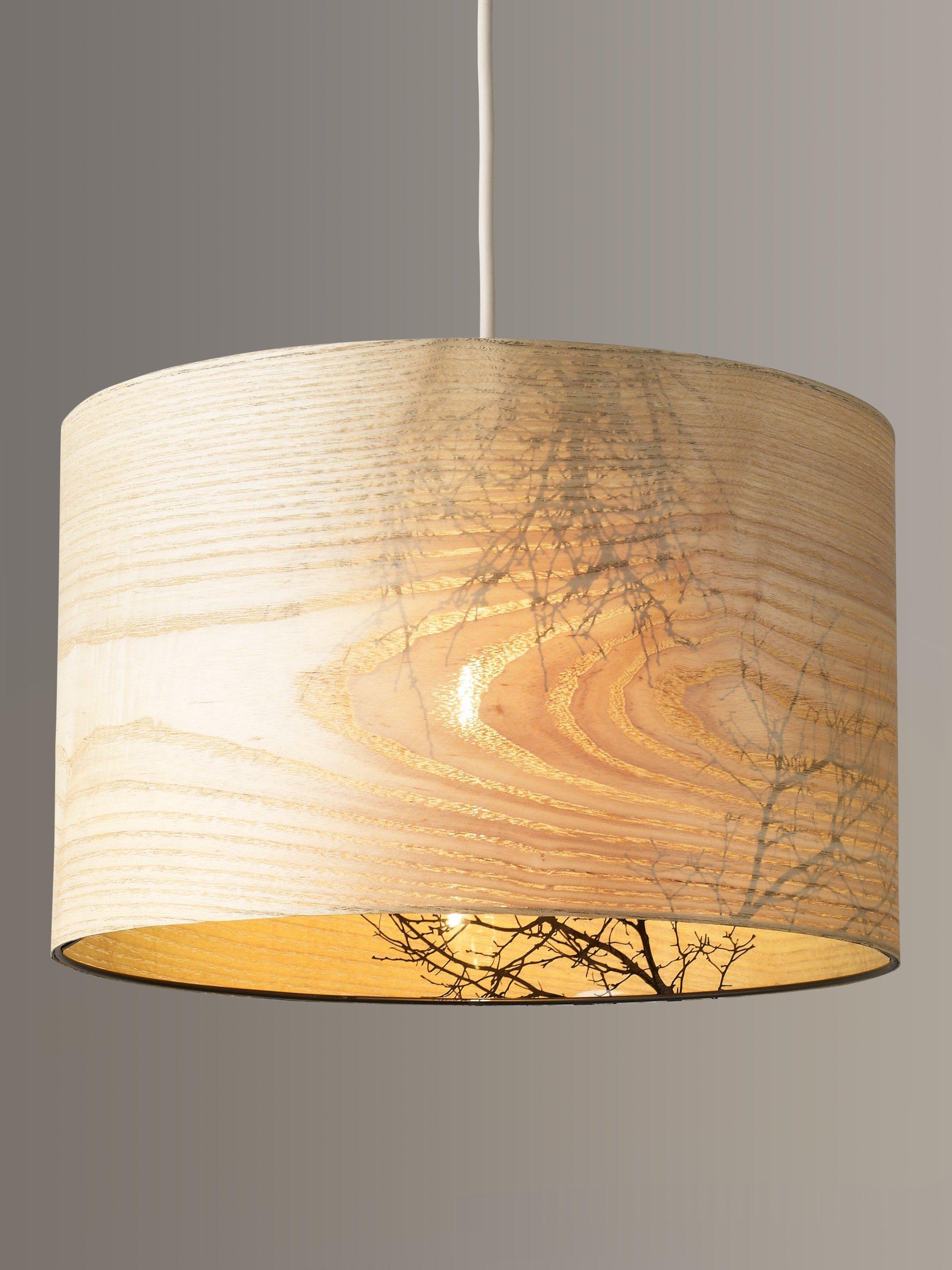 These cylinder shades have a wood veneer effect outer that's attractive by day, and bare tree silhouettes on the inside, making them even more beautiful by night.