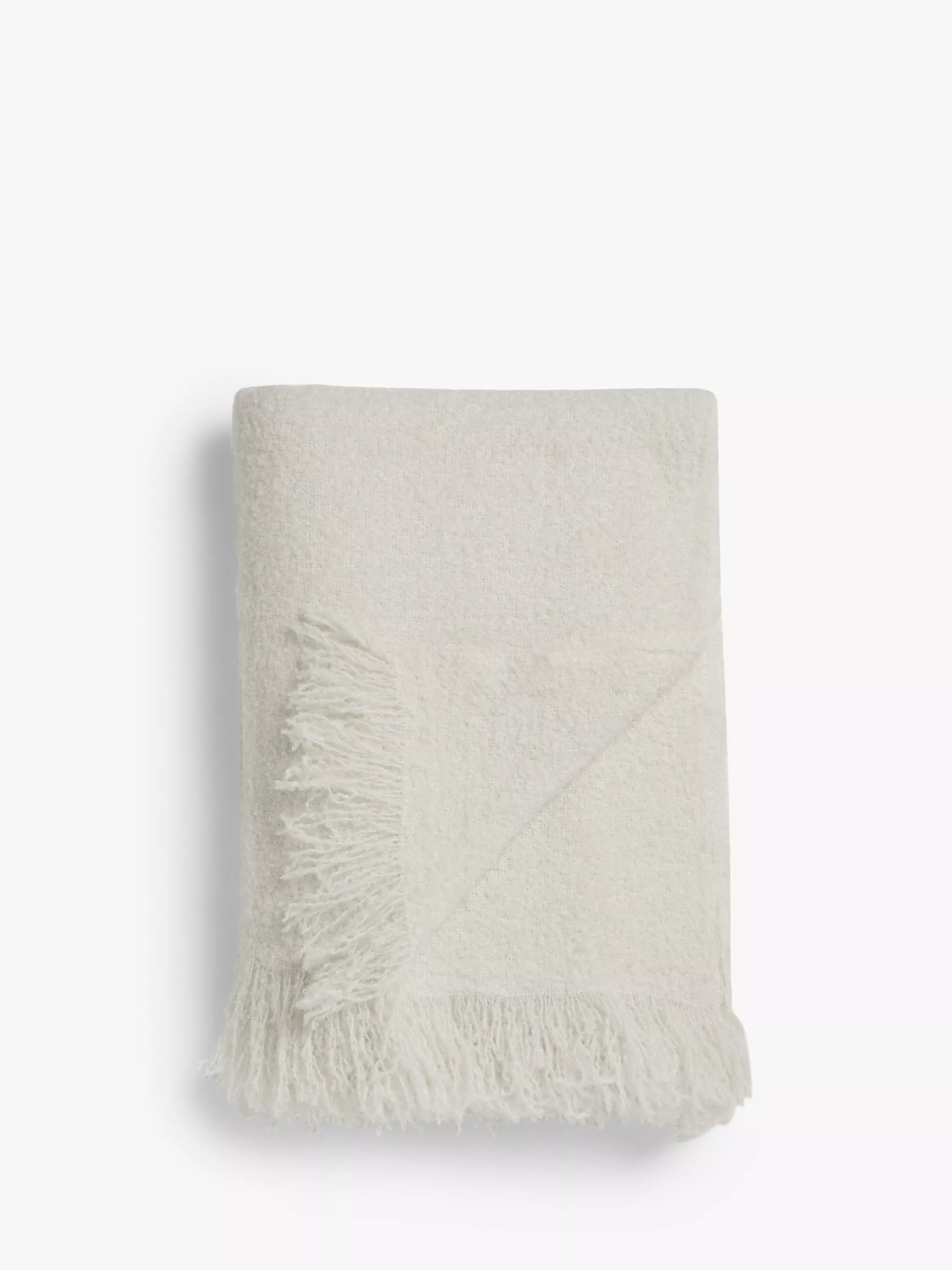 A soft and snuggly throw with soft fringing. Woven to give a boucle textured effect.