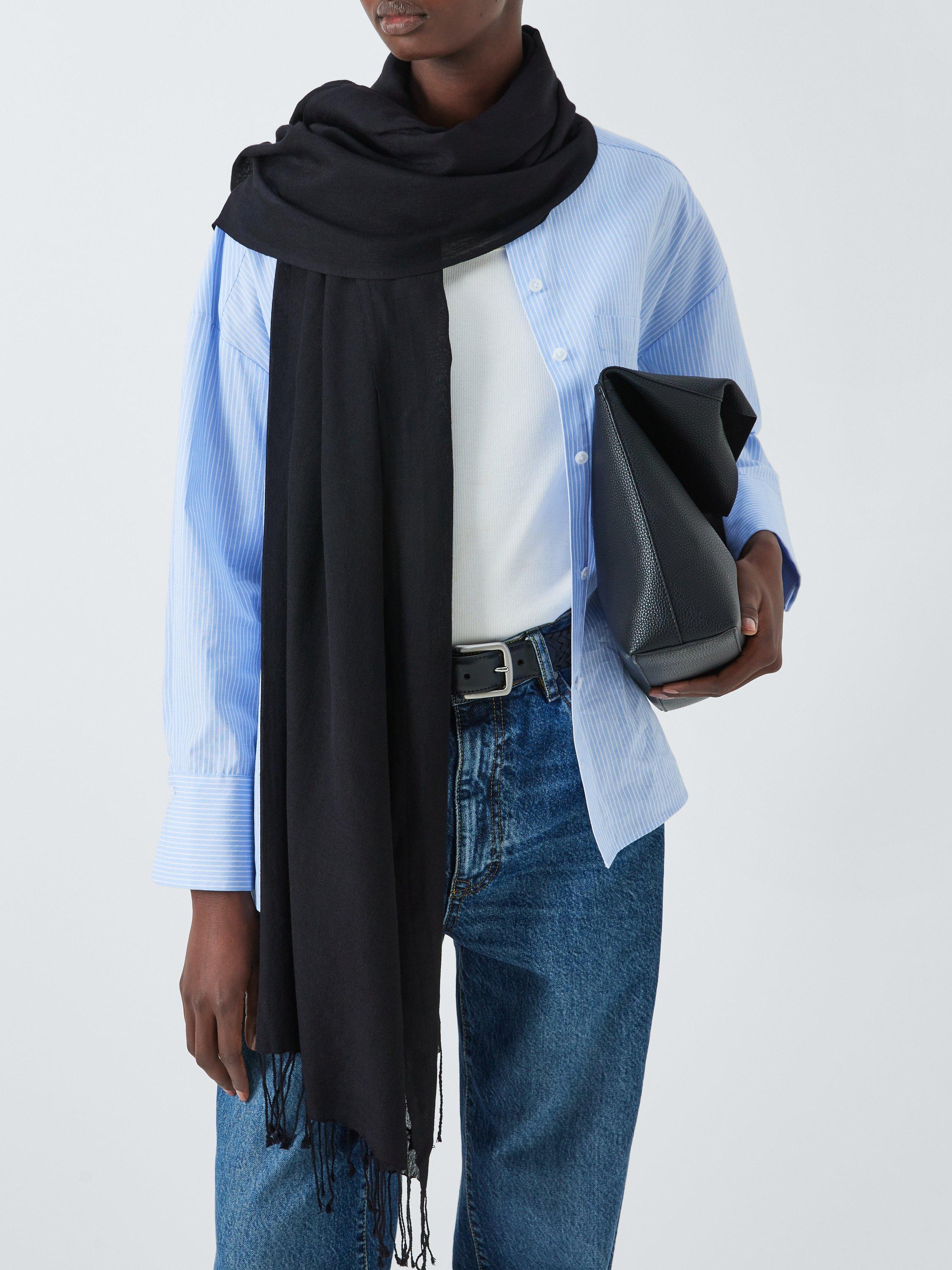 This lovely scarf from John Lewis & Partners is perfect for all occasions. Made from a soft and warm mix of wool and viscose the scarf has a plain finish with on-trend fringing.