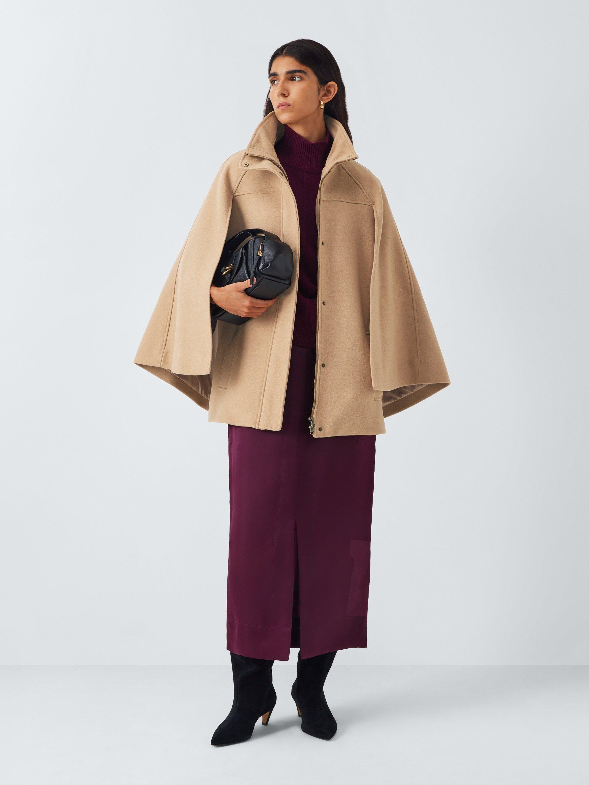 Cape jacket made of a soft wool blend with a cosy high neck. Featuring a zipped front with a concealed stud-fastening storm placket. Lined inside for comfortable wear.