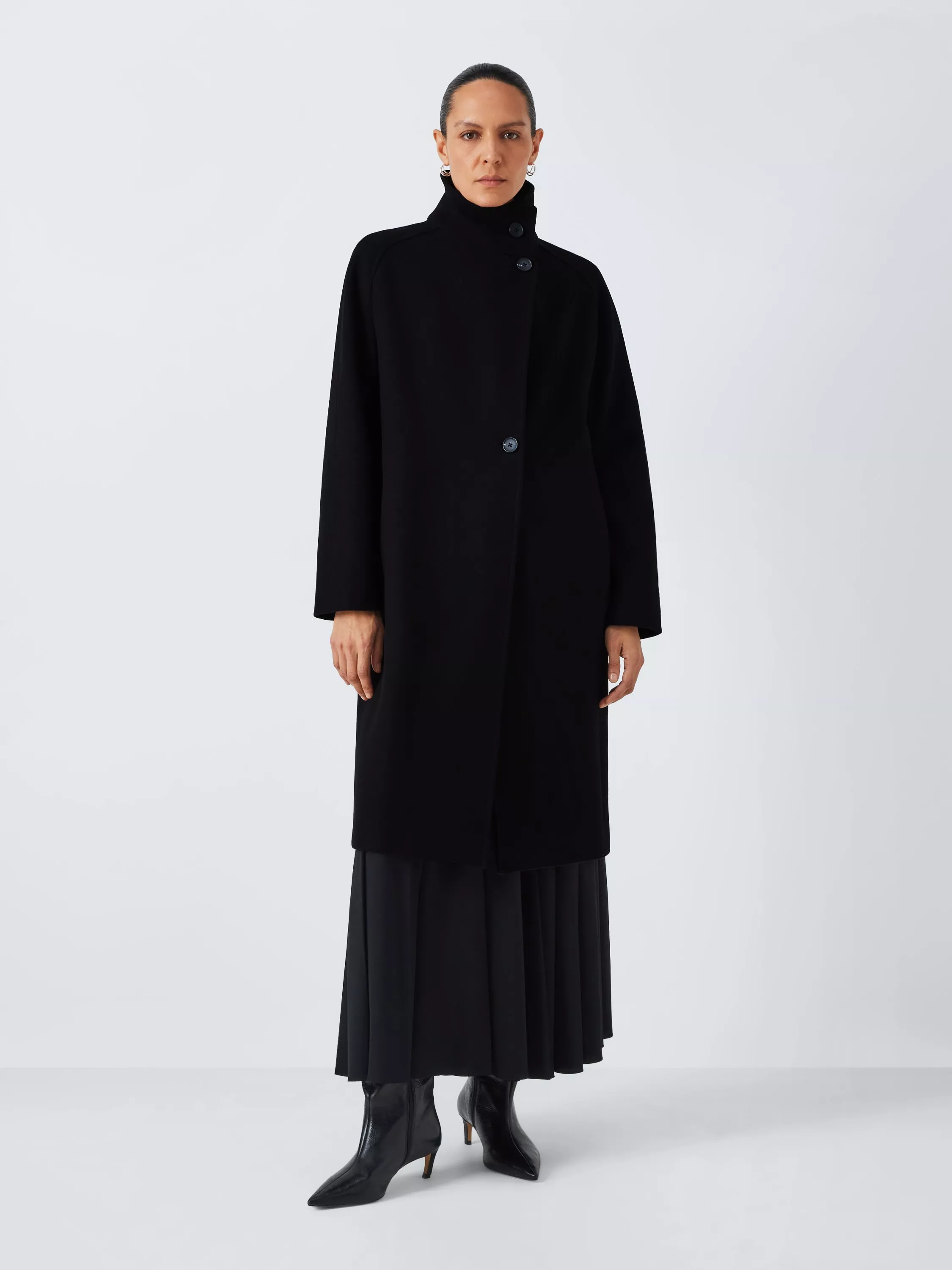 Woven in a warm wool blend, this coat is styled with a stand-up collar with a single-button fastening and a two-button placket for a minimalist look. Great for smarter occasions.