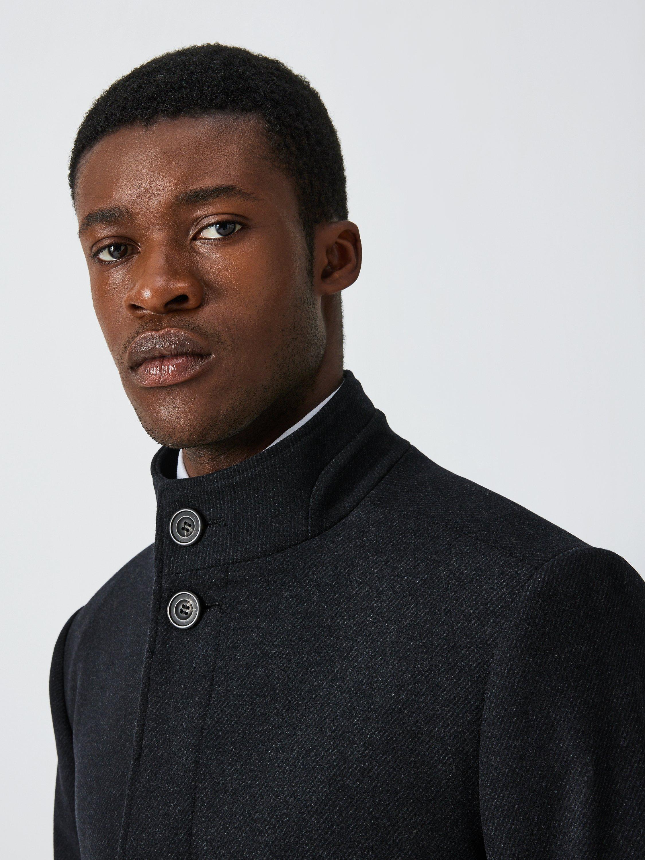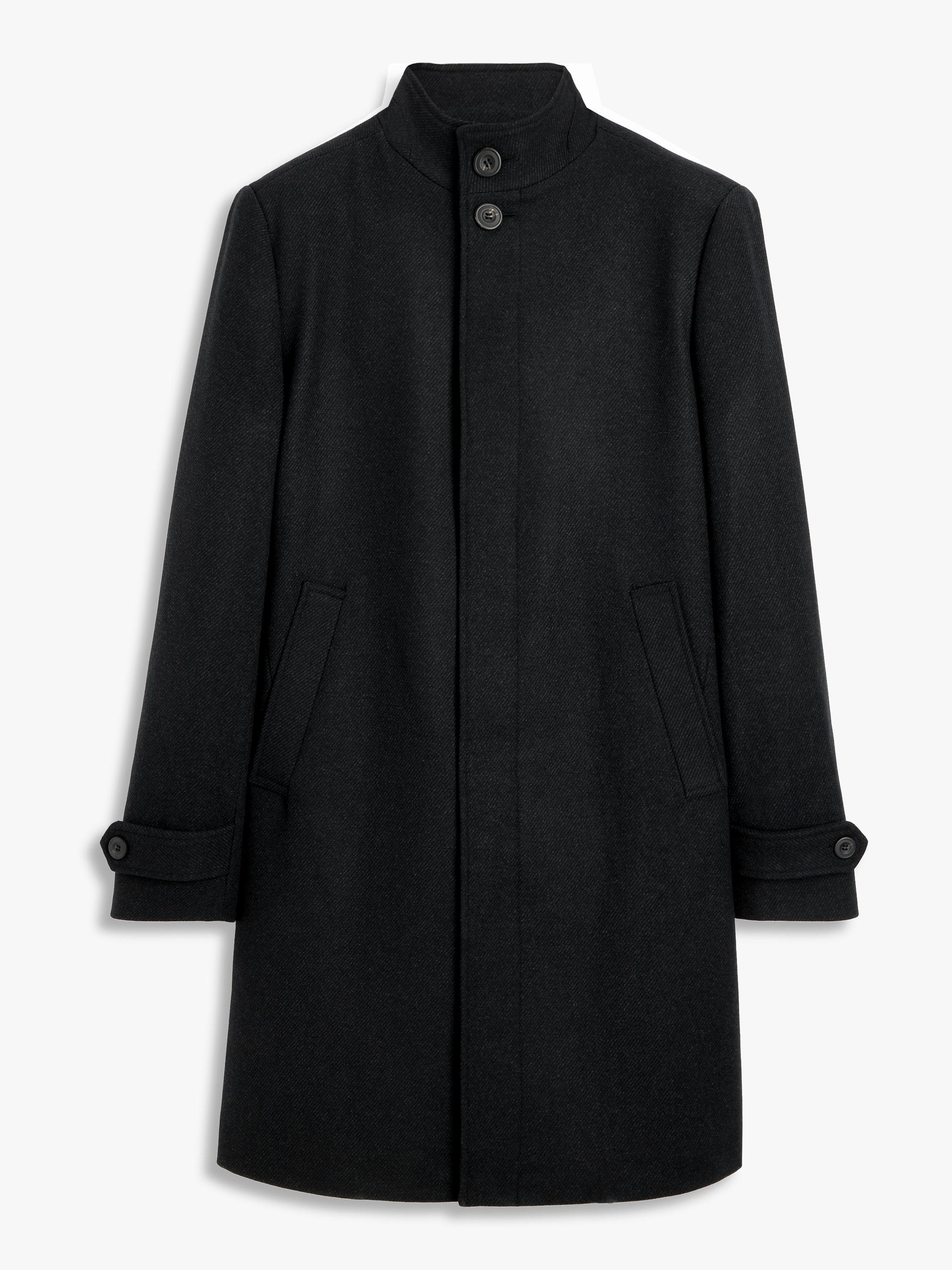 Woven in a wool blend in an attractive subtle herringbone design, our coat is styled with a funnel neck, concealed placket and buttoned cuff tabs.
