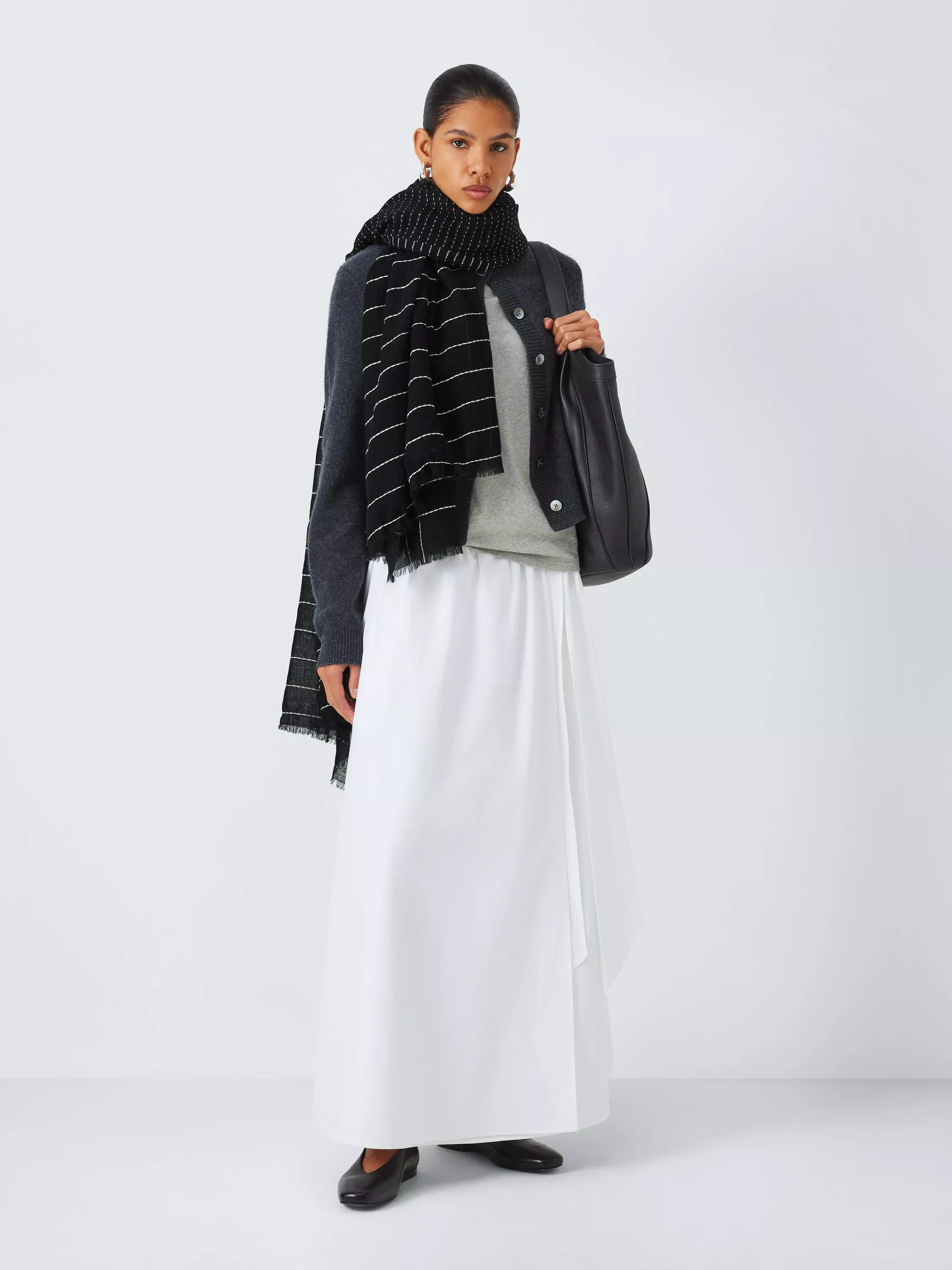 This wool scarf comes in a versatile shade to coordinate perfectly with the rest of your wardrobe.