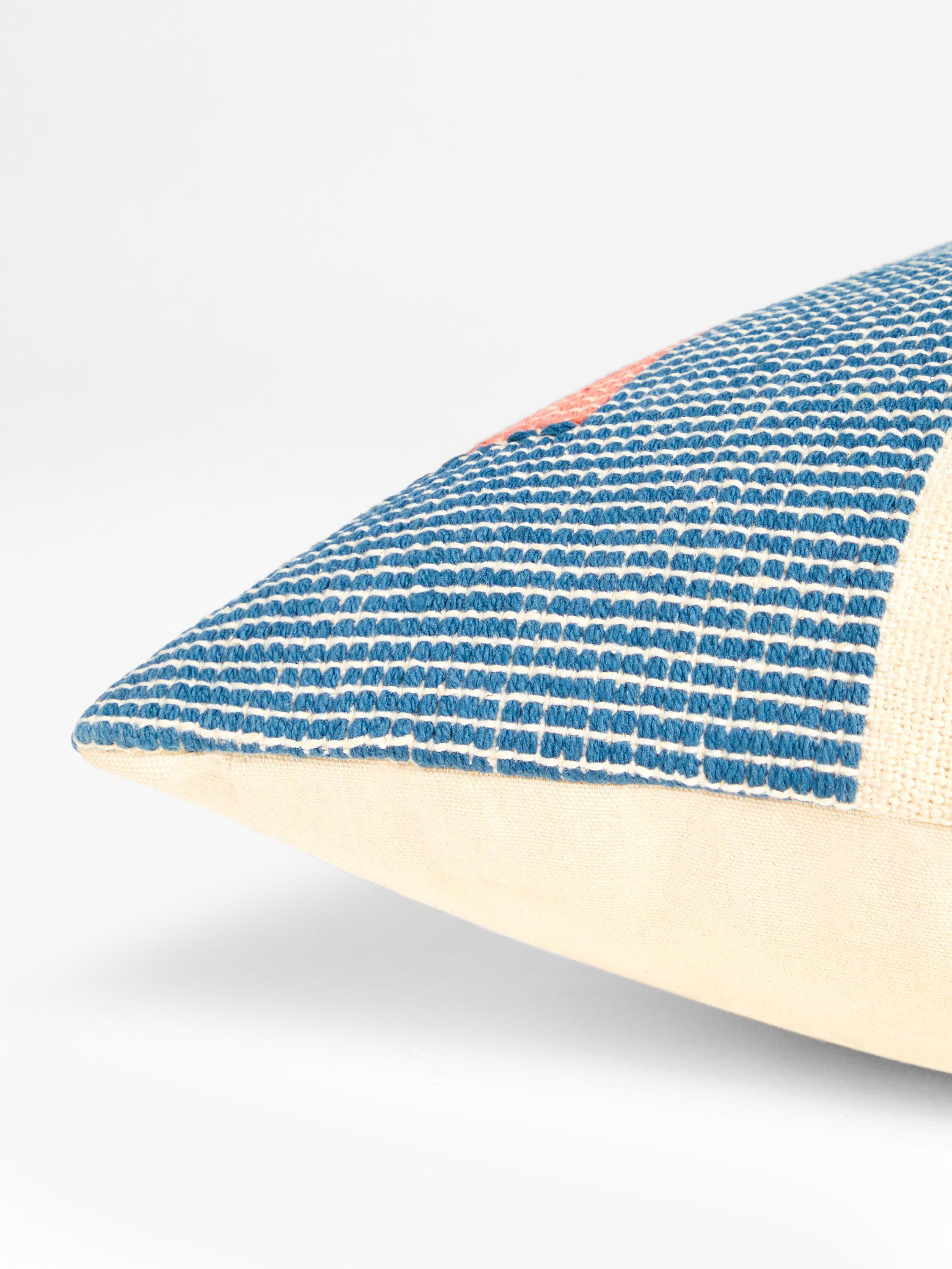 Made from hand-loomed cotton, this cushion has a woven, colour block design for a relaxed look.