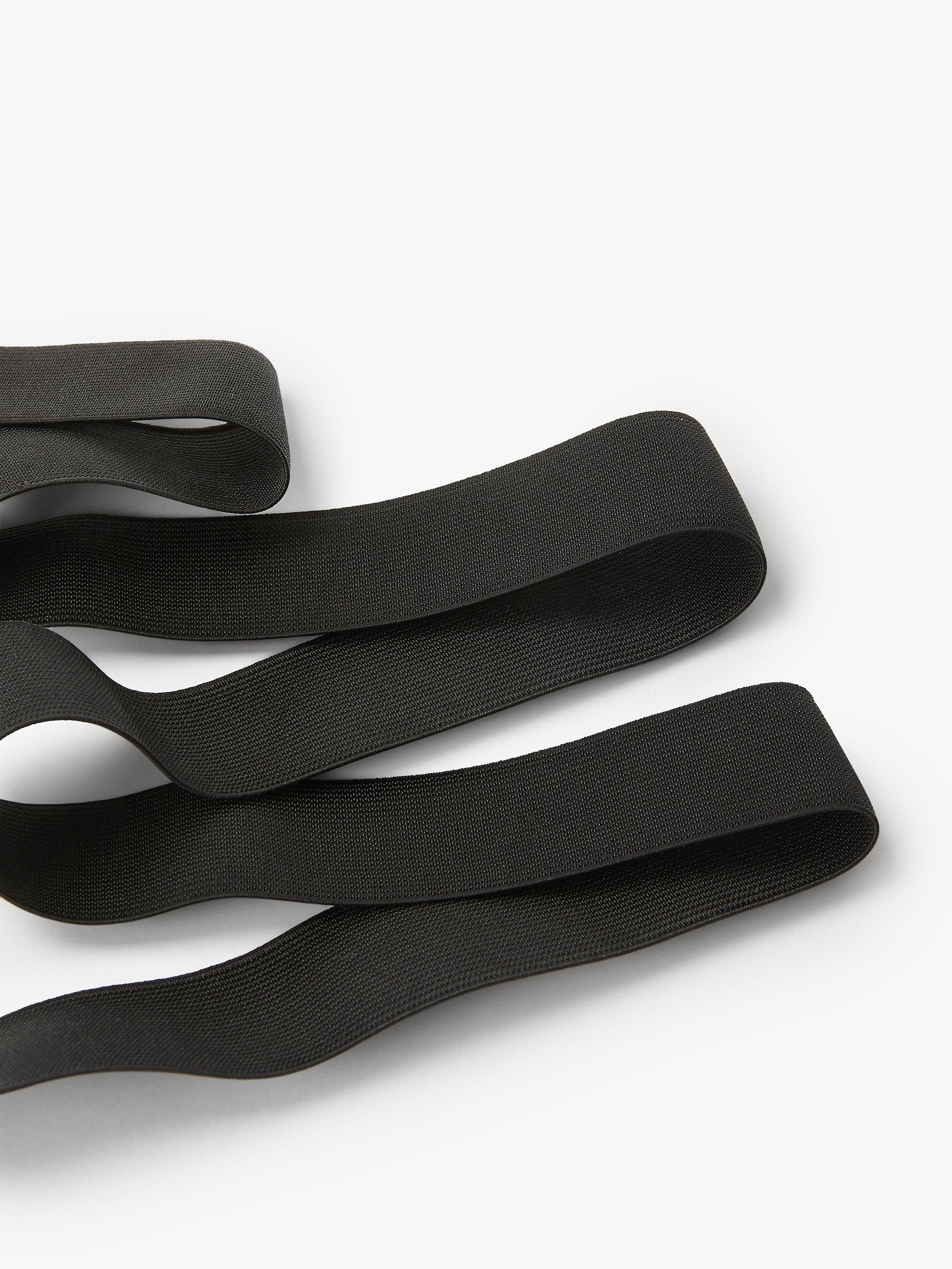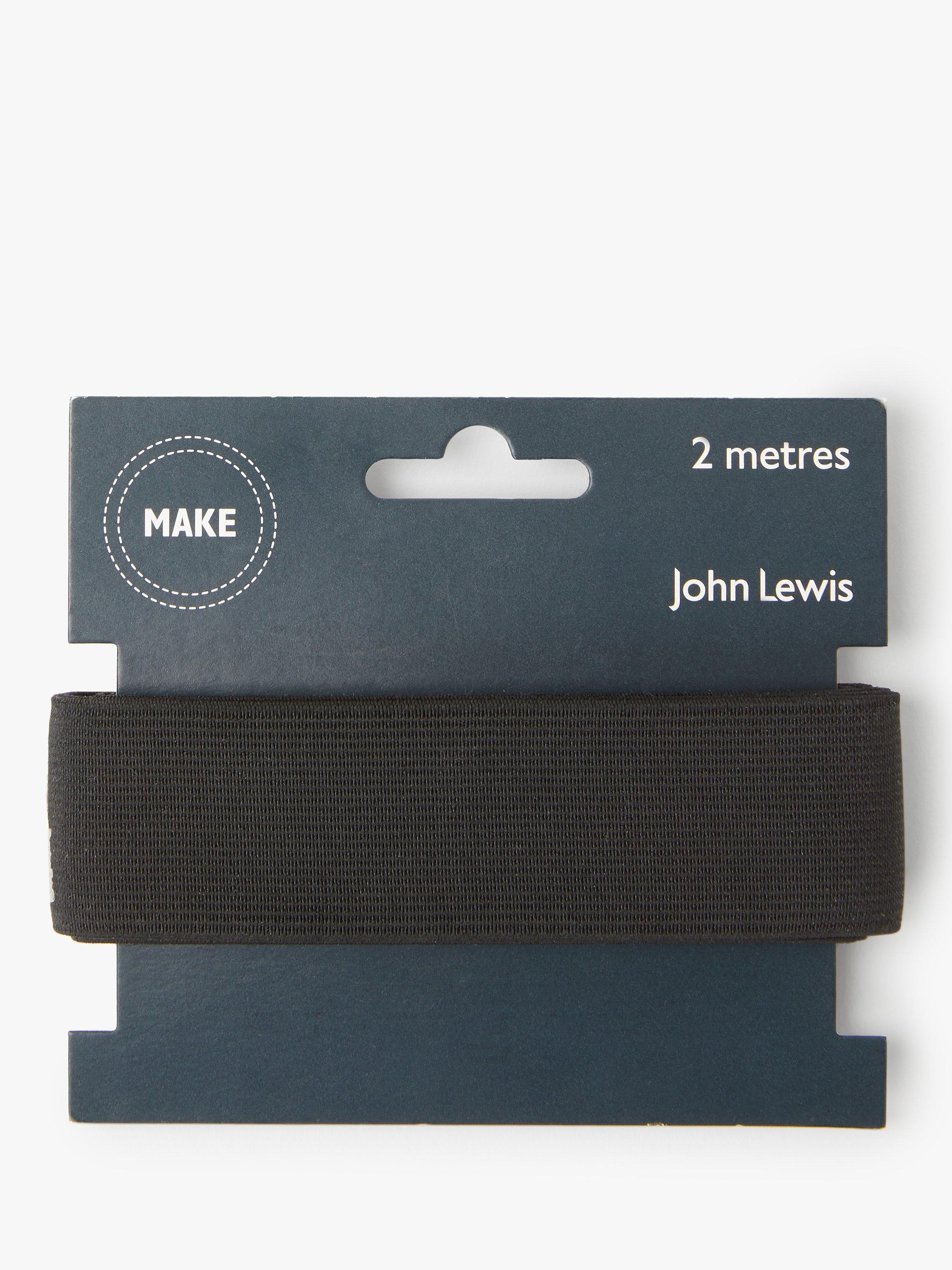 Woven 32mm elastic from John Lewis made of a polyester blend for soft, durable wear, measuring at 2m long.