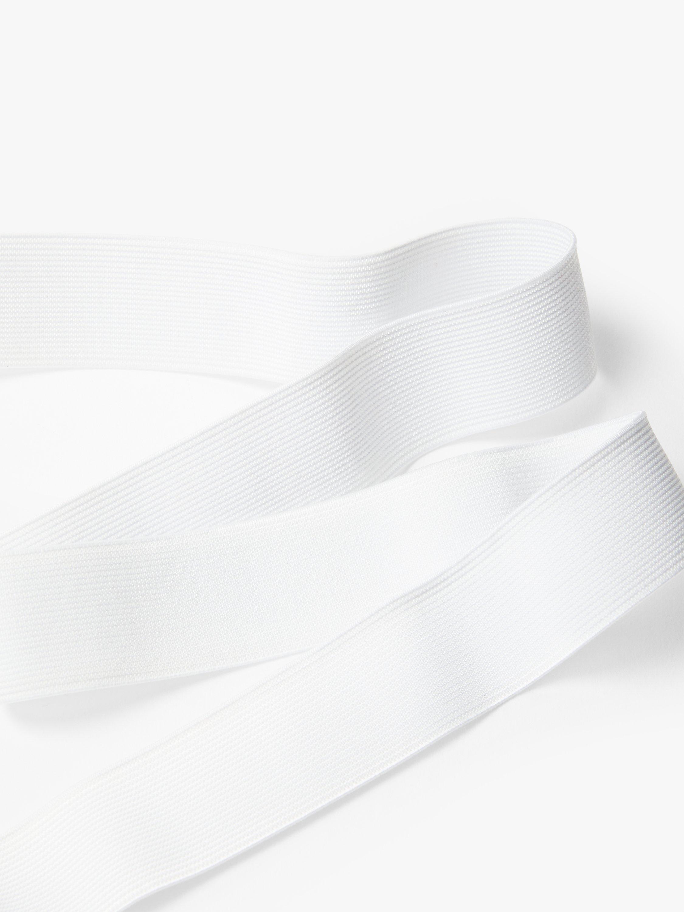 Woven 32mm elastic from John Lewis made of a polyester blend for soft, durable wear, measuring at 2m long.