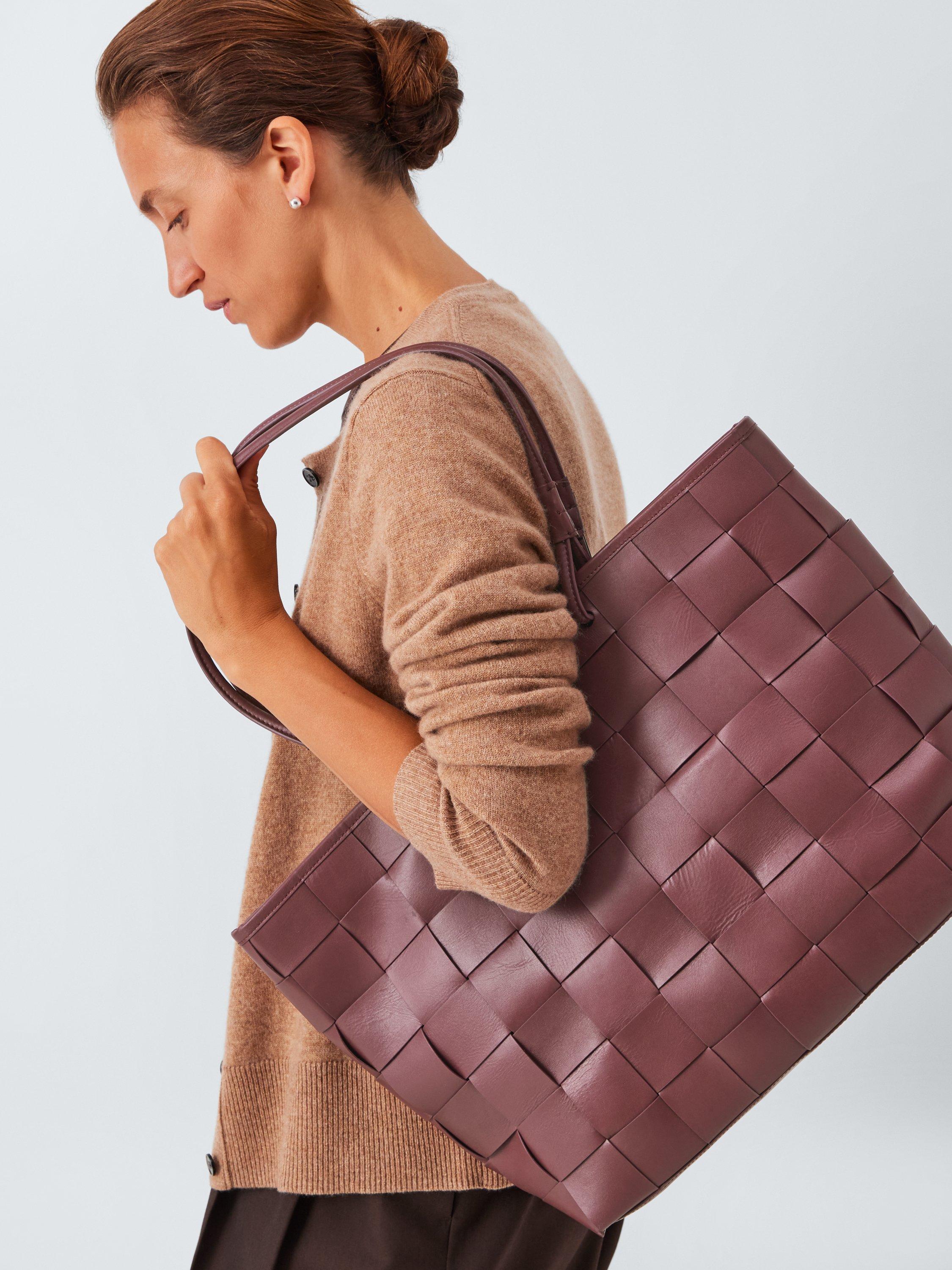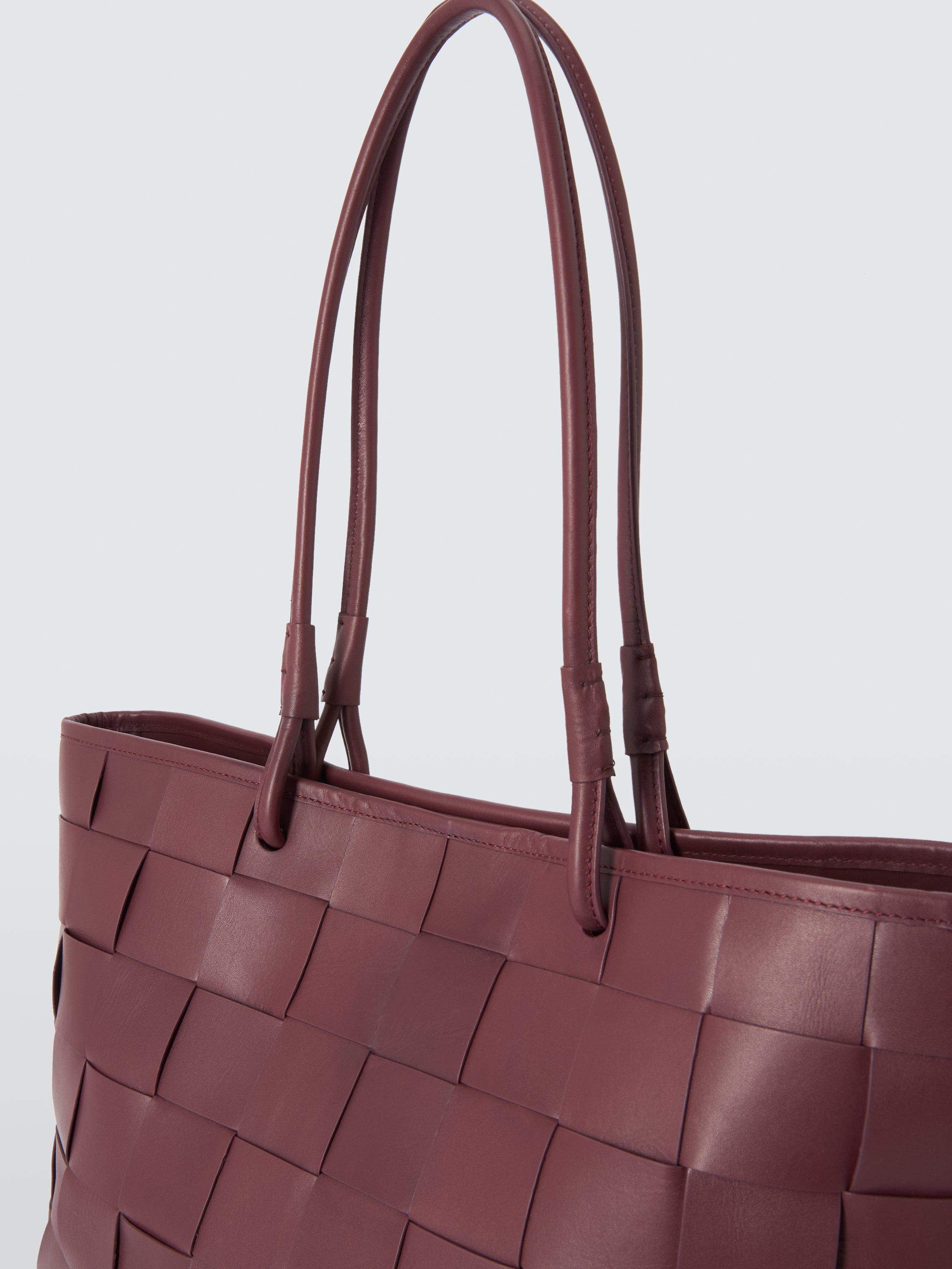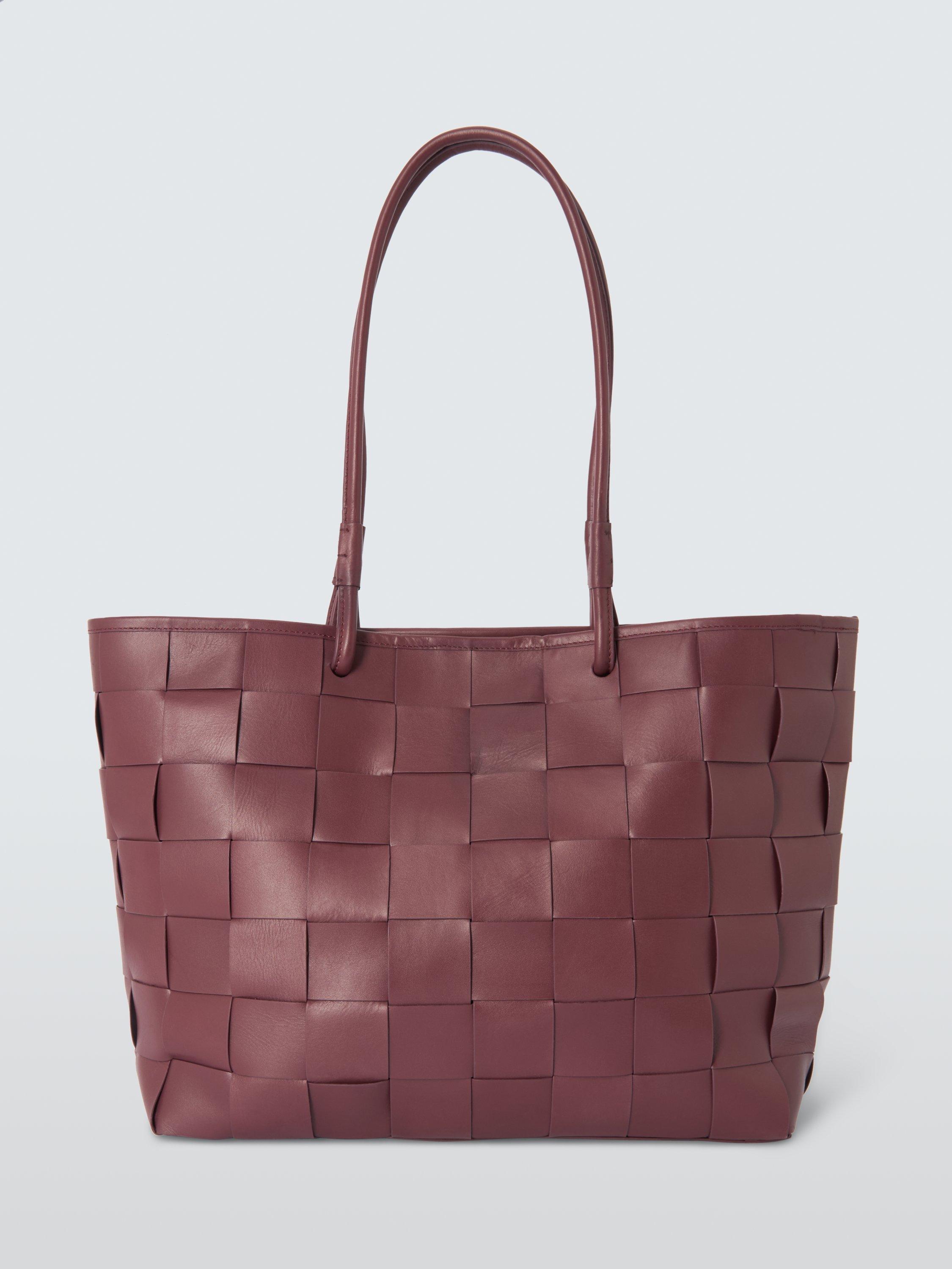 Crafted from soft leather, our woven tote bag features two top handles, a spacious main compartment and slip pocket.