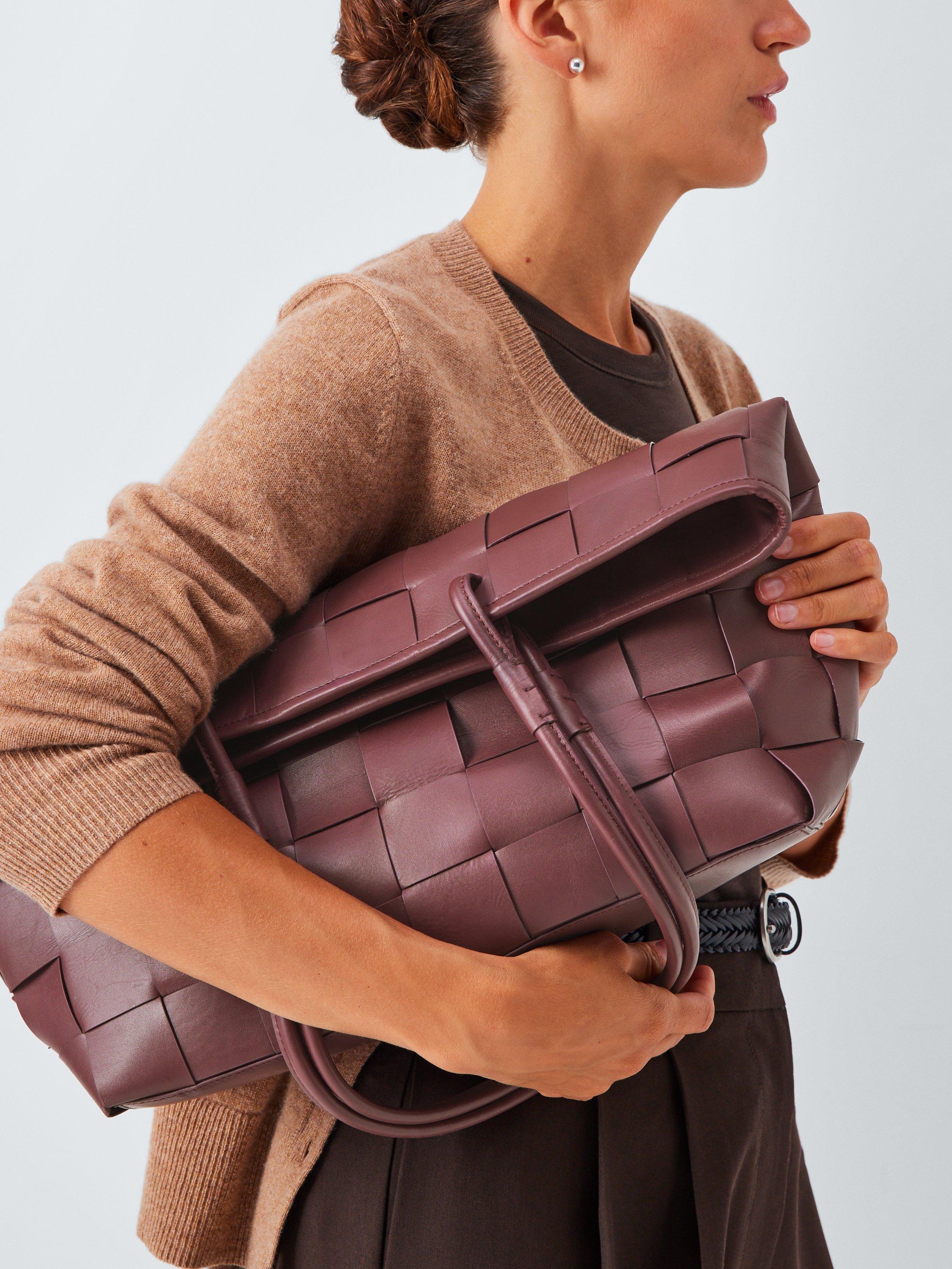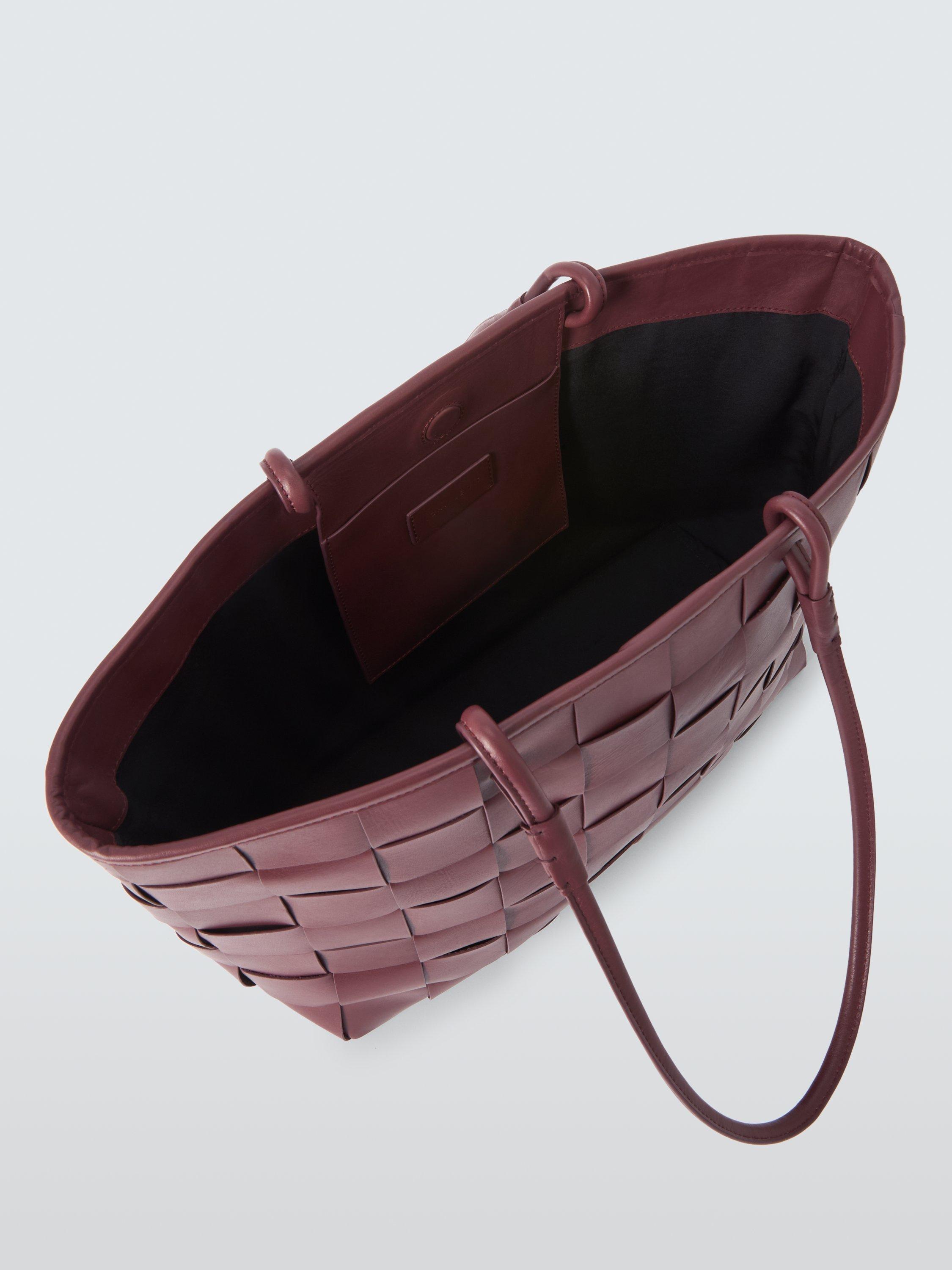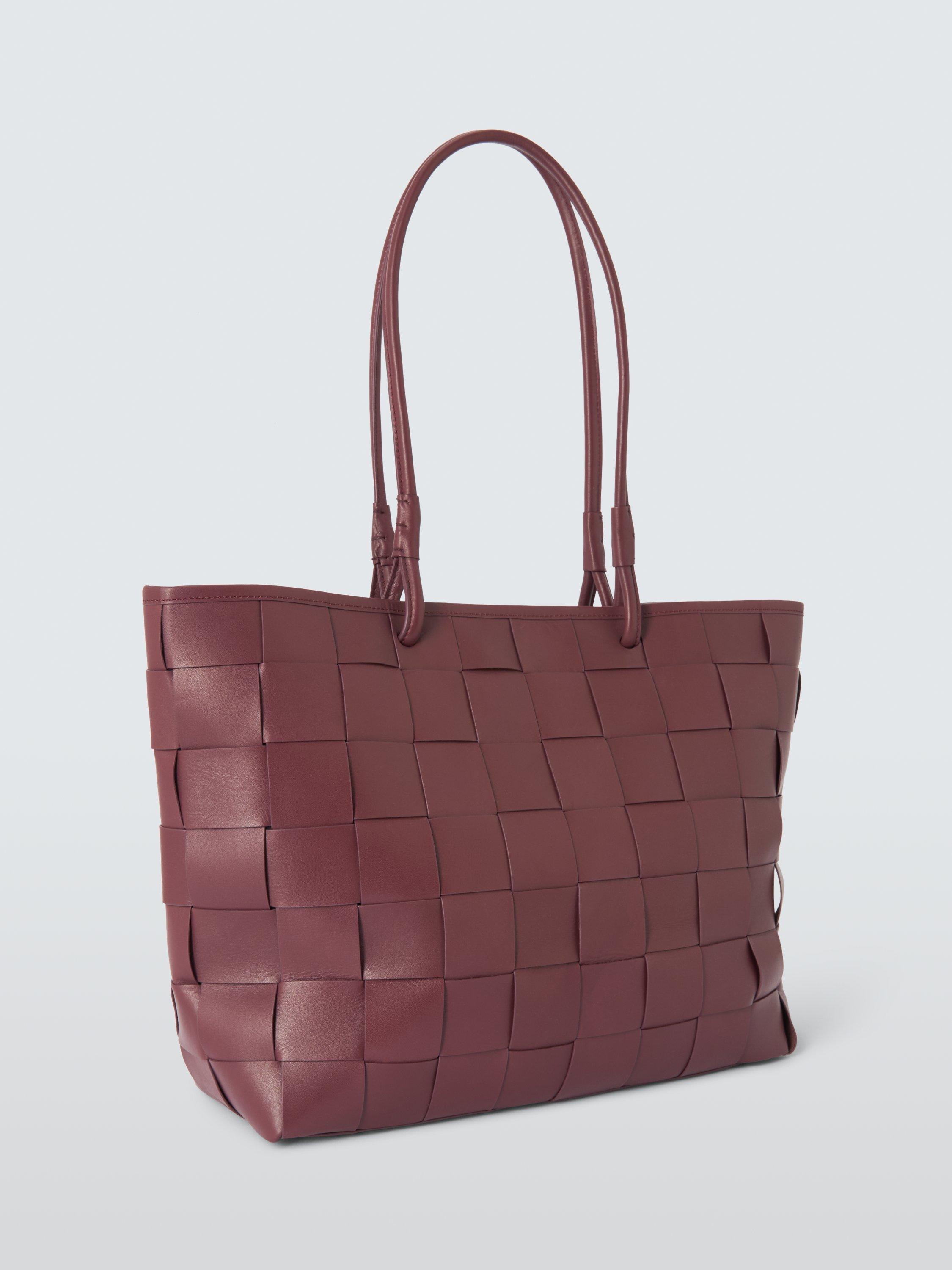 Crafted from soft leather, our woven tote bag features two top handles, a spacious main compartment and slip pocket.