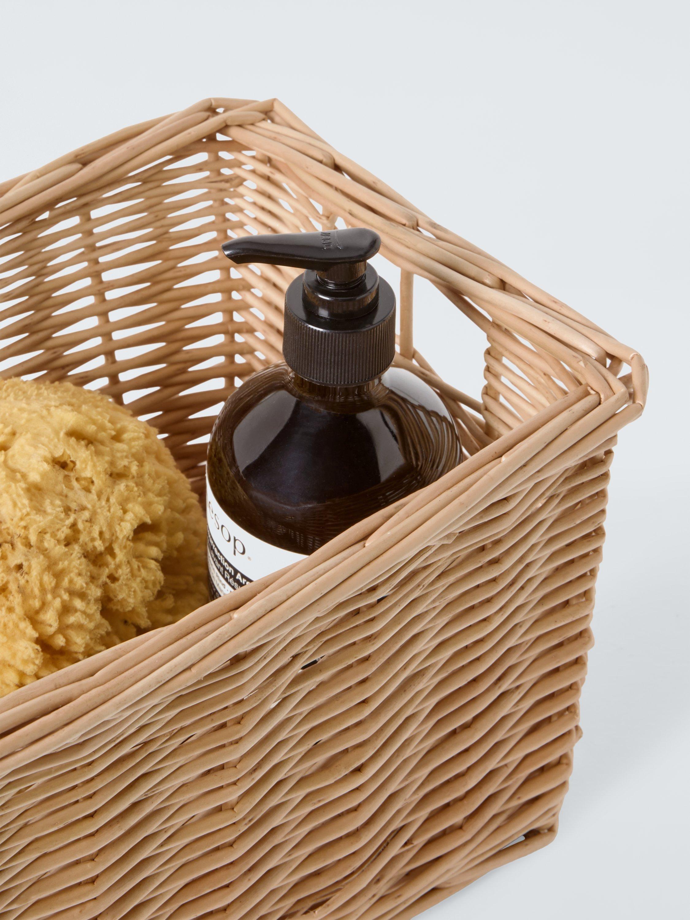 This small, handled basket is handy for use in your bedroom or bathroom.