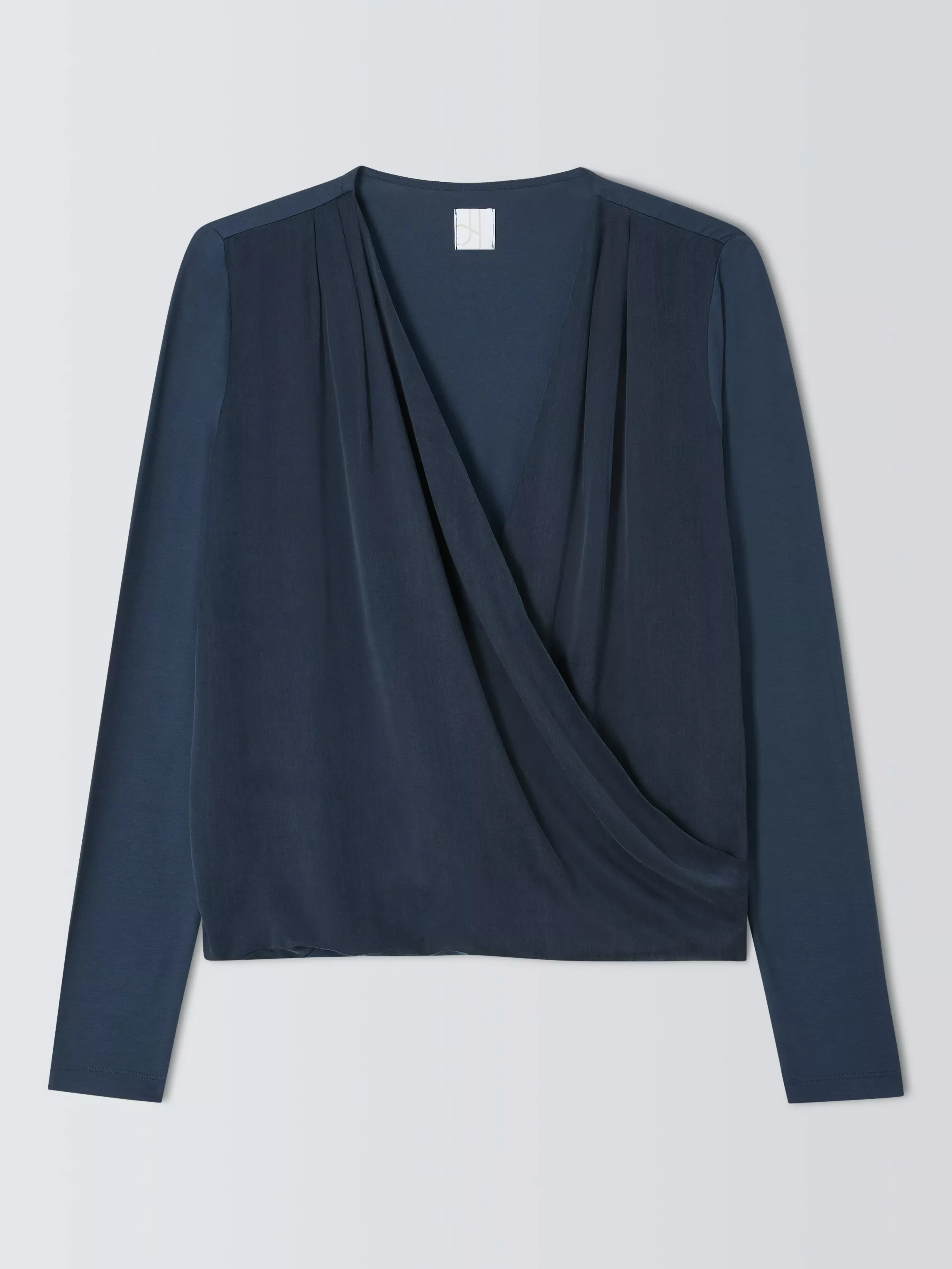 A wrap front creates a low V-neck look on this long-sleeved top, made from a fabric that drapes beautifully.