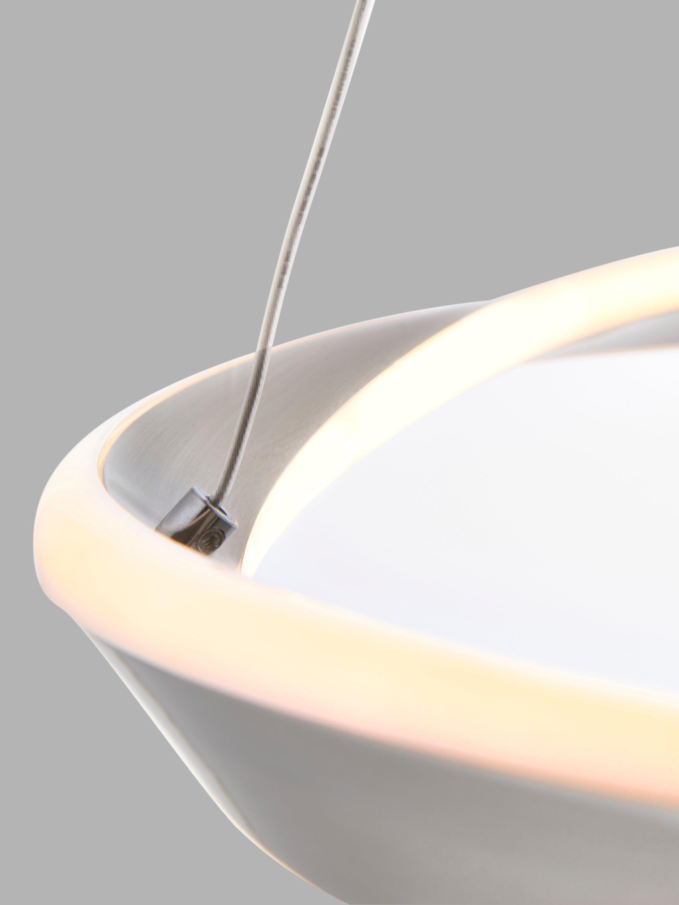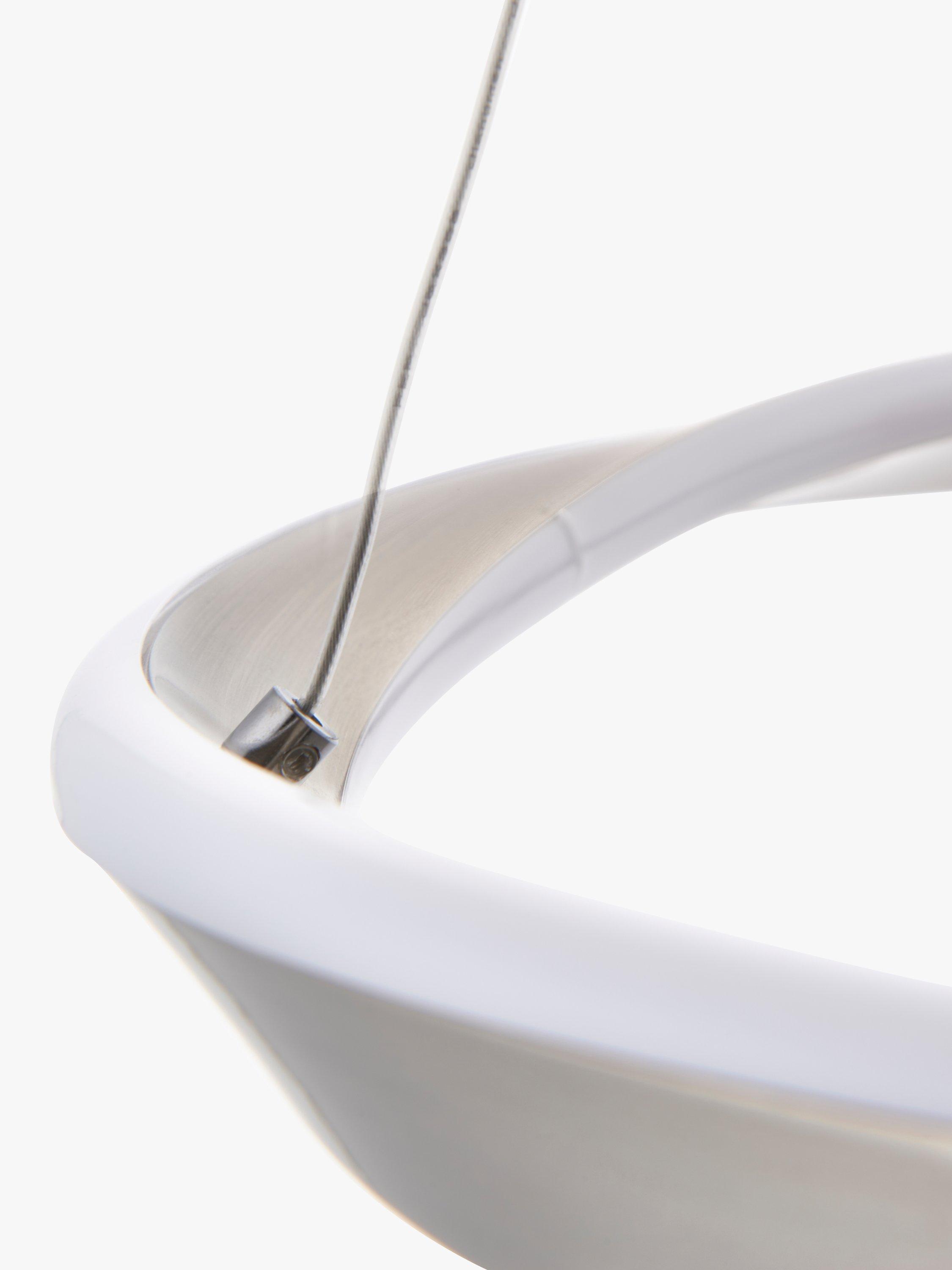 This sculptural pendant looks impressive both lit and unlit and we've integrated an LED module into its convoluted shape. The subtle brushed metal finish contrasts with the bright ring of light emitted from the warm white LED. This unusual design will draw the eye whilst offering a functional spread of light.