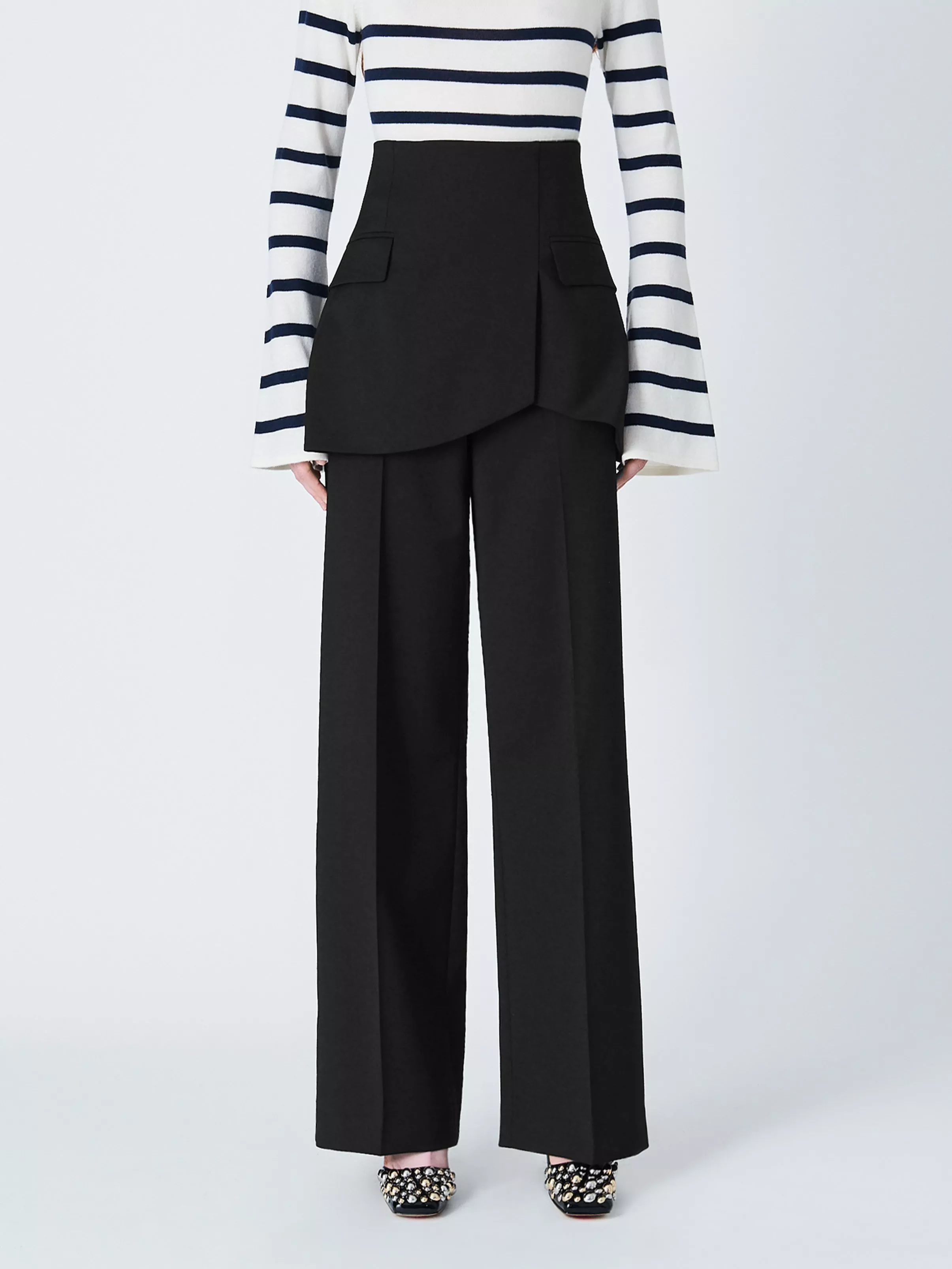 These tailored trousers are designed with an unexpected basque detail and are spun from a wool-blend for a super-smooth handle.