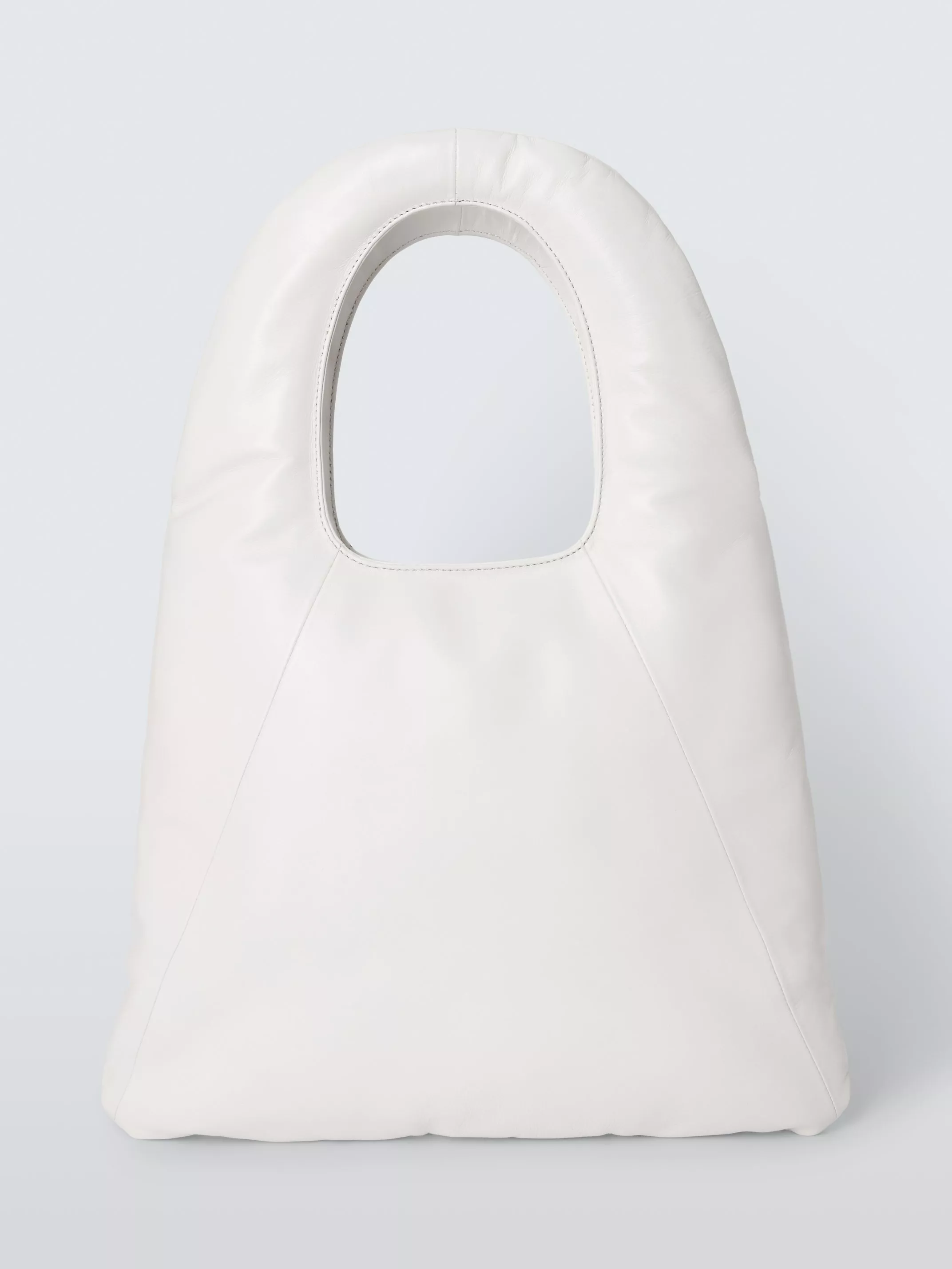Large leather grab bag in a puffy modern design. Fastens with an easy magnetic closure and has an internal cardholder pocket.