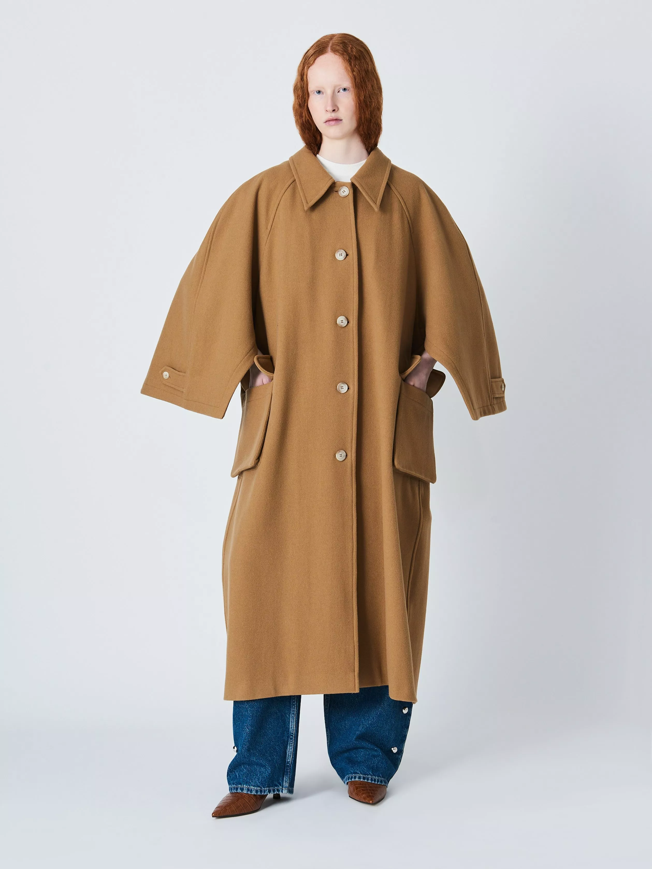 An exaggerated oversized silhouette for a truly modern finish, this cape is spun from pure wool - perfect for cooler season layering.