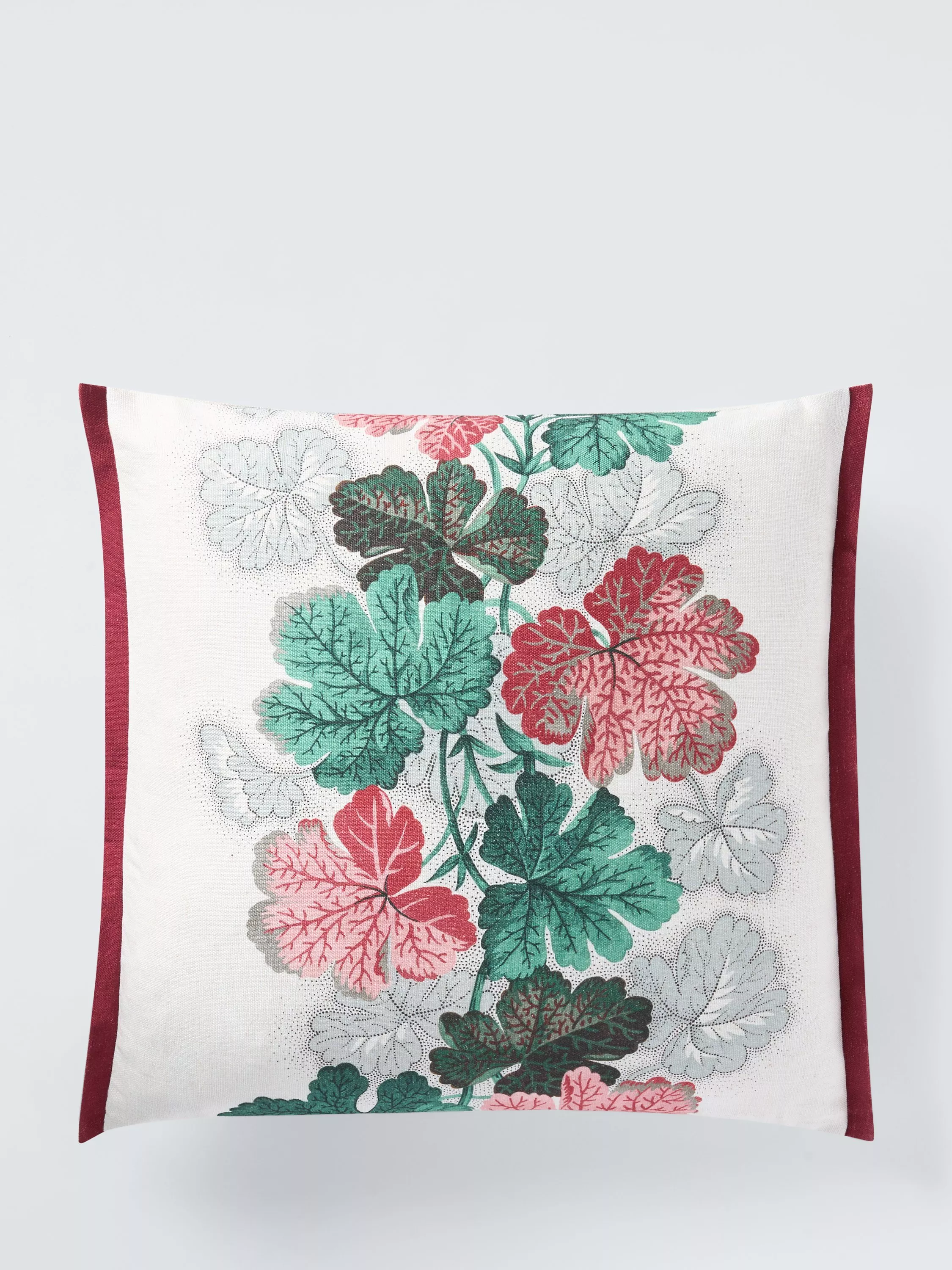 This cushion features a beautiful print on weave of colourful geranium laves and is finished with a coloured trim along either side.