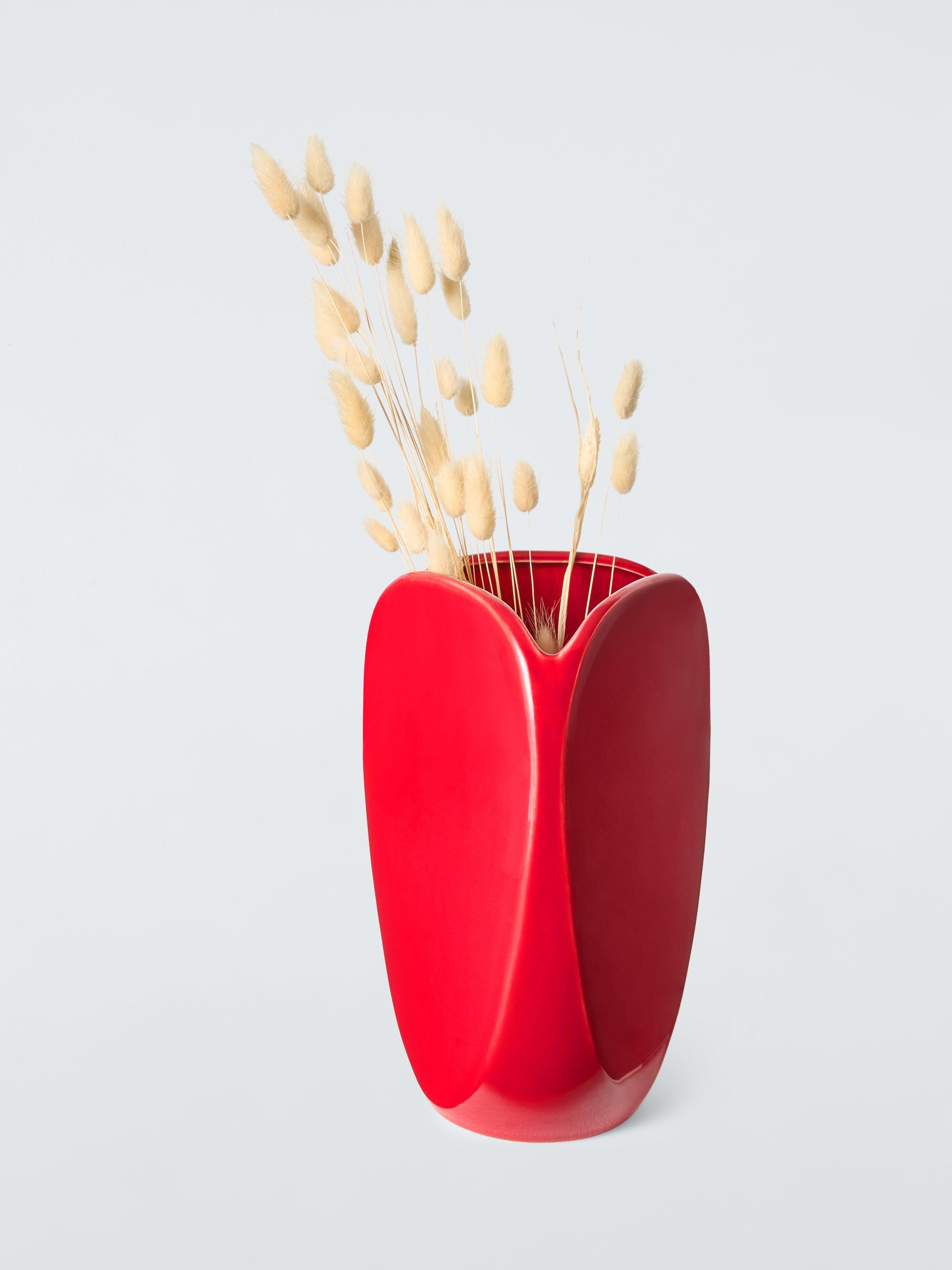Made from durable and heavyweight stoneware, this vase comes in a simple and chic three-sided design.