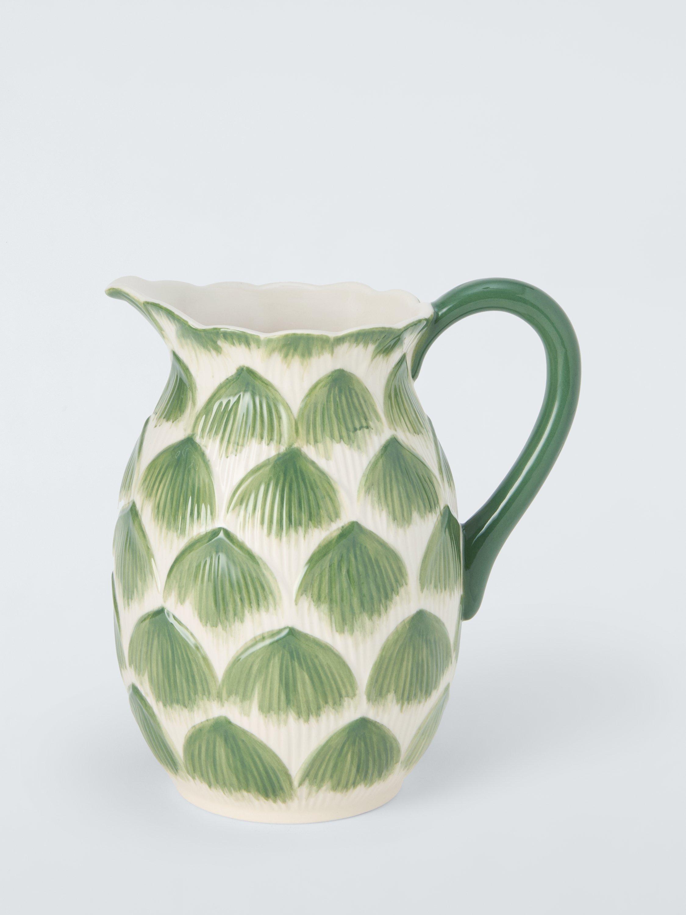 Artichoke-inspired jug, hand-painted to create a unique look. Made of stoneware, the jug is dishwasher and microwave-safe.