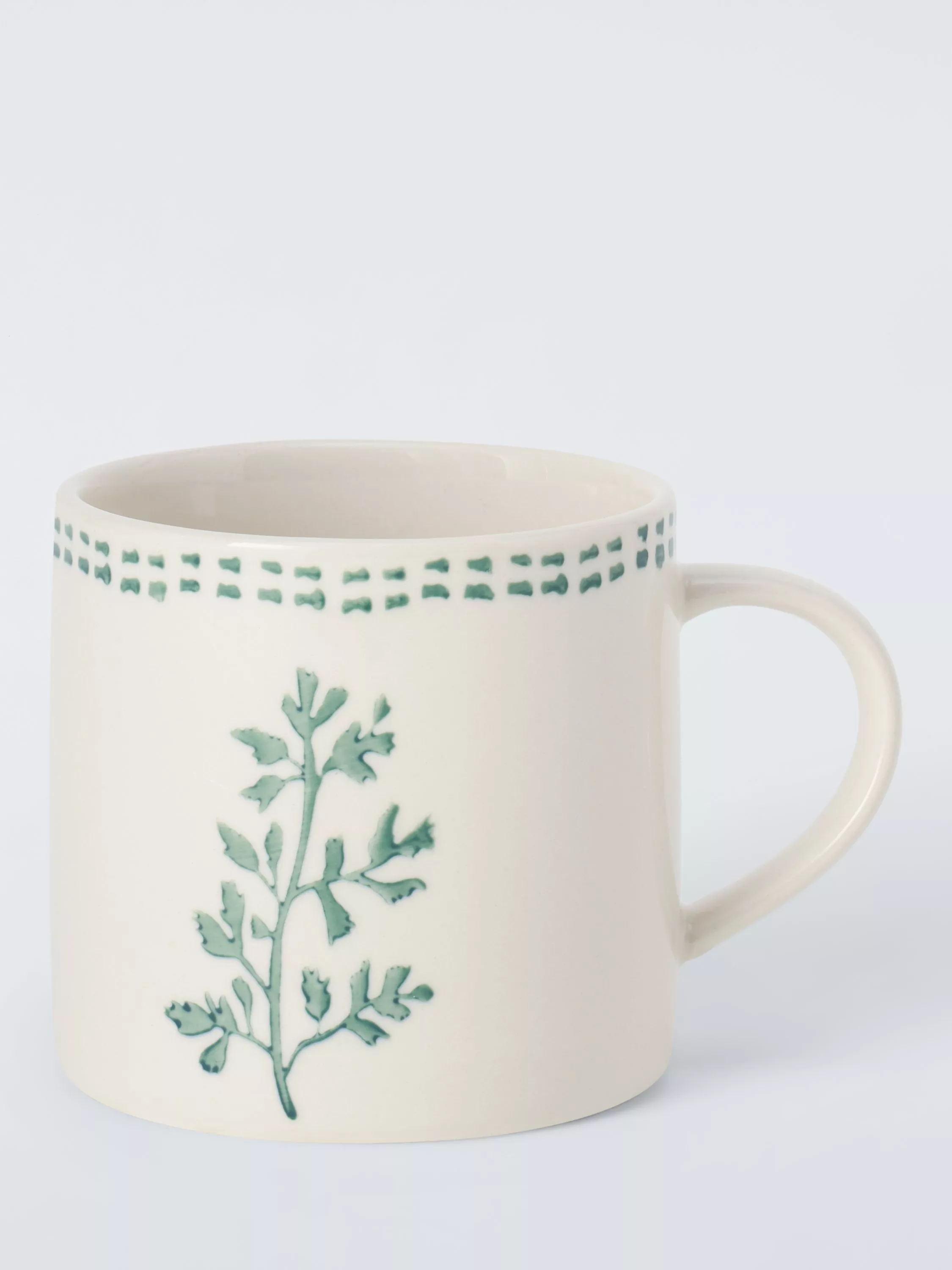 Stoneware mug featuring an exclusive kitchen herb design. The sponge-printed design creates a handmade, rustic look on the ceramics. Made of stoneware, the mug is dishwasher and microwave-safe for everyday use.