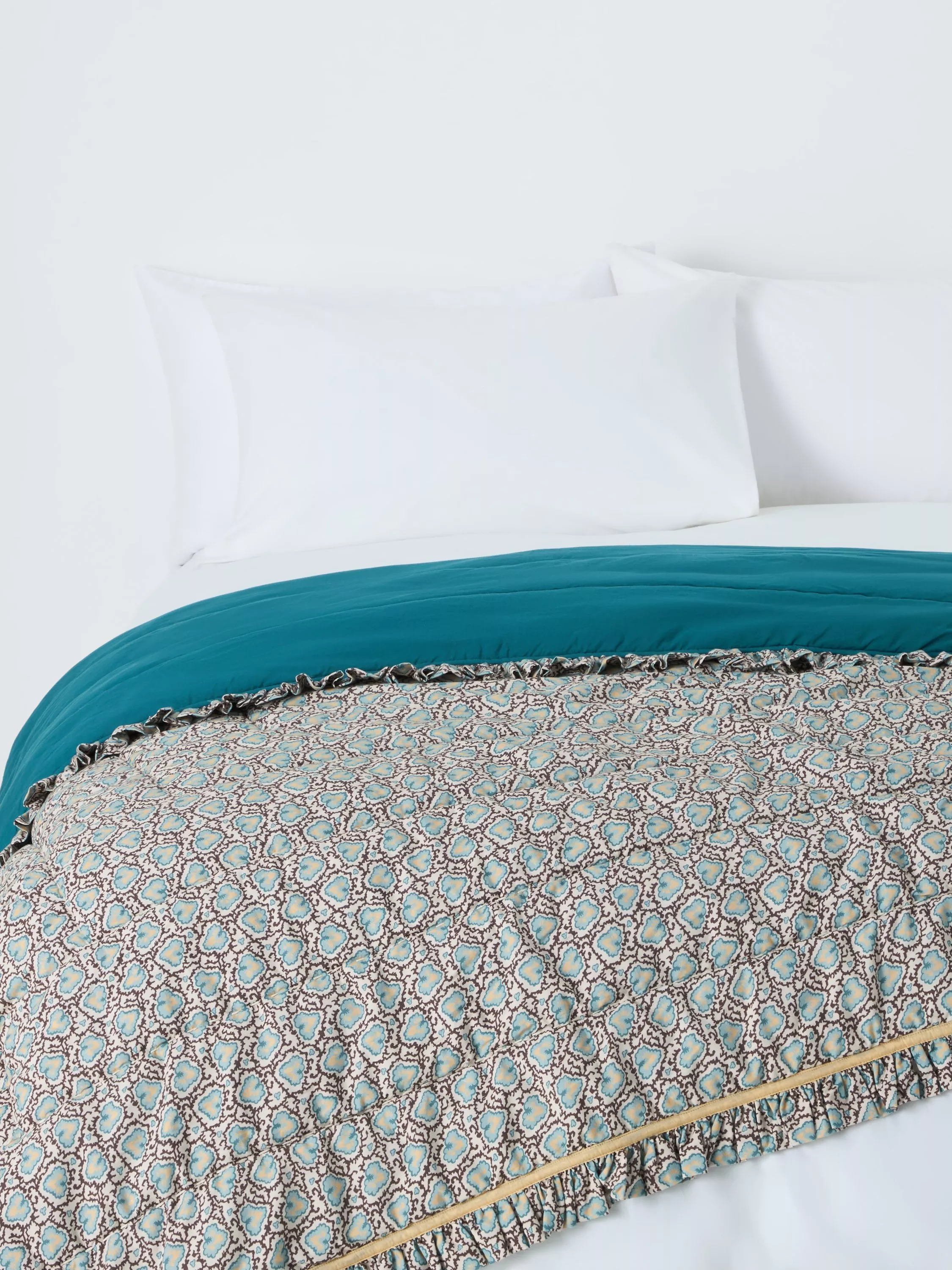 John Lewis x SandersonFrisk Quilted Frilled Bedspread, Blue