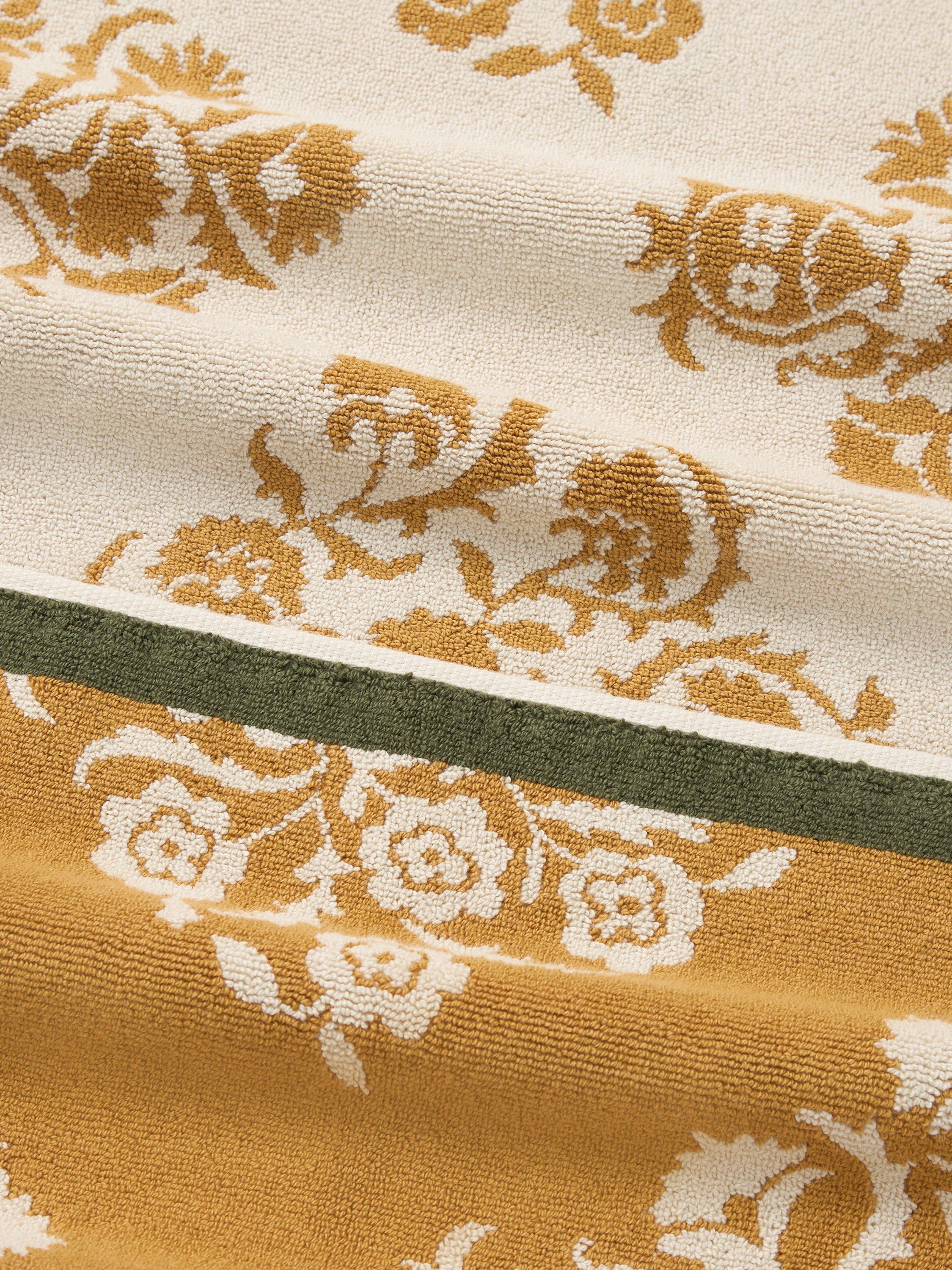 This design, with its central Ottoman flower motif, was taken by Sanderson from an original Uzbekistani embroidered Suzani bedcover. Simplified for towels, the motif breathes easy on a neutral ground in three classic colourways that befit its regal appearance.