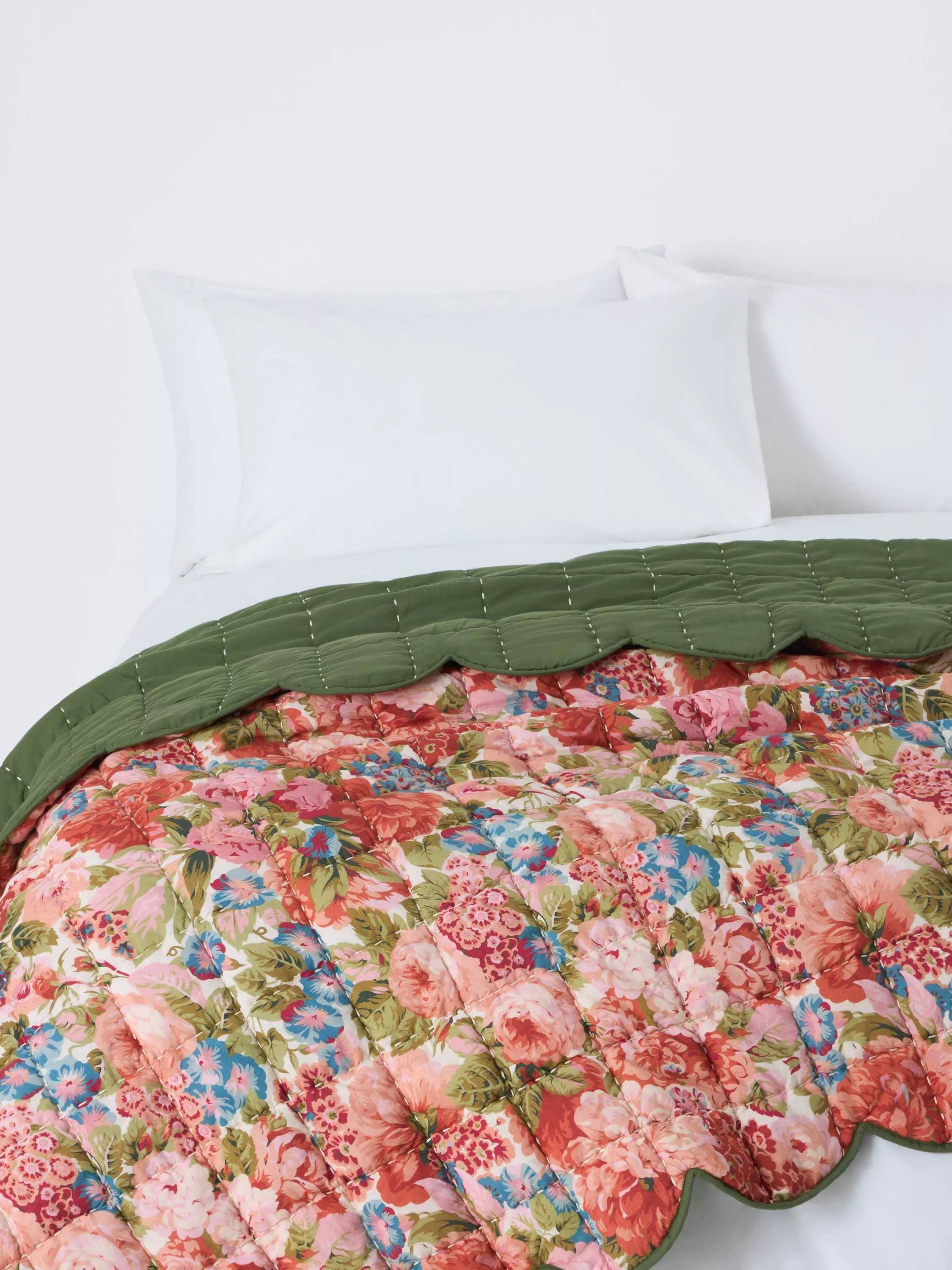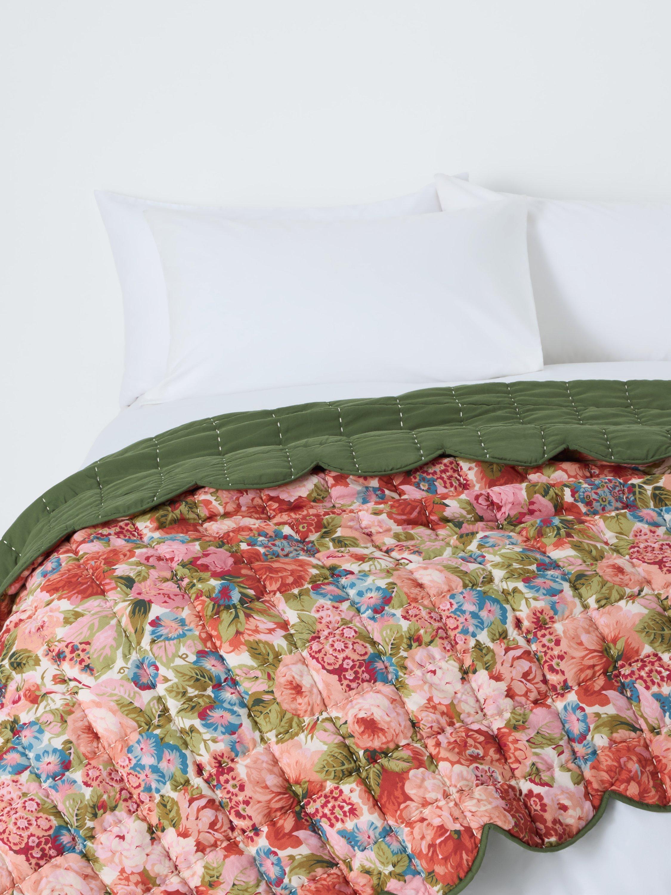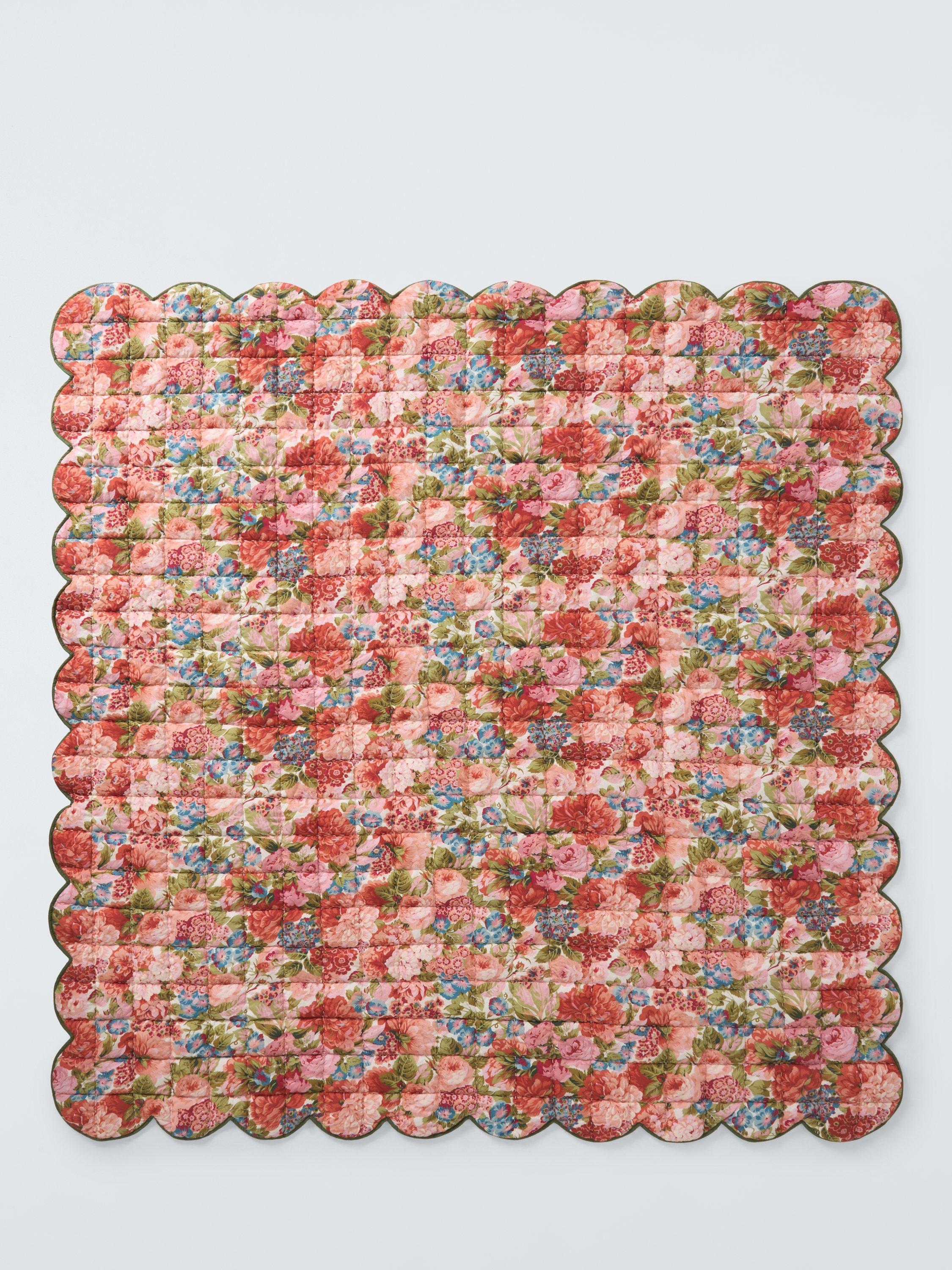 John Lewis x SandersonRose & Peony Quilted Scalloped Bedspread, Multi