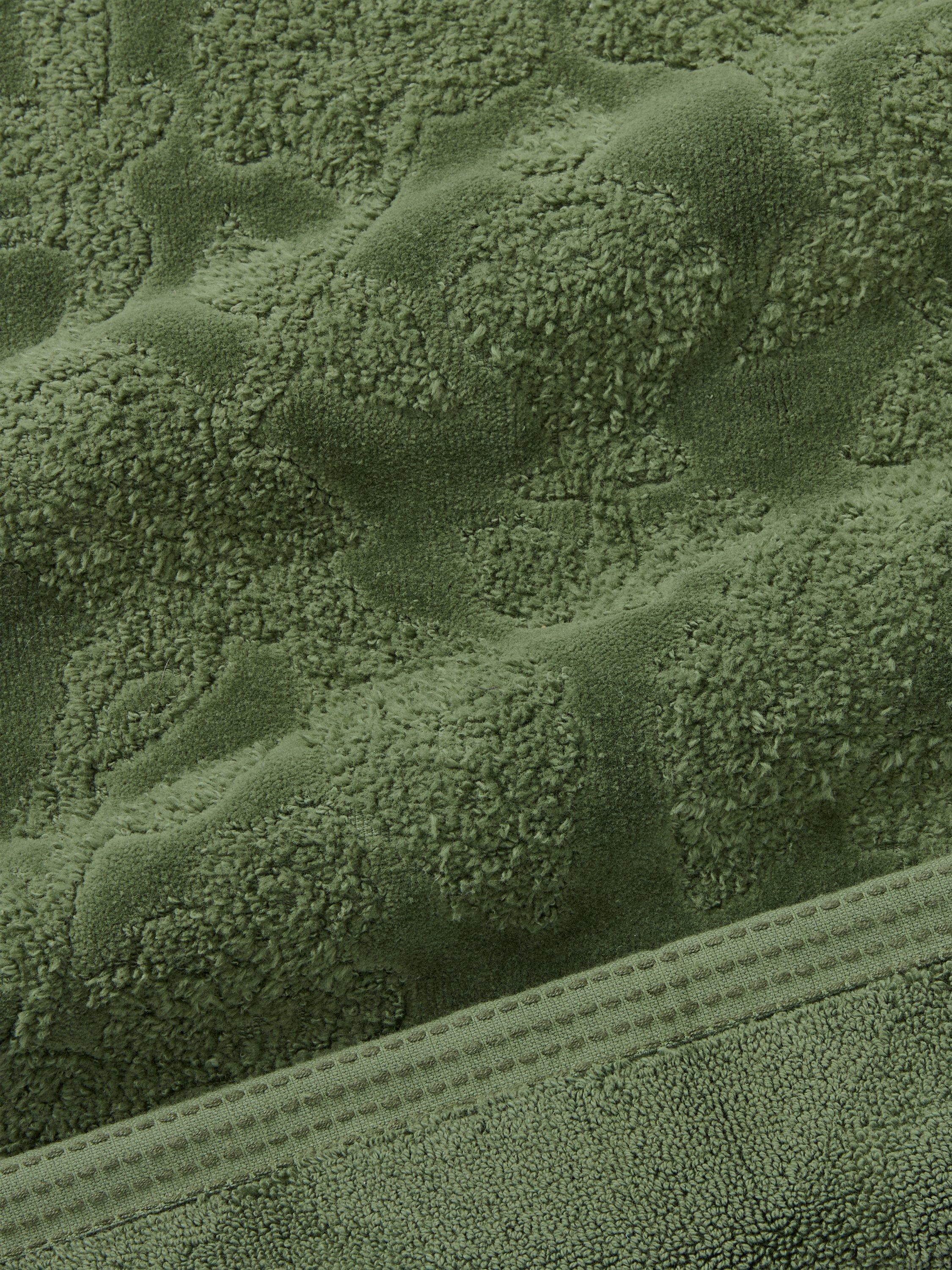 Taken from the Sanderson archive, this Indian motif of stylised peacocks, trees and butterflies translates wonderfully onto towels. A two-tone design, the majesty of the peacock is refined with trimmed edges framing the towels top and bottom.