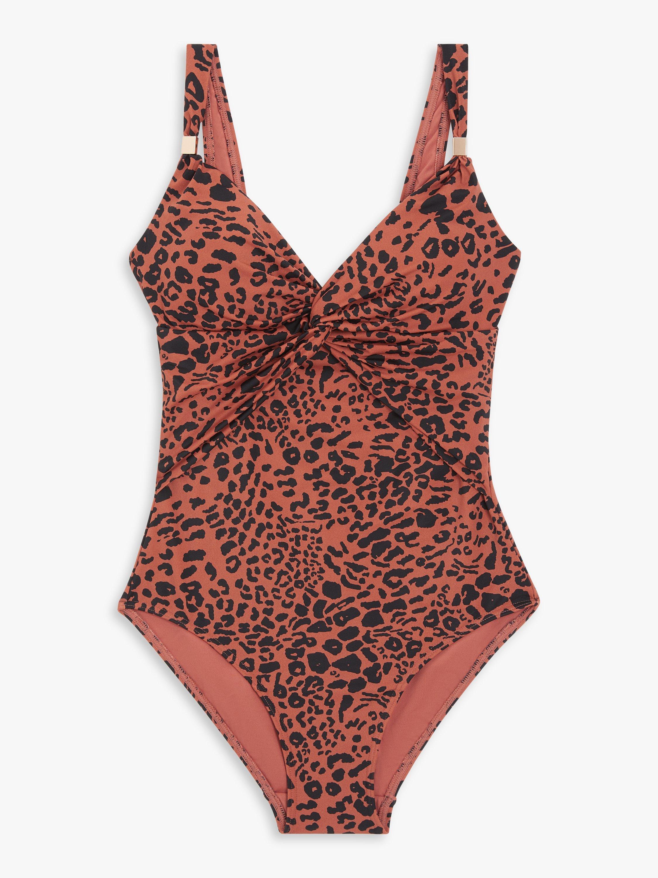 Go in on the fashion favourite and bring leopard print to your pool and beachside look with our Yala swimwear. This swimsuit provides medium tummy control, has a plunging neckline, metal hardware at the apexes and a flattering twist front.