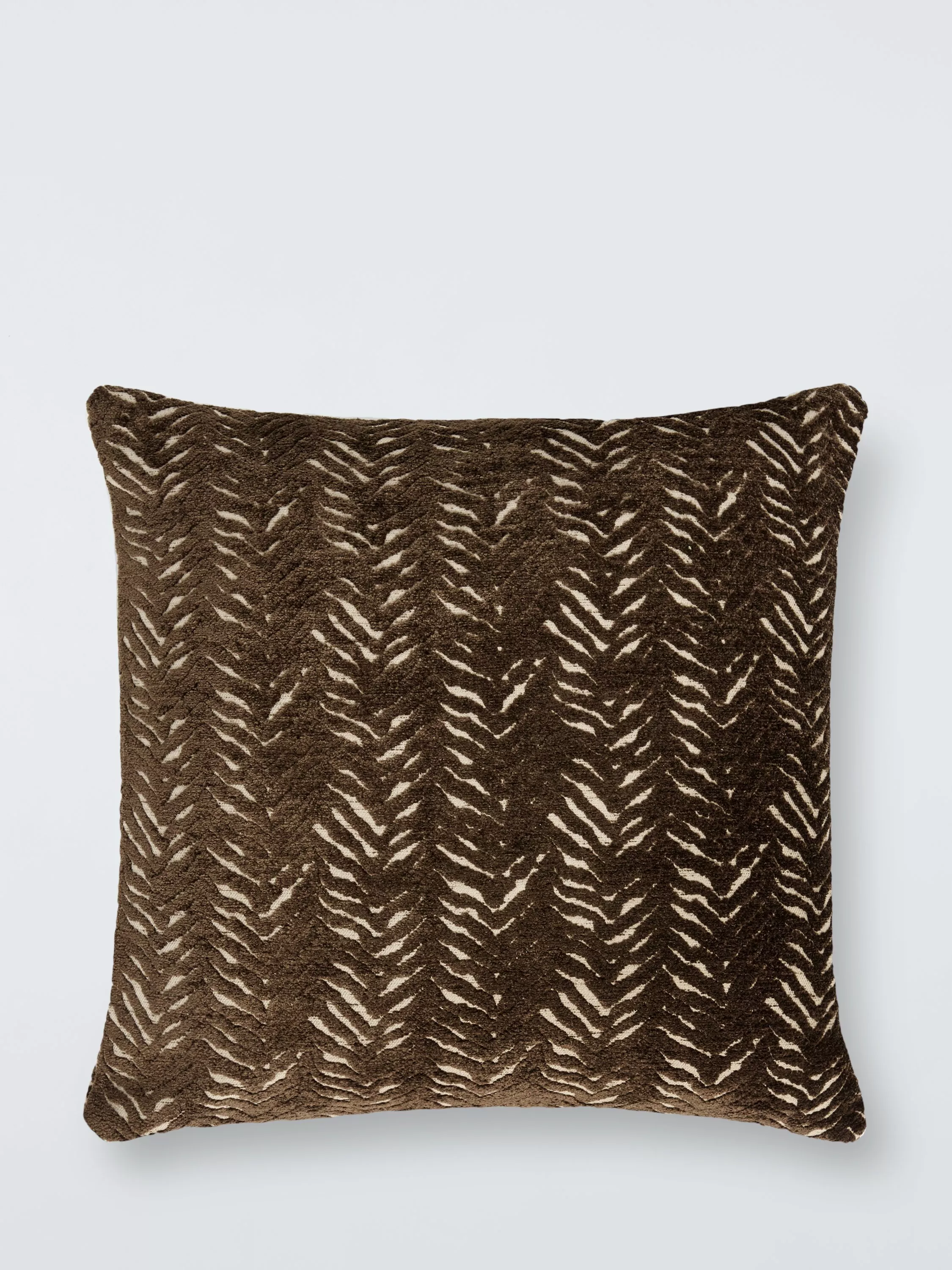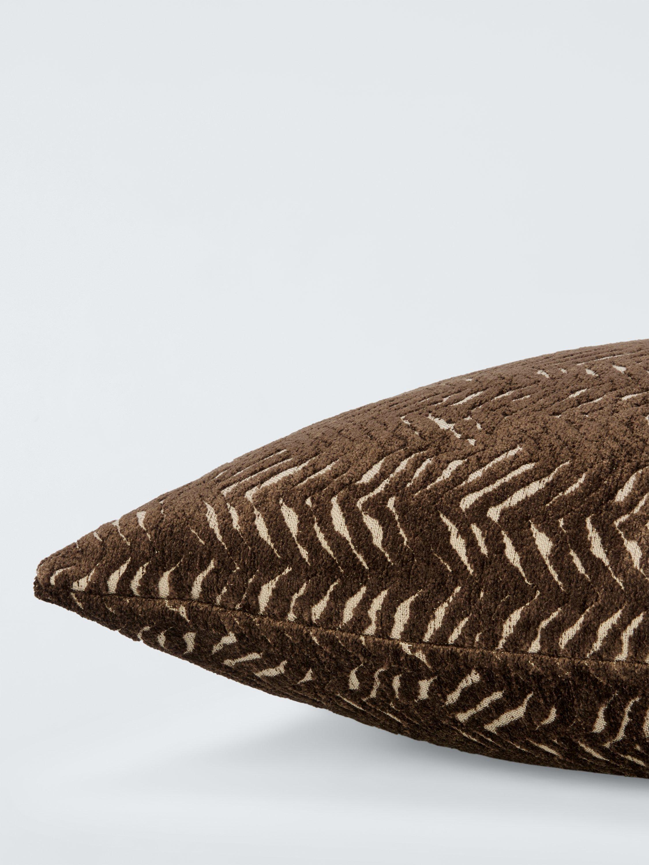 Made from textured chenille fabric, this feather-filled cushion delights with its luxurious zebra print.