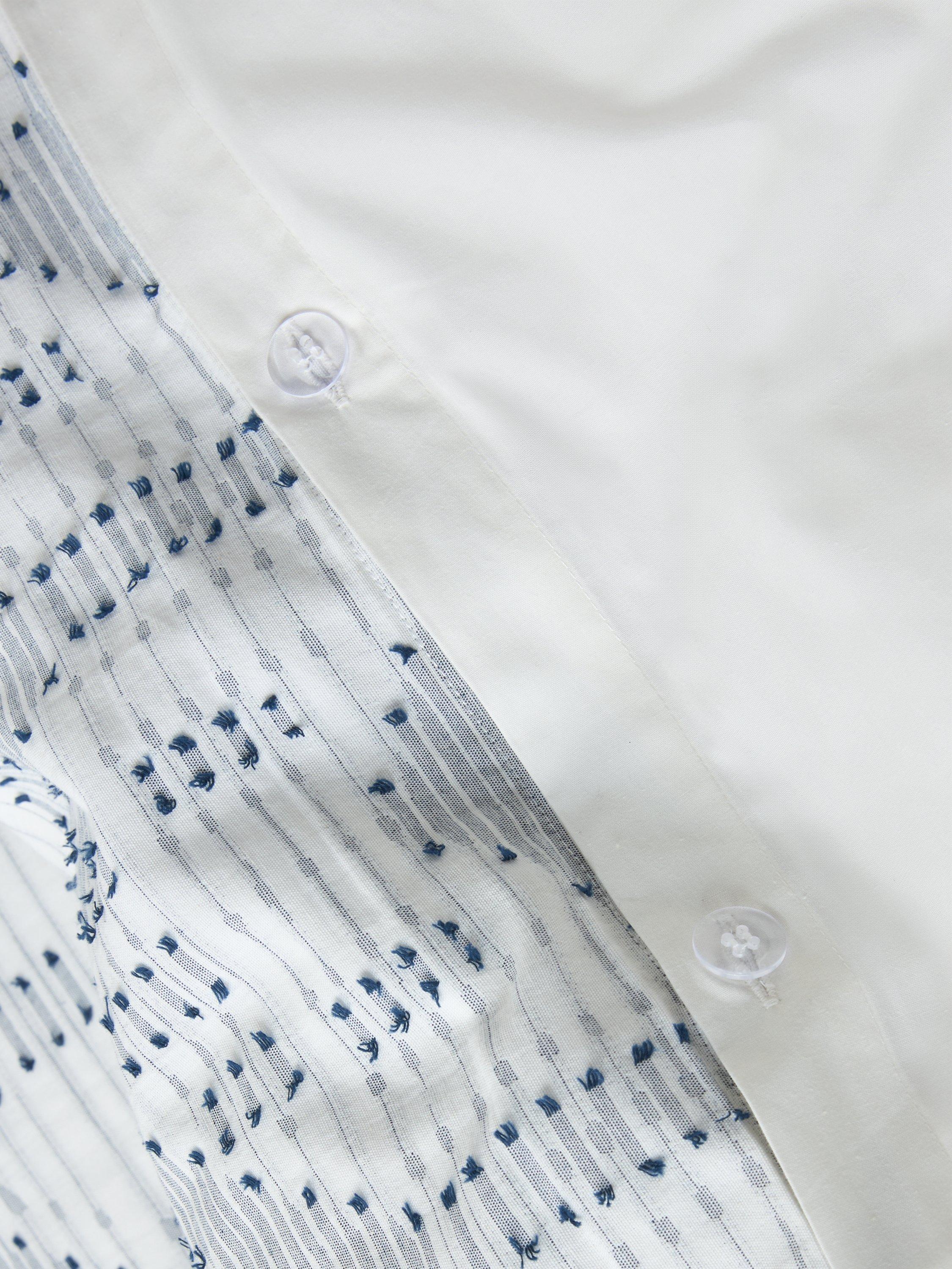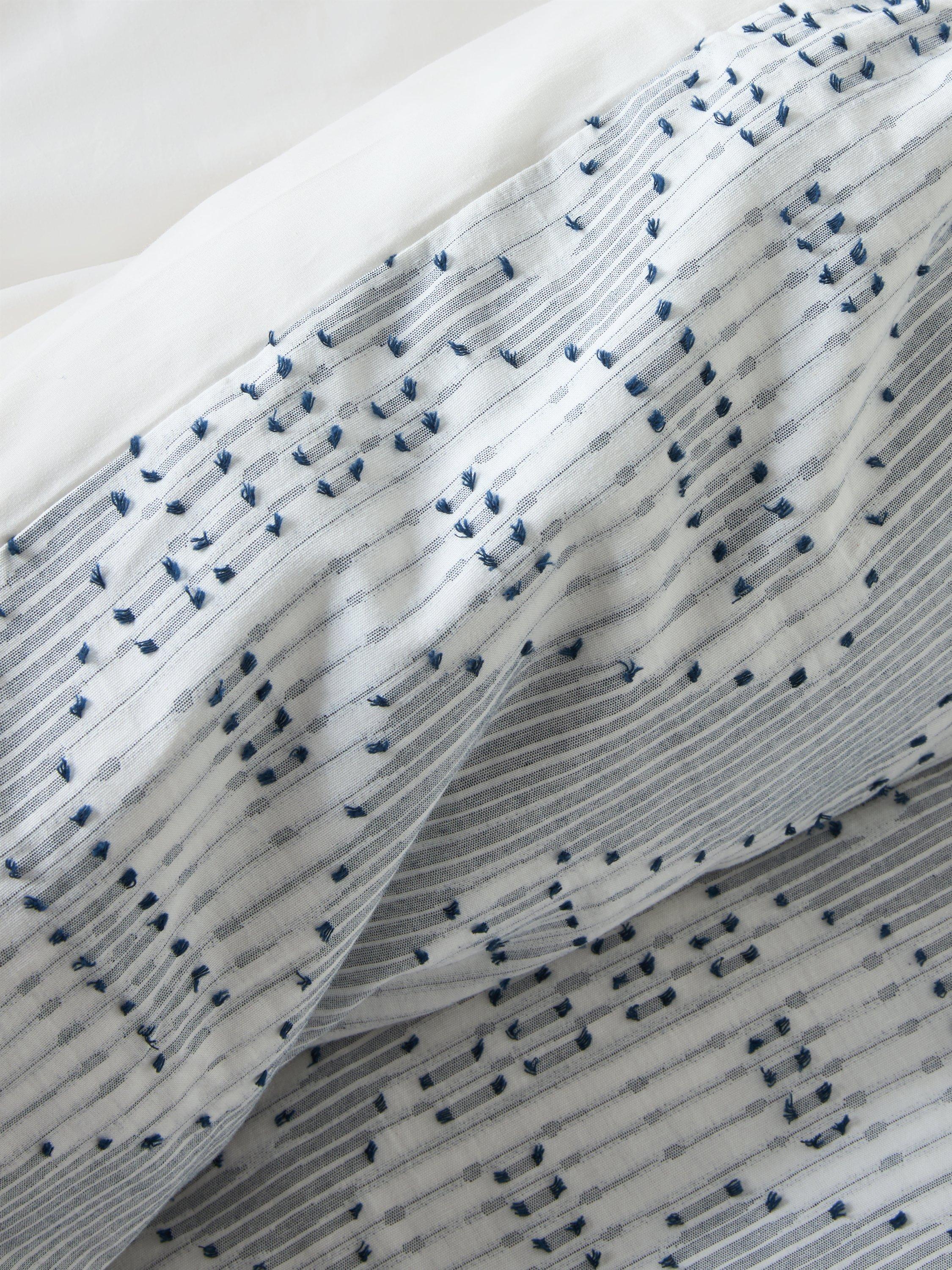 A fresh and relaxed design with a blue Ikat weave on a white background and plain reverse. The cool colourway lends itself well to accessorisation with bright pops of colour.