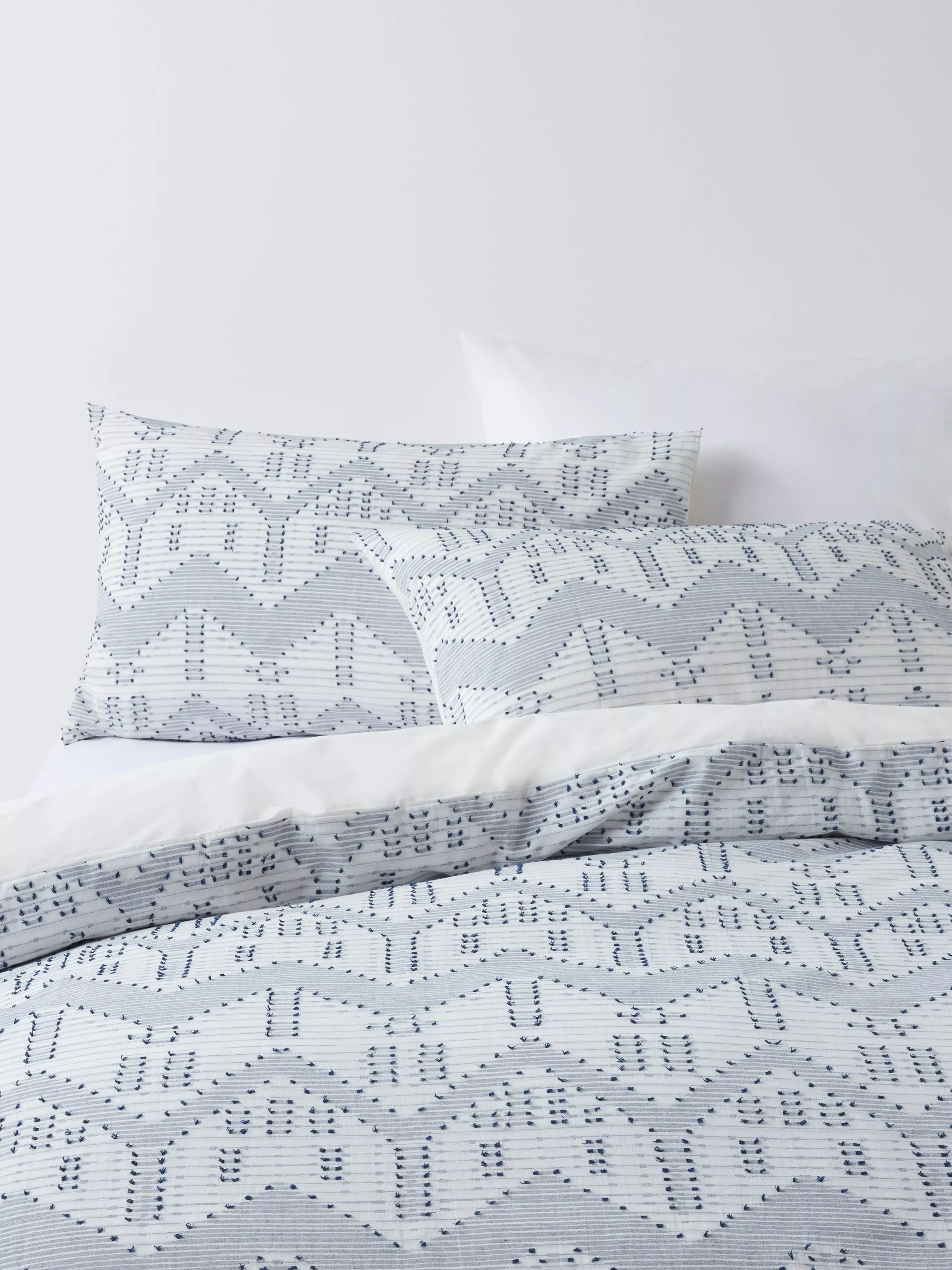 A fresh and relaxed design with a blue Ikat weave on a white background and plain reverse. The cool colourway lends itself well to accessorisation with bright pops of colour.