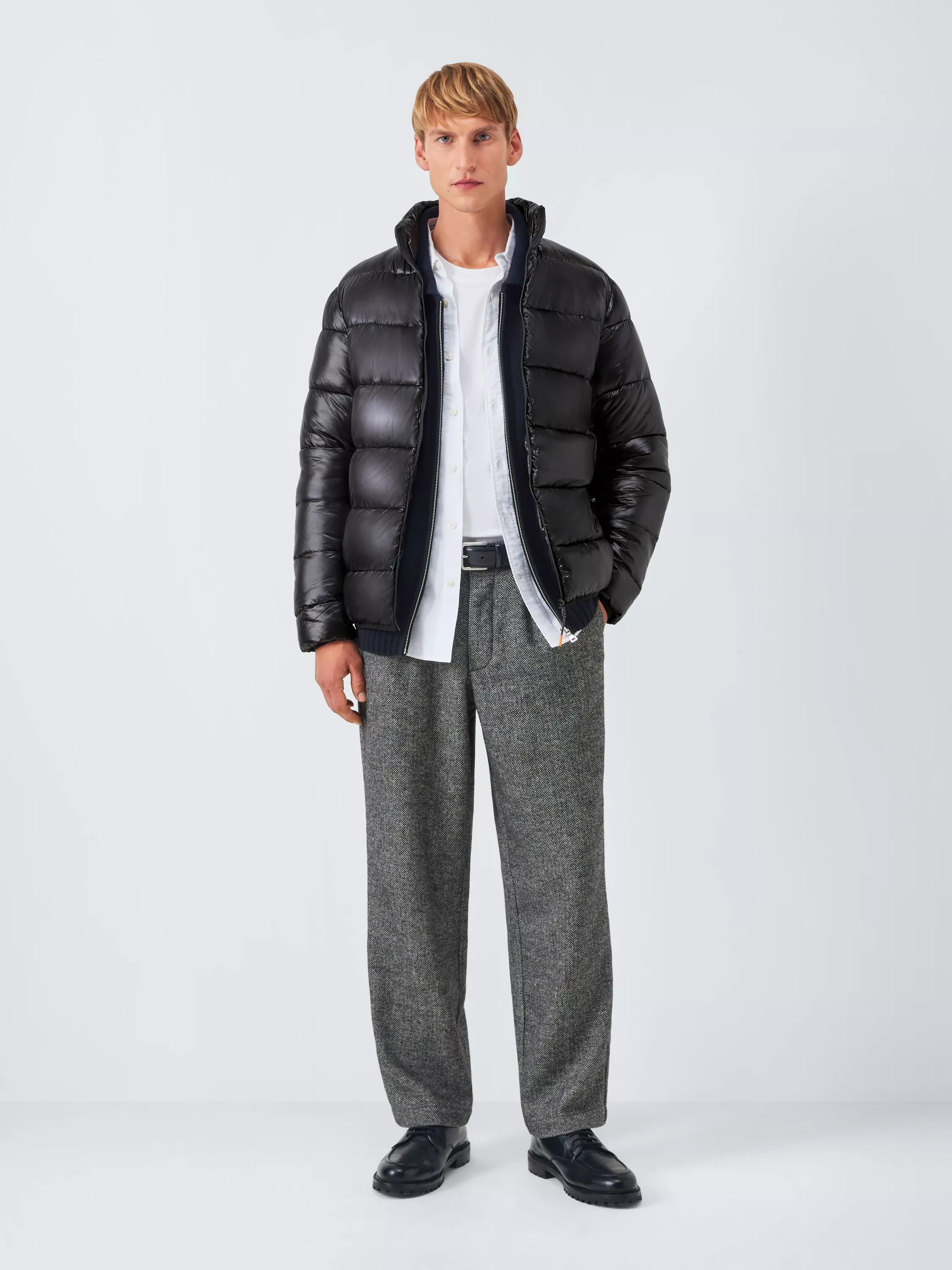 A lightweight puffer jacket that excels in retaining warmth. It also features a stand collar, a zip-fastened front and two convenient side pockets.