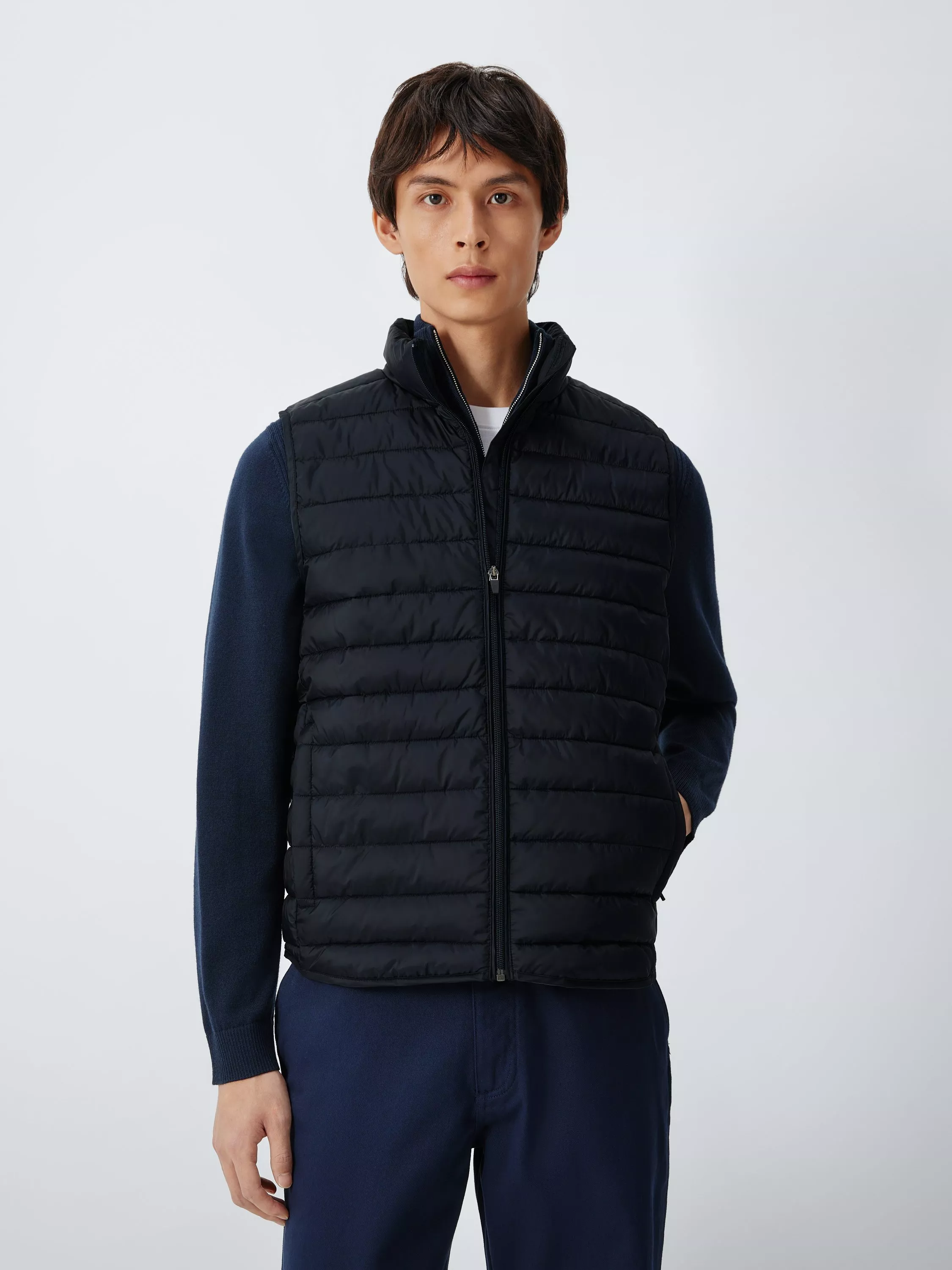 Maximise your seasonal layering with this essential puffer gilet, featuring a streamlined horizontal quilted design that balances warmth with a clean, contemporary look. The lightweight yet insulating wadding provides an effective thermal barrier, making it an ideal choice for transitional weather without adding unnecessary bulk.