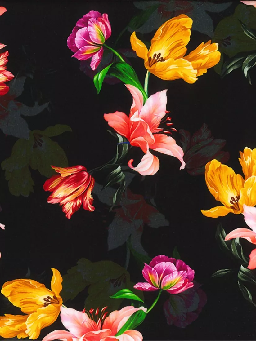 John LoudenFloral Viscose Twill Fabric, Black/Multi