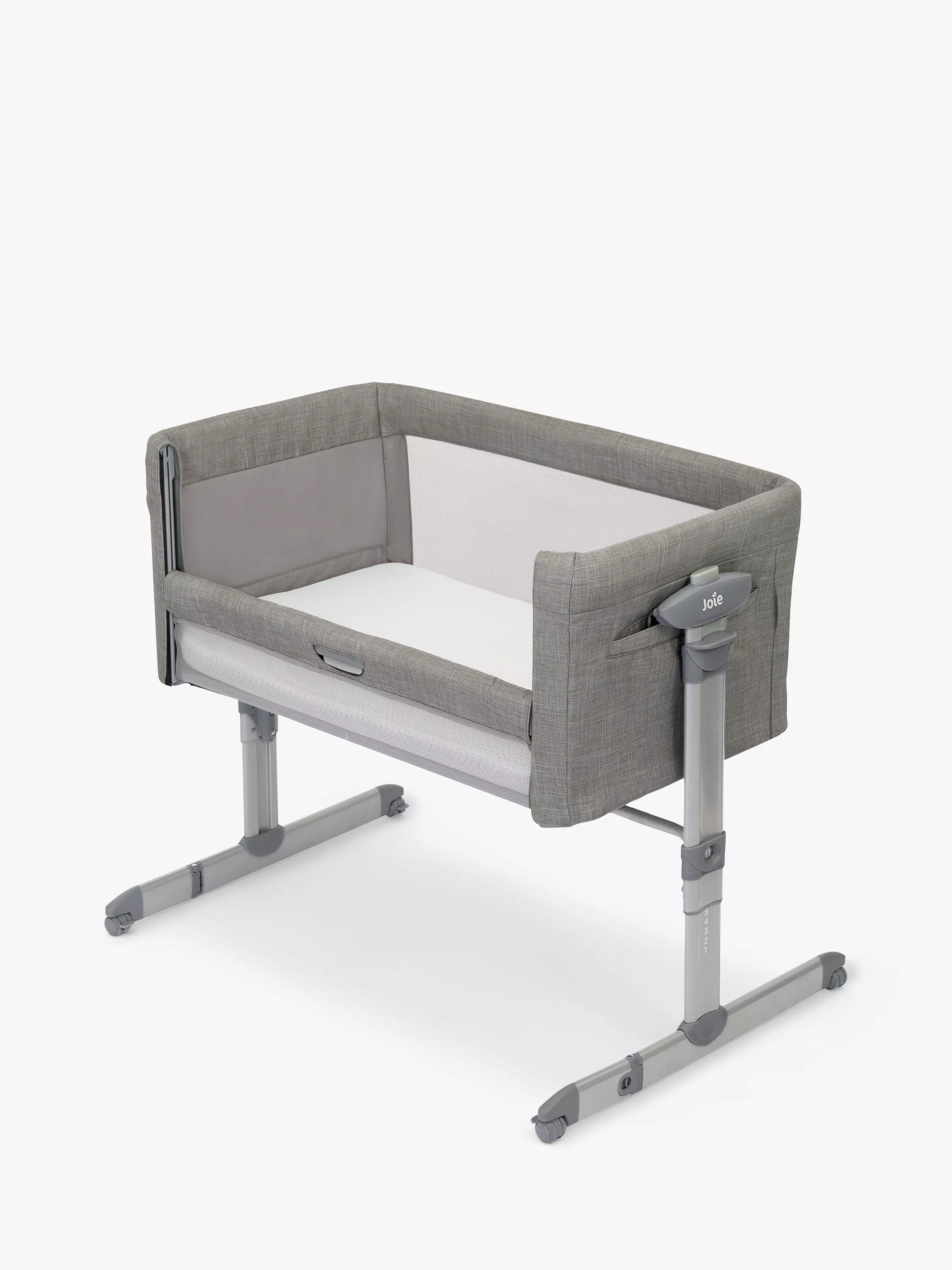 The sliding side panel can be lifted and lowered with just one hand, allowing you to quickly and easily get to your infant if they stir in the night so you can feed, soothe or snuggle them from the comfort of your own bed. The crib features 11 height adjustments that mean it measures up to nearly any size bed and comes with adjustable folding feet that step right up to your bed so that you can always find the best fit for you and baby. For extra safety and security, it comes with a strap and clip attachment to secure it easily to your bed.