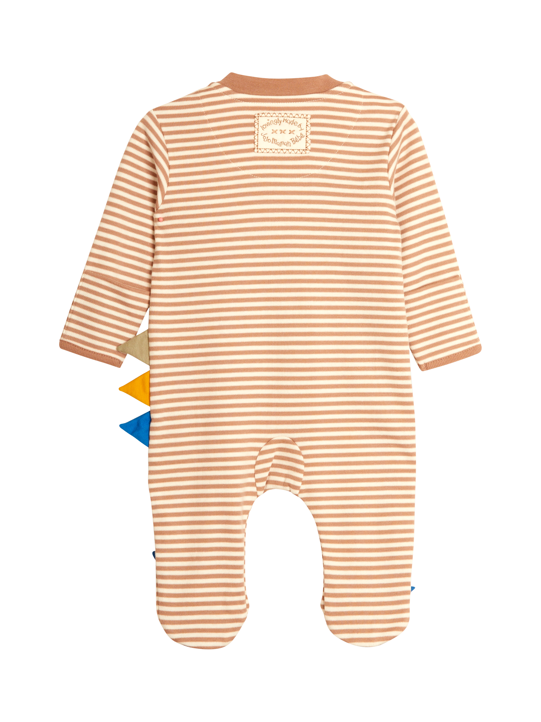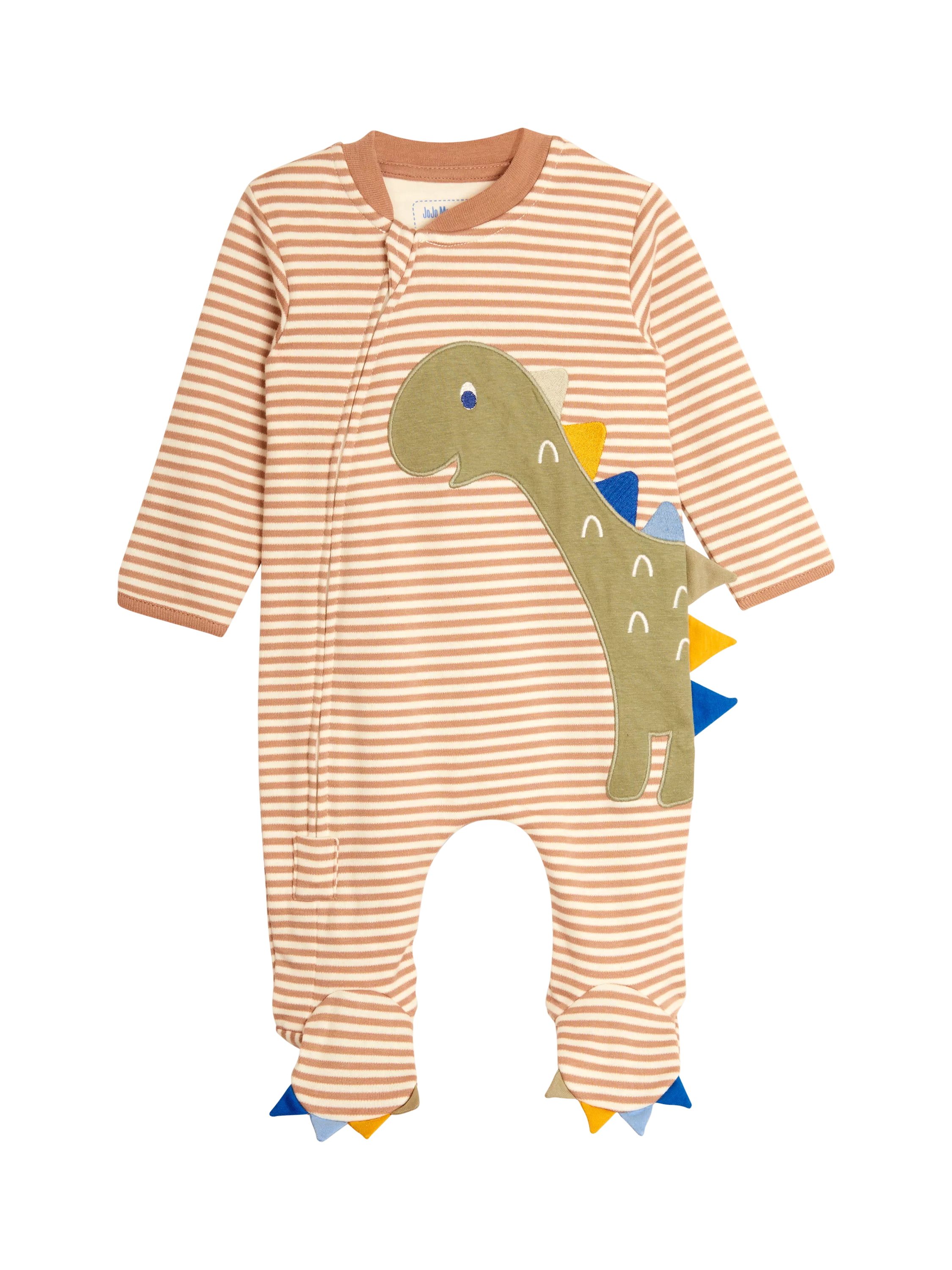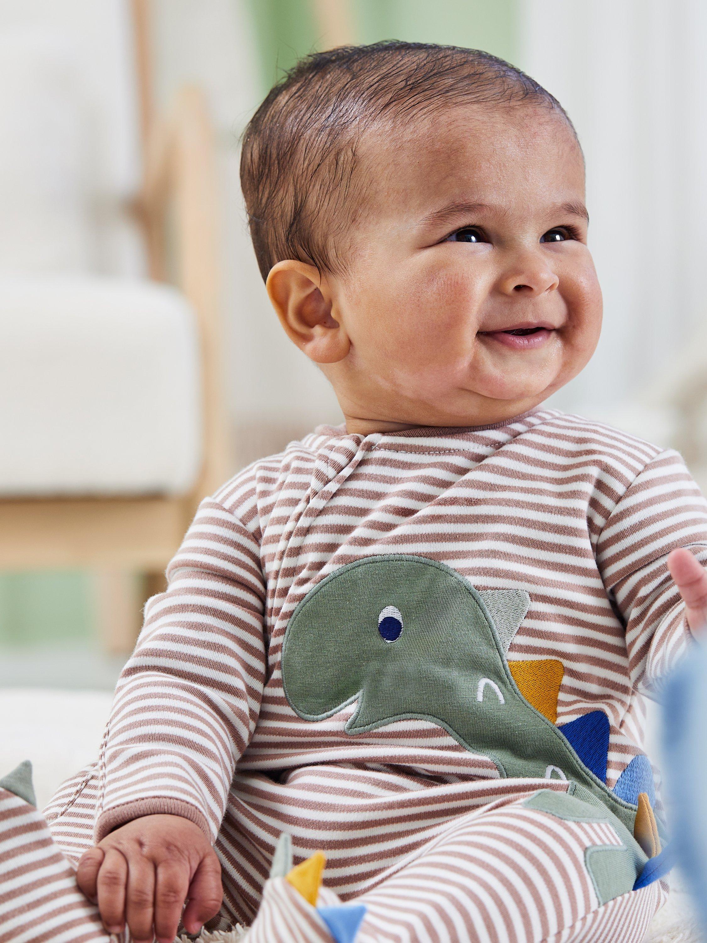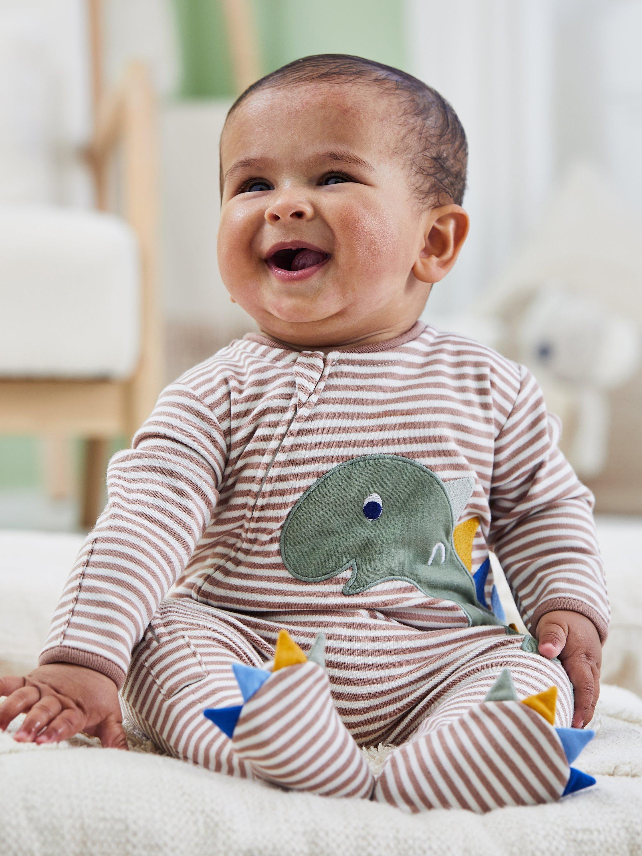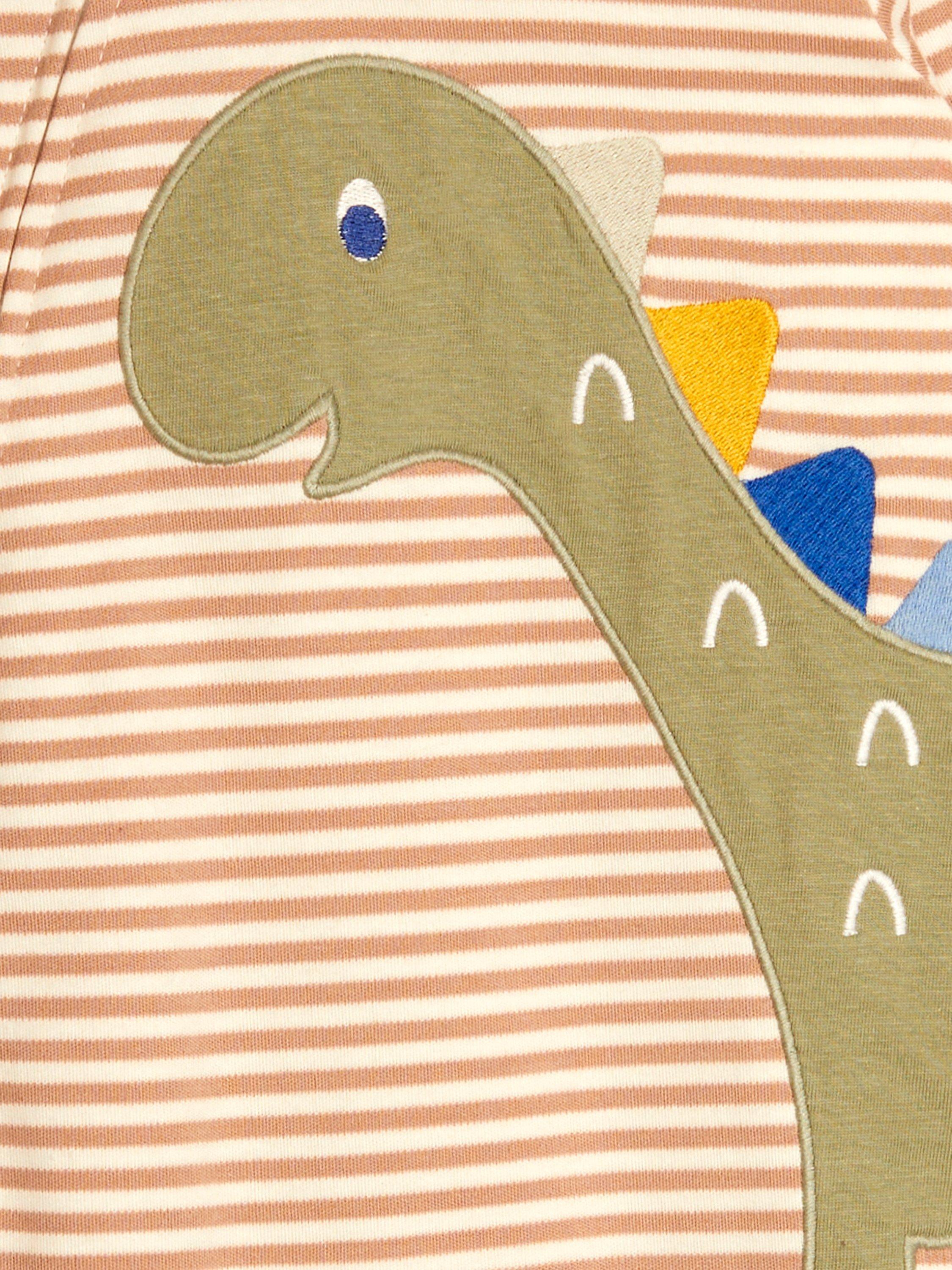 This irresistible cotton sleepsuit showcases a fun dinosaur appliqué, 3D spikes on the side and toes make this a super playful piece. A two-way zip fastening helps to make changing easier.