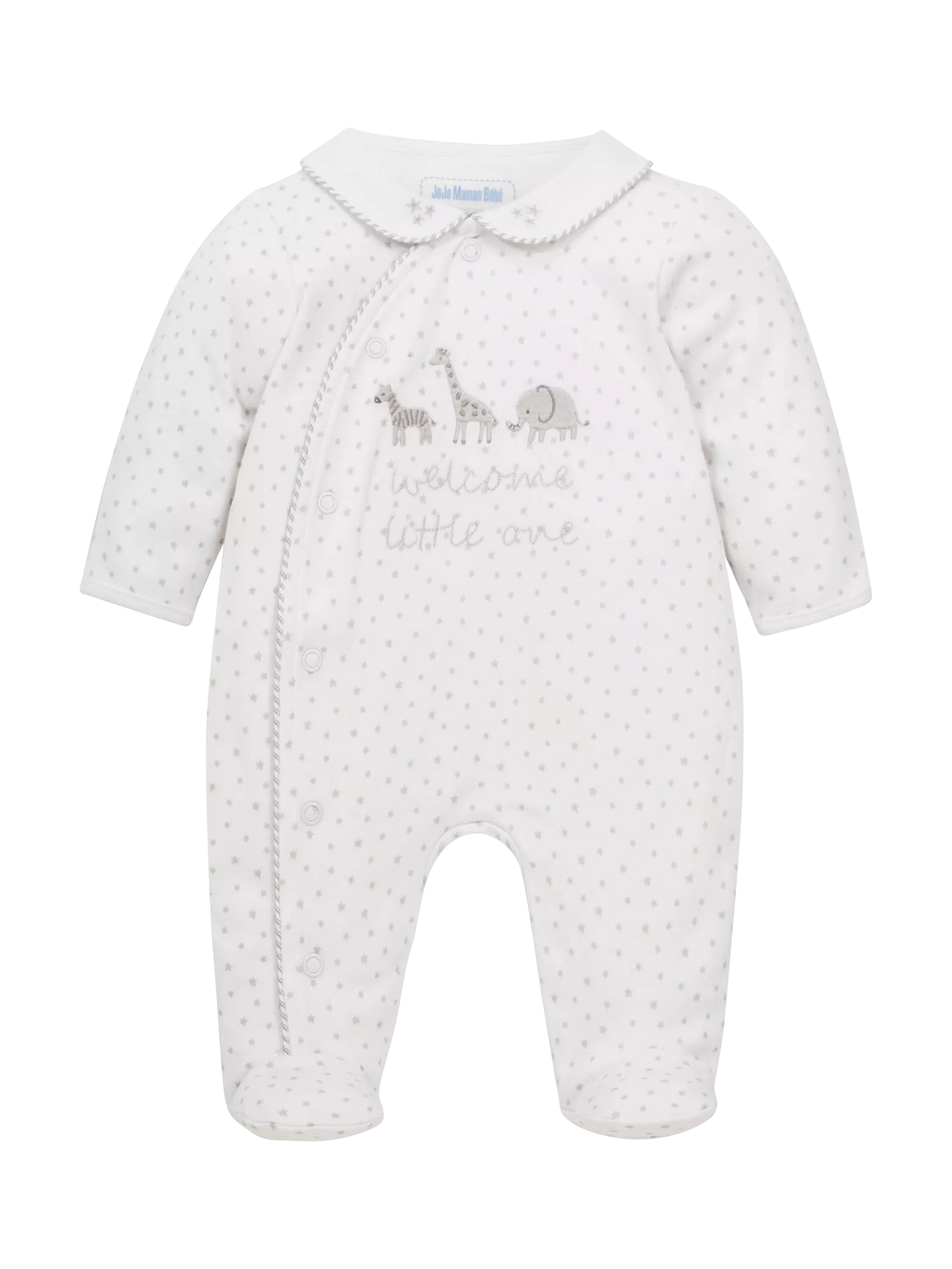JoJo Maman BébéBaby Welcome Little One Sleepsuit, White