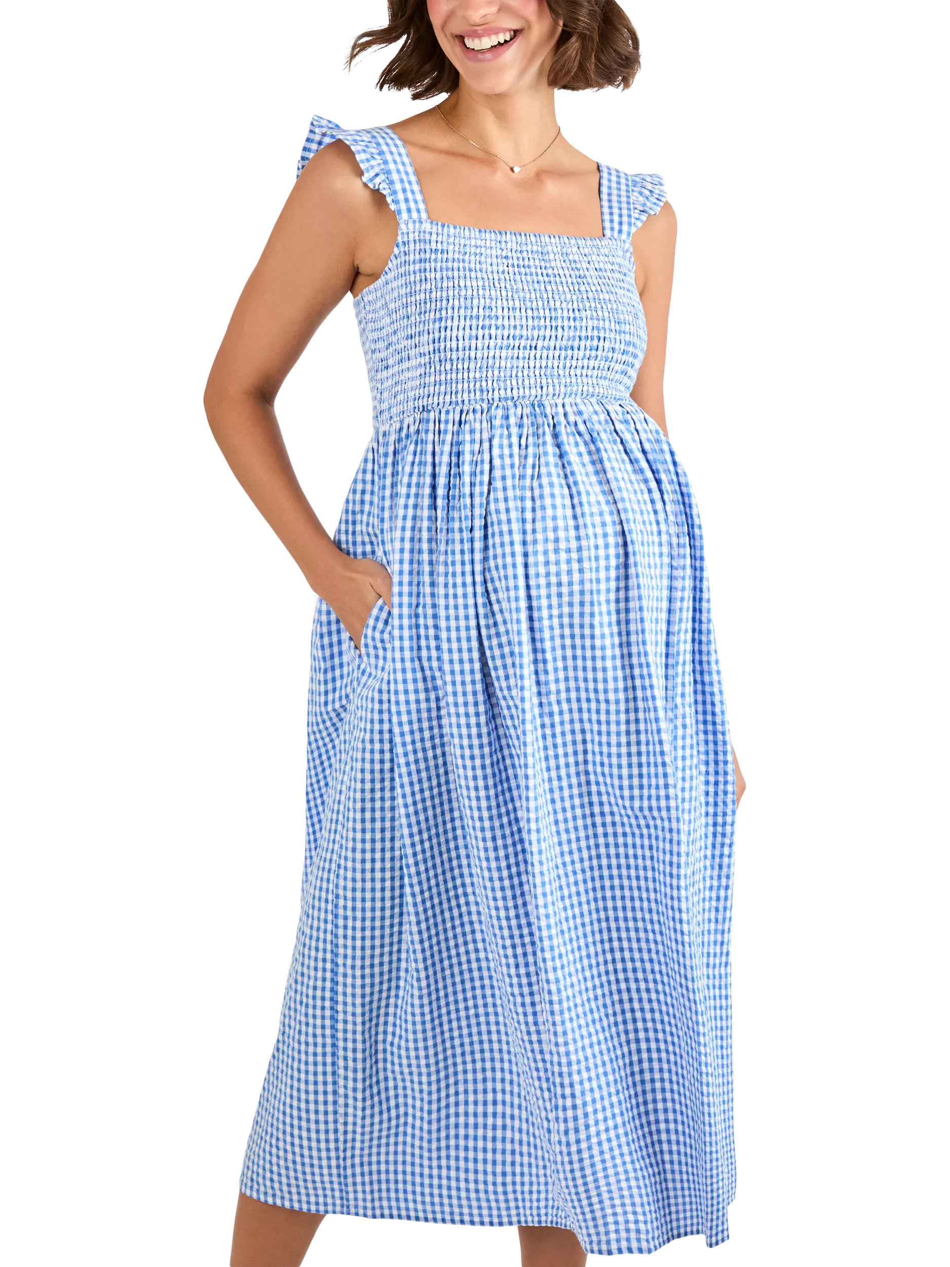 JoJo Maman BébéGingham Shirred Maternity Dress, Blue