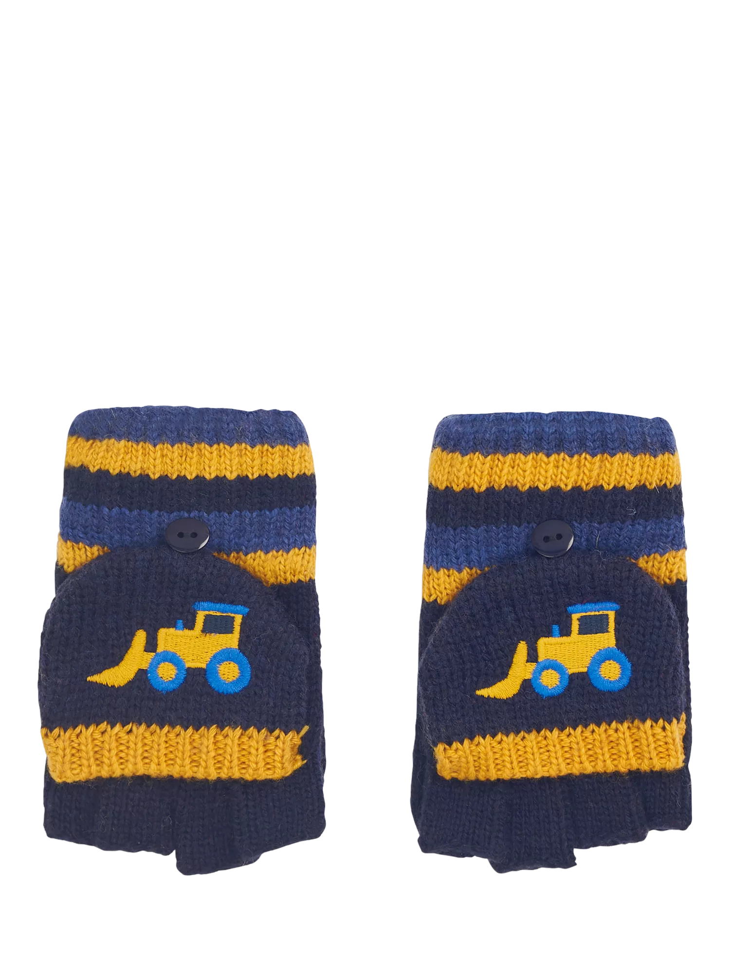 These Digger Embroidered Gloves are a cute yet practical accessory for children to stay warm. They can be worn as mittens, or if your little one prefers, the top section can be buttoned up to convert them into fingerless gloves. Rib cuffs ensure the mittens stay on, while the flexible fit means they're comfy to wear.
