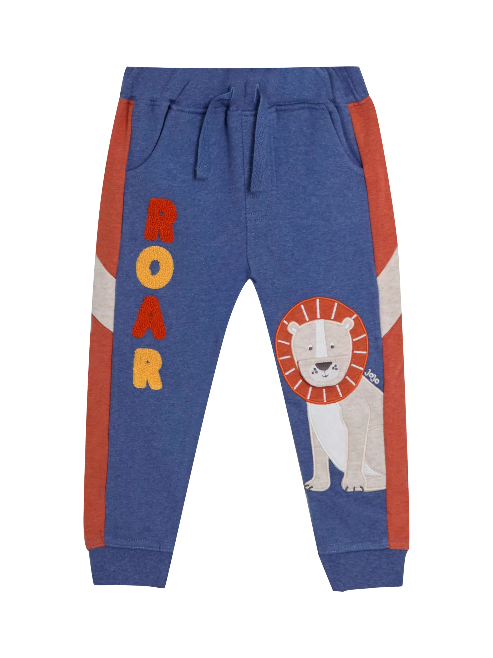 JoJo Maman BébéKids' Lion Applique Joggers, Blue/Multi, 6-12 months