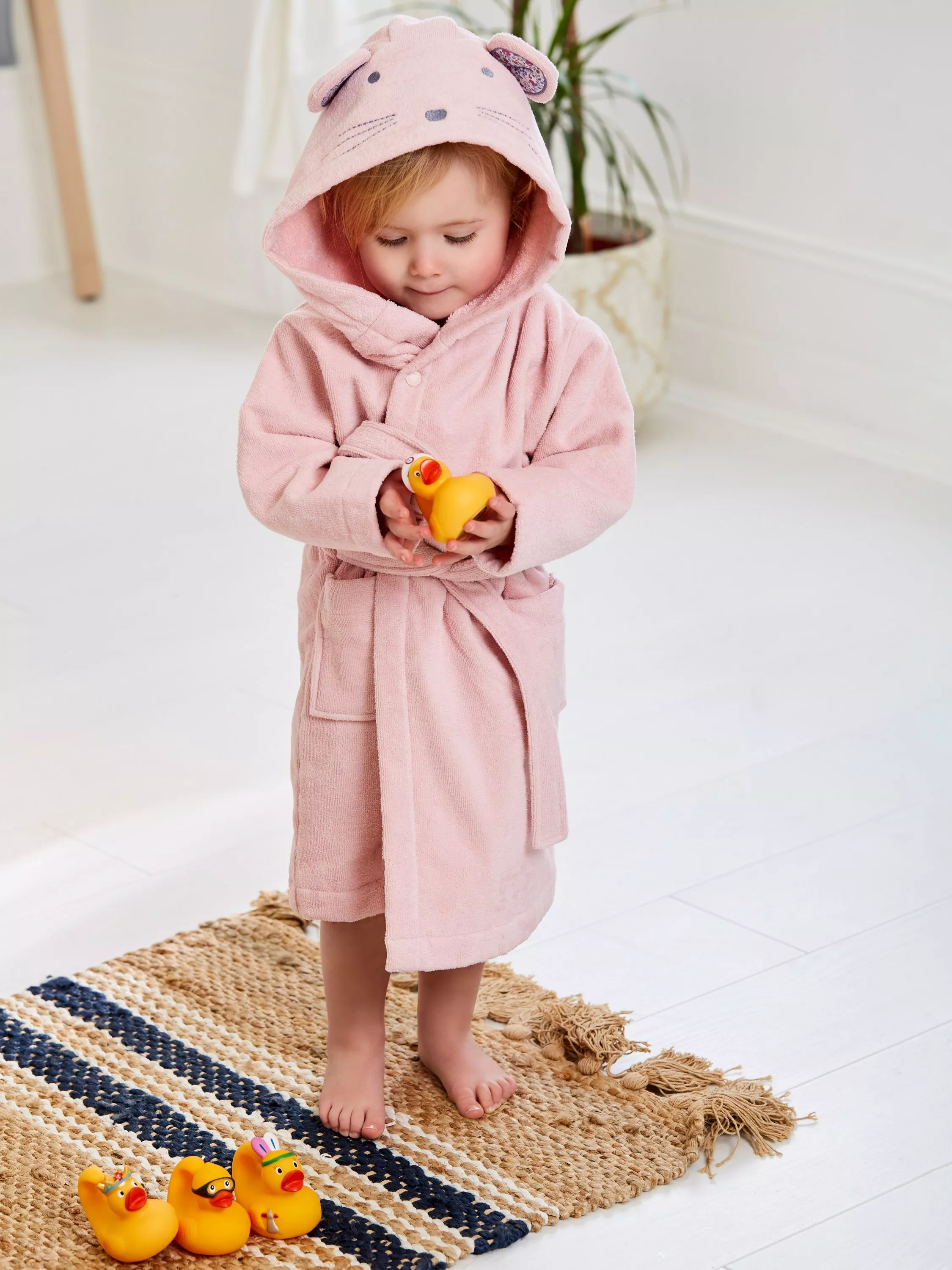 JoJo Maman BébéKids' Mouse Cotton Towelling Robe, Pink